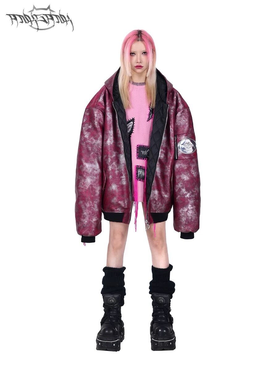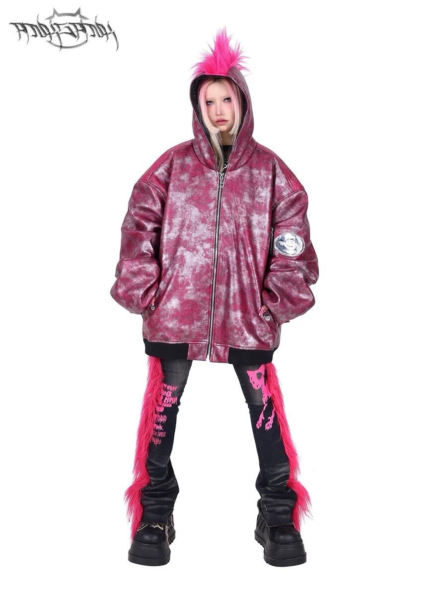 ジャンパー ジャケット アウター ブルゾン コート ピンク カーディガン スウェット ストリート ファー パンク