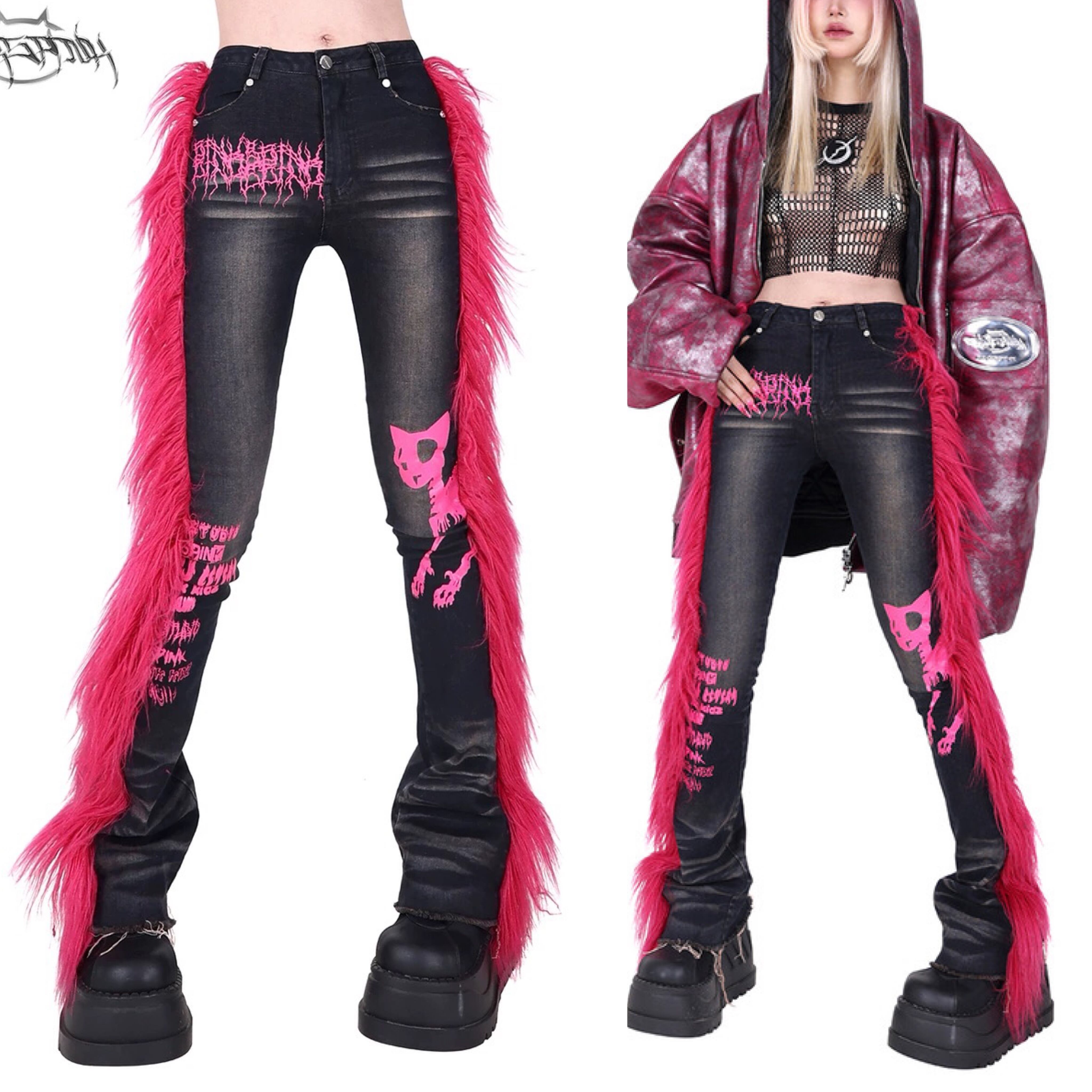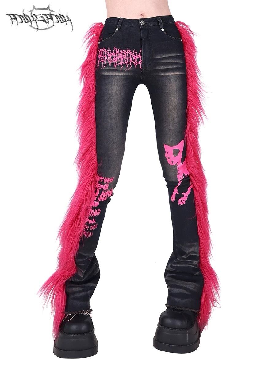 パンツ スウェット ズボン ボトムス ピンク ファー カジュアル ロック パンク