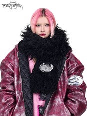 マフラー ファー 黒 ピンク ストリート カジュアル ショール アウター カジュアル パンク ロック