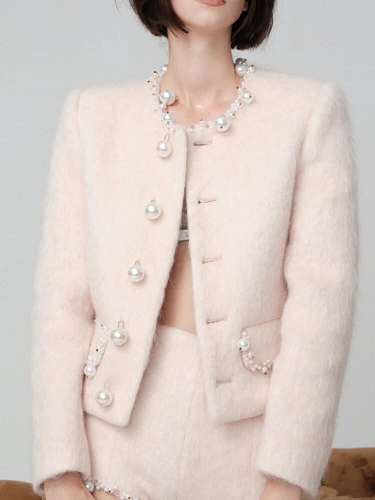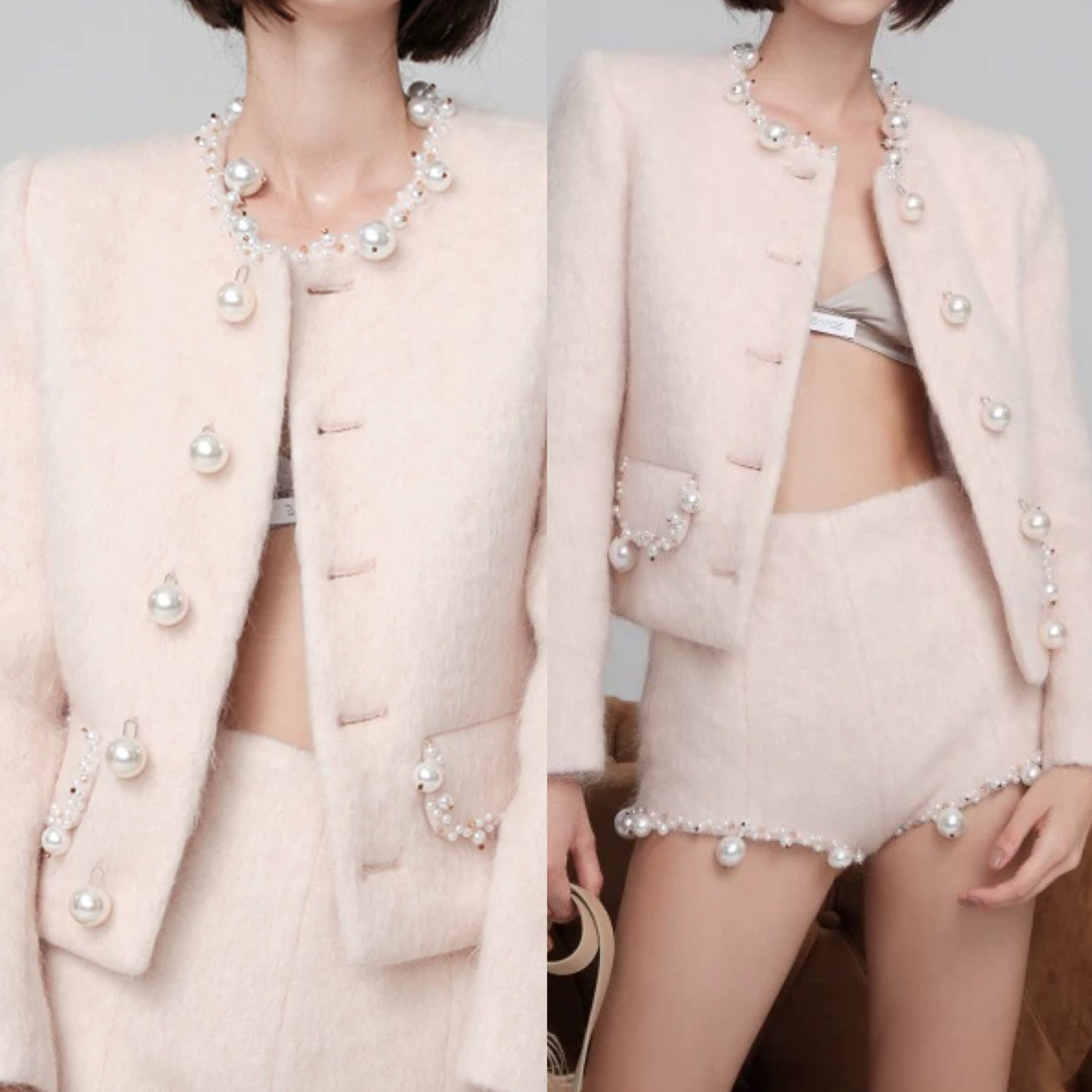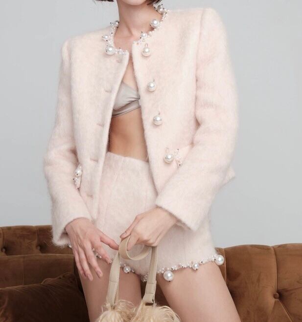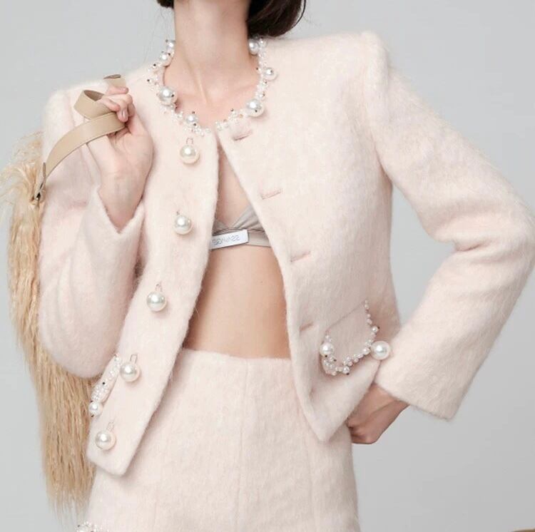 ジャケット 白 パール アウター ガーリー エレガント カーディガン デコレーション