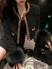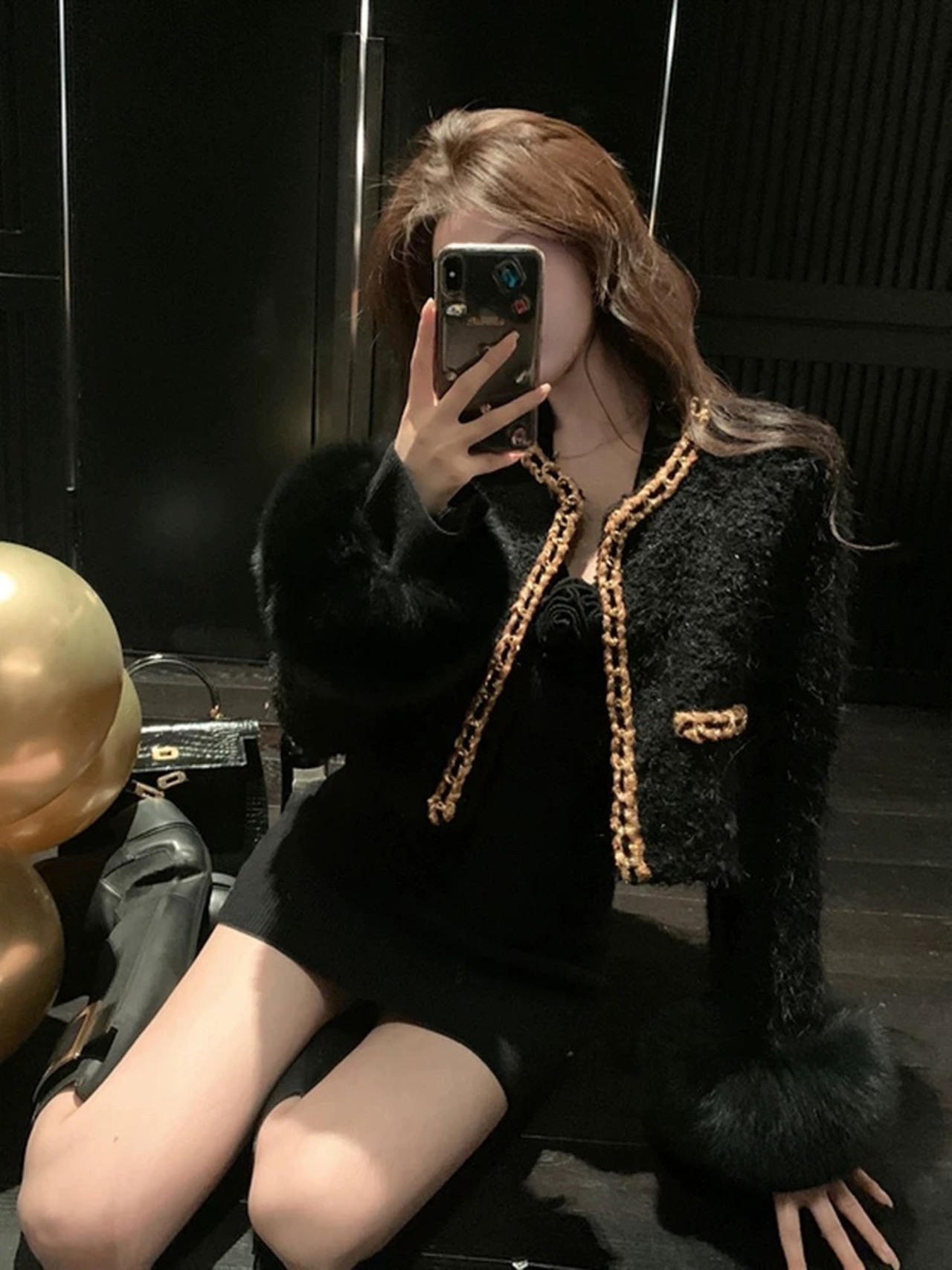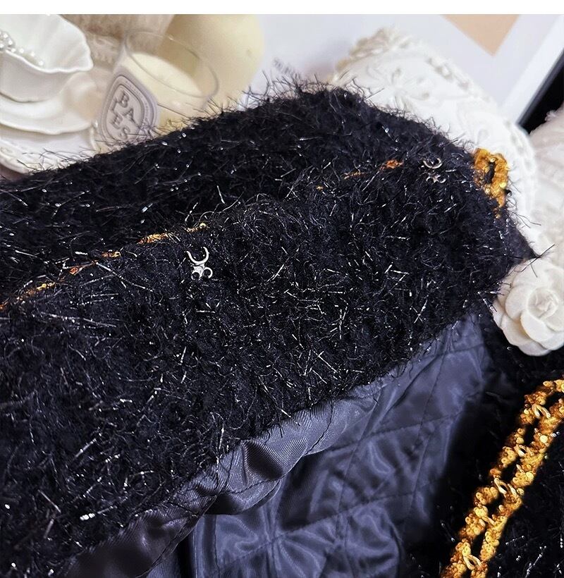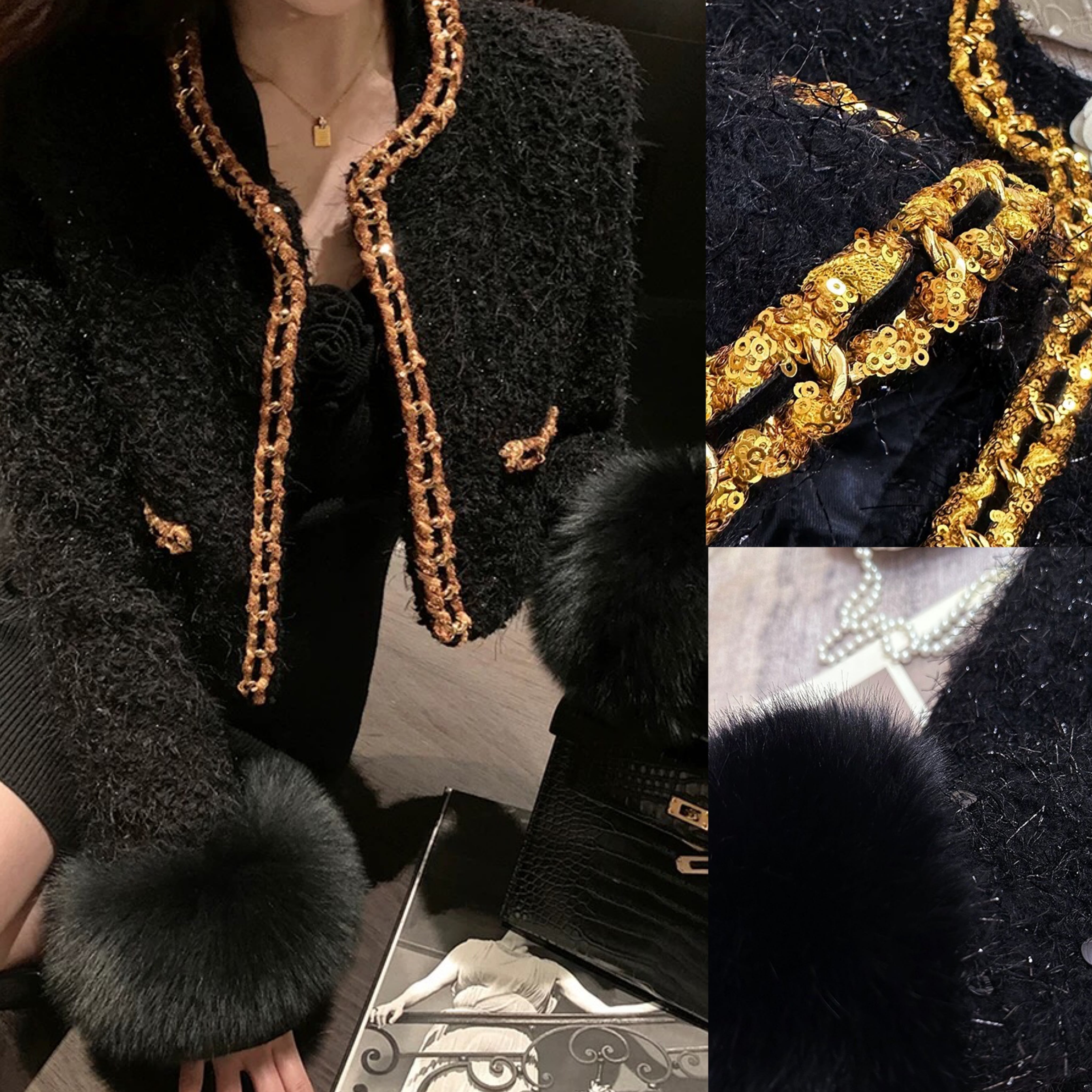 ジャケット コート エレガント ラメ キラキラ ファー 黒 ゴールド ゴージャス ジャケット アウター