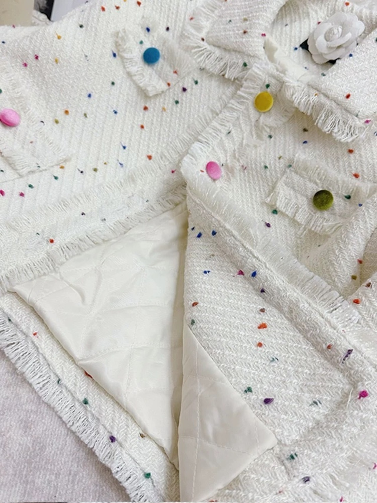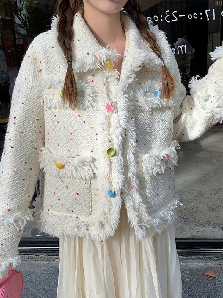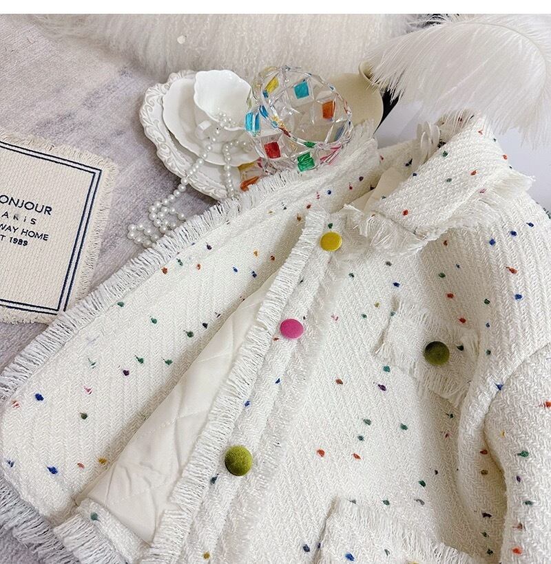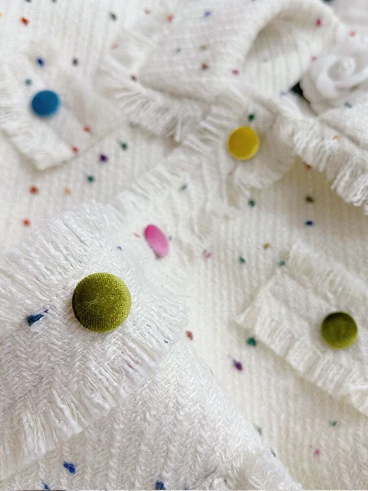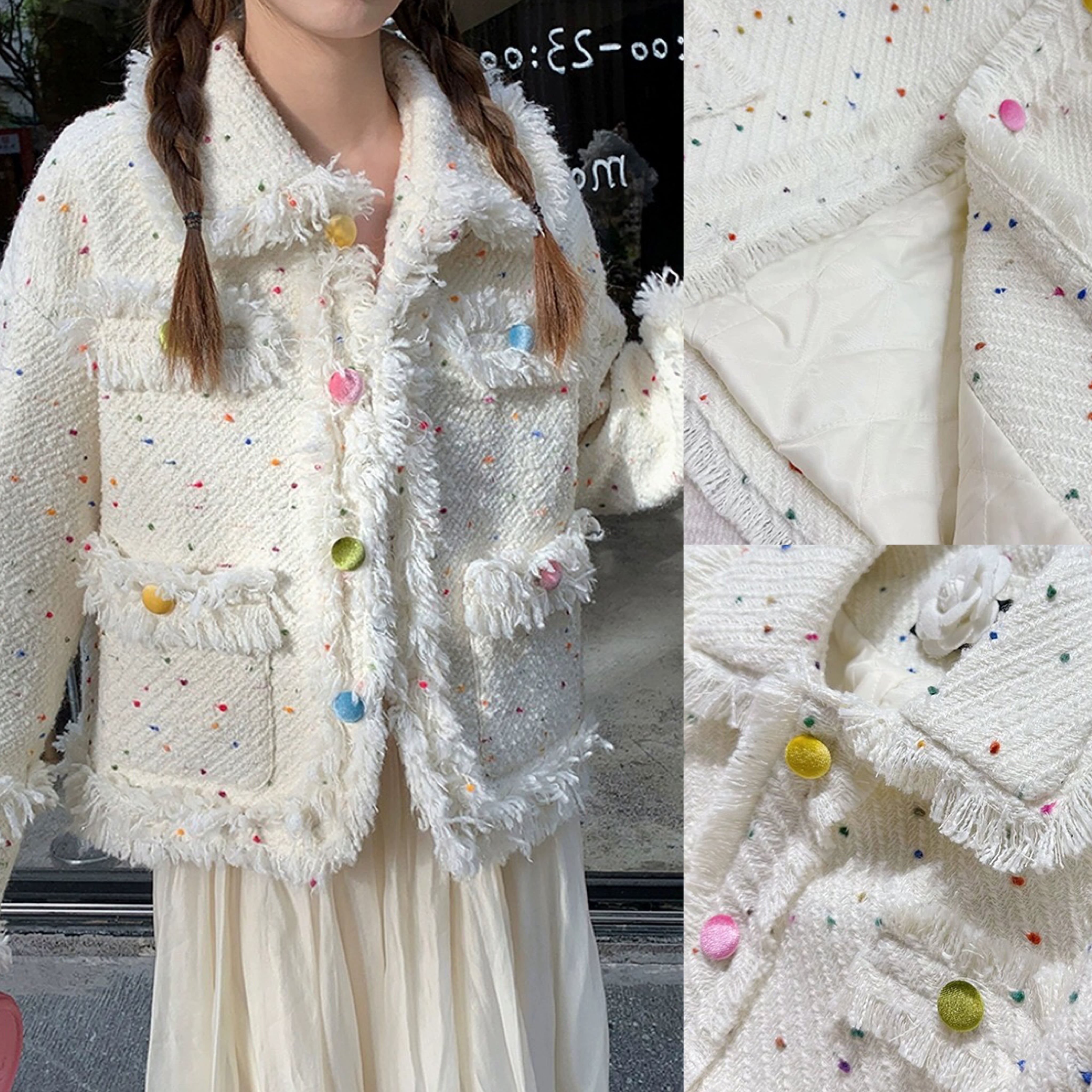 カラフル ピンク 黄色 緑 ツイード ジャケット アウター コート エレガント 白アウター カーディガン スーツ