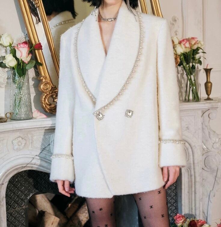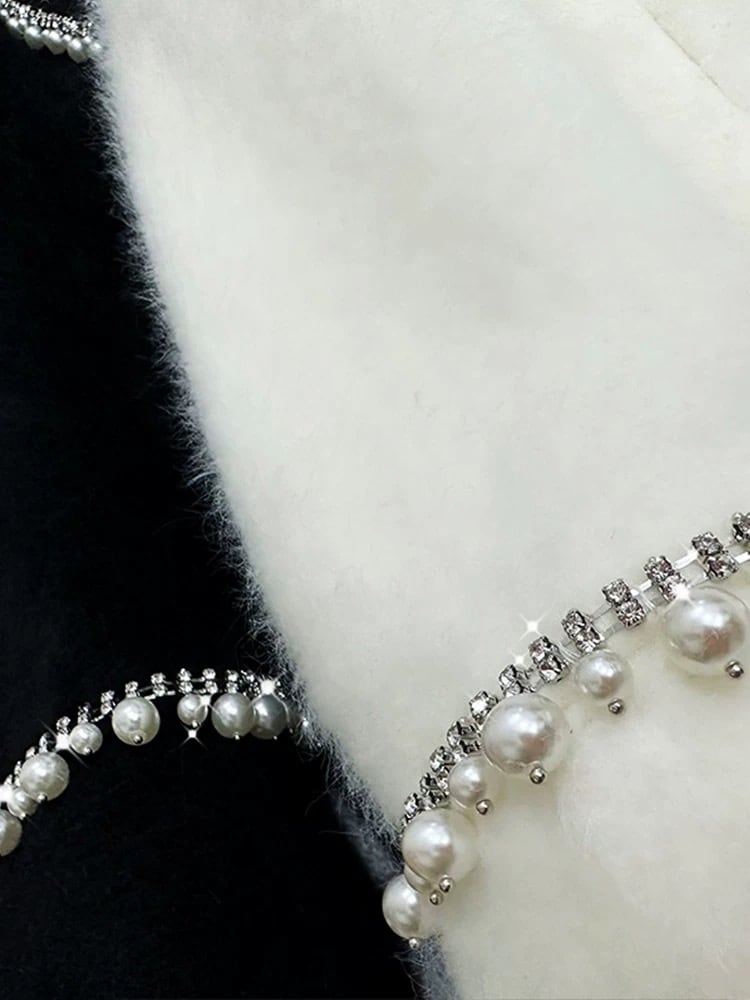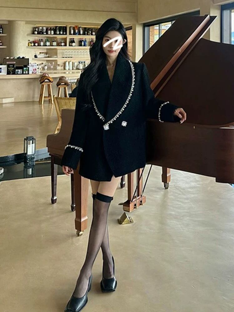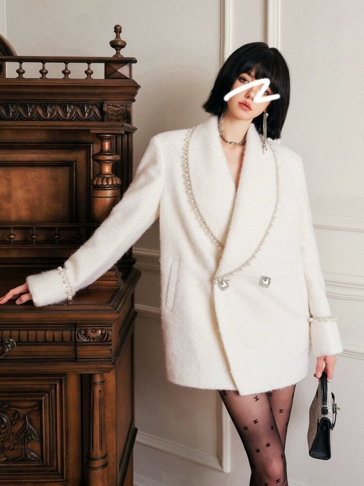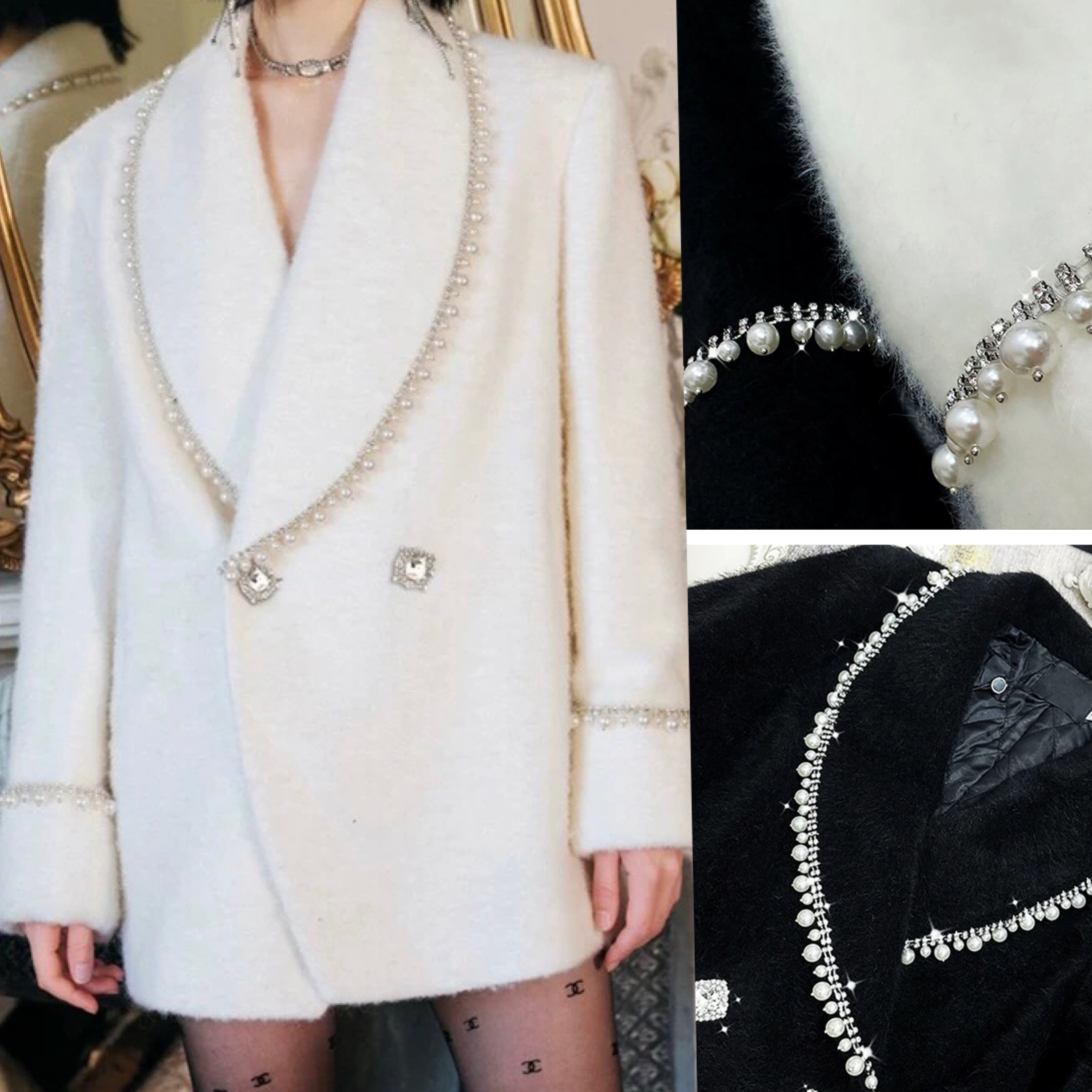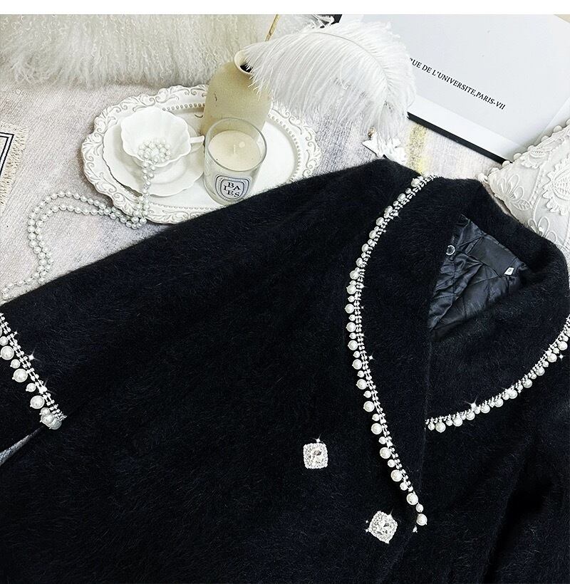 ジャケット アウター パール デコレーション 黒 白 アウター ワンピース ジャケット カーディガン アウター コート ワンピース スーツ エレガント