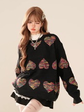 黒 ハート カジュアル スウェット カーディガン セーター ニット 黒