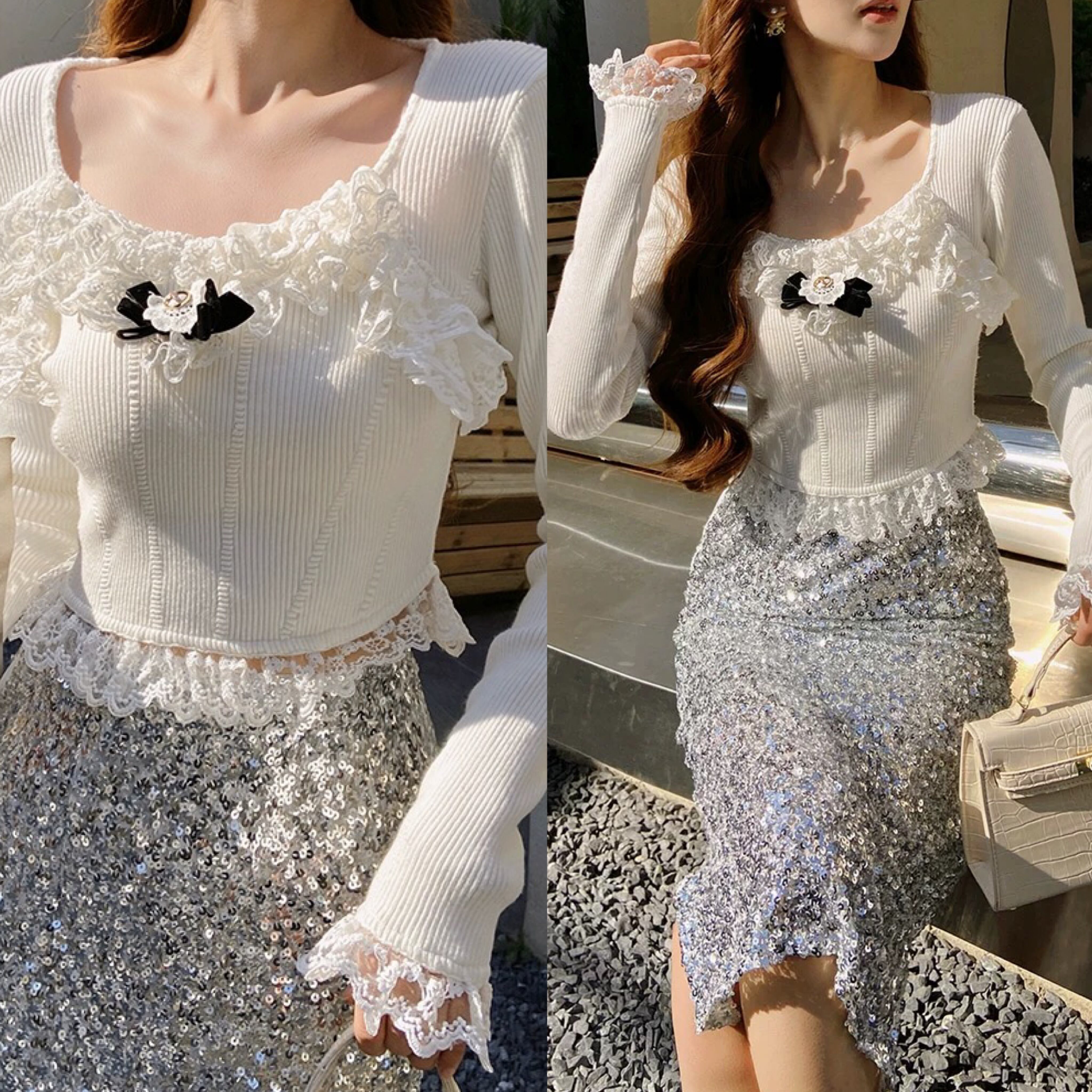 トップス お嬢様 ブラウス カメリア リボン ガーリー 白 ホワイト エレガント シャツ