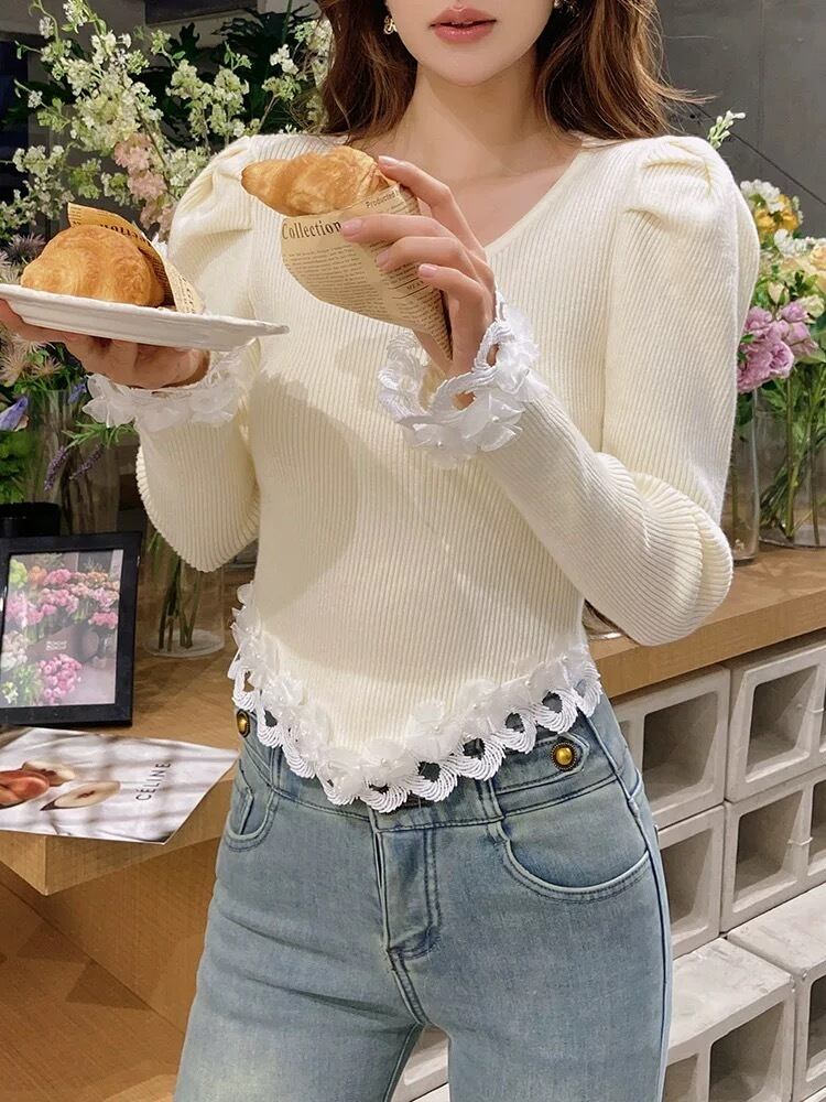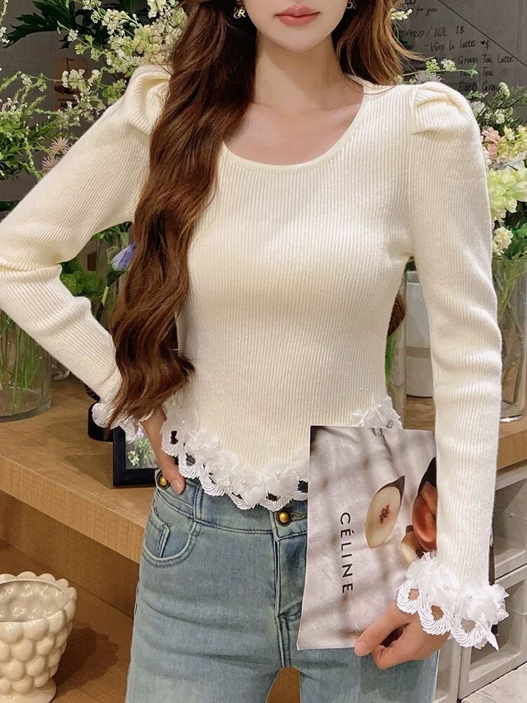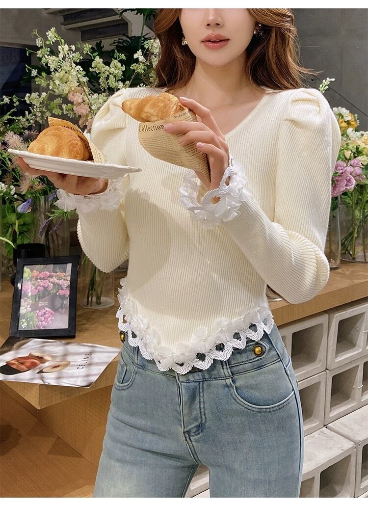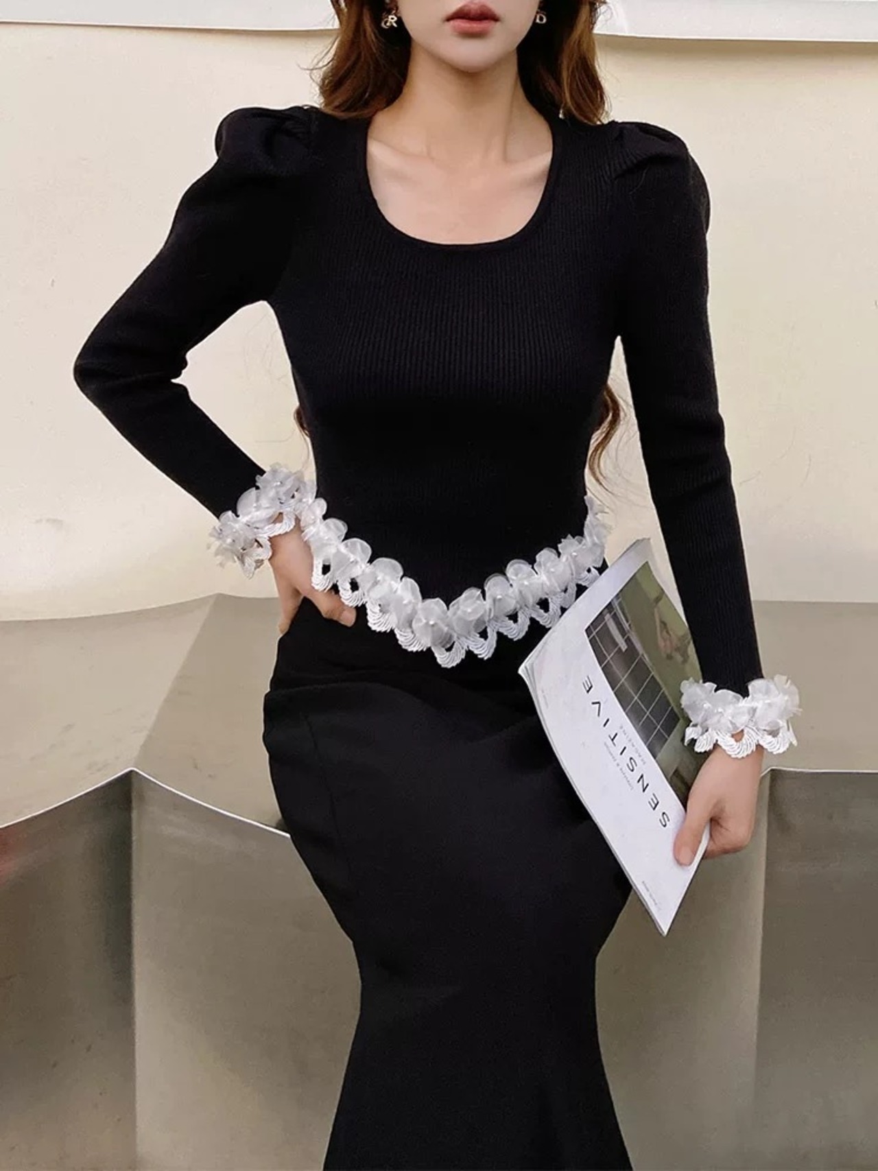 黒 白 ブラウス トップス ガーリー エレガント カジュアル フラワー エレガント