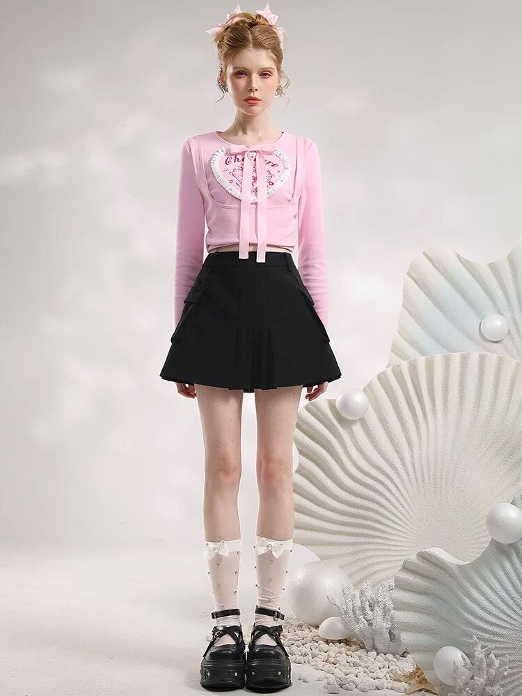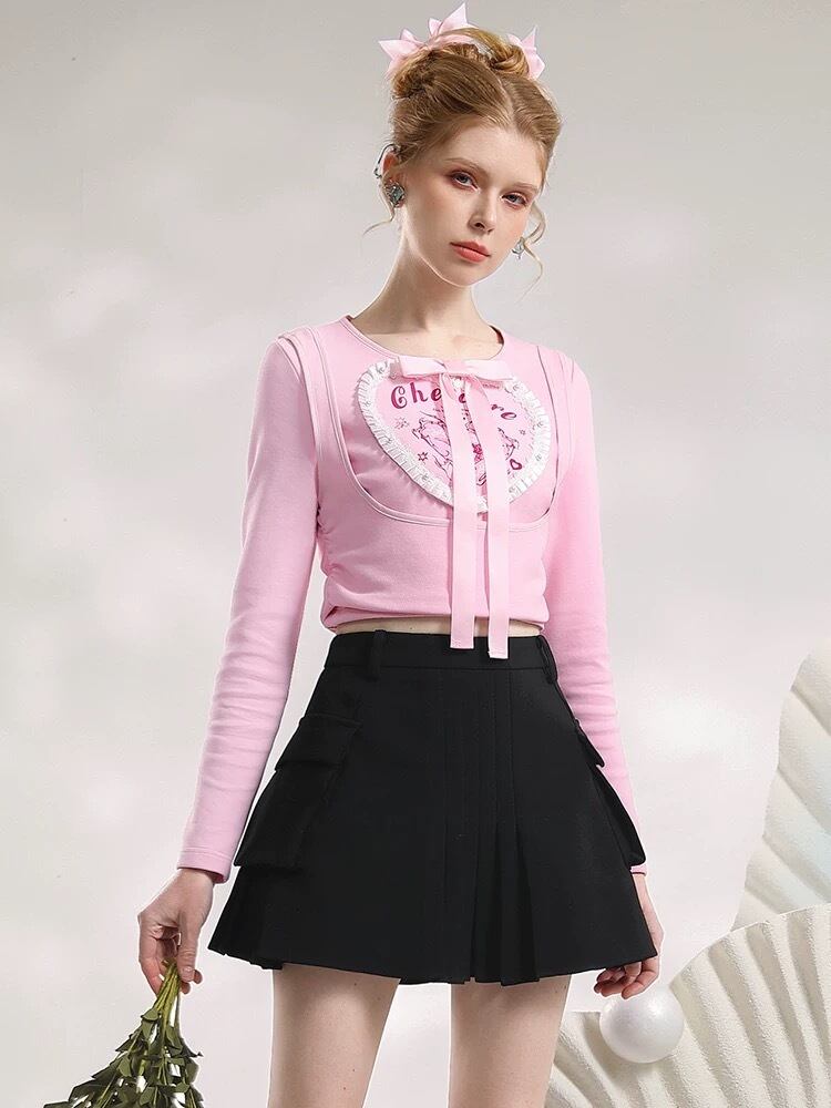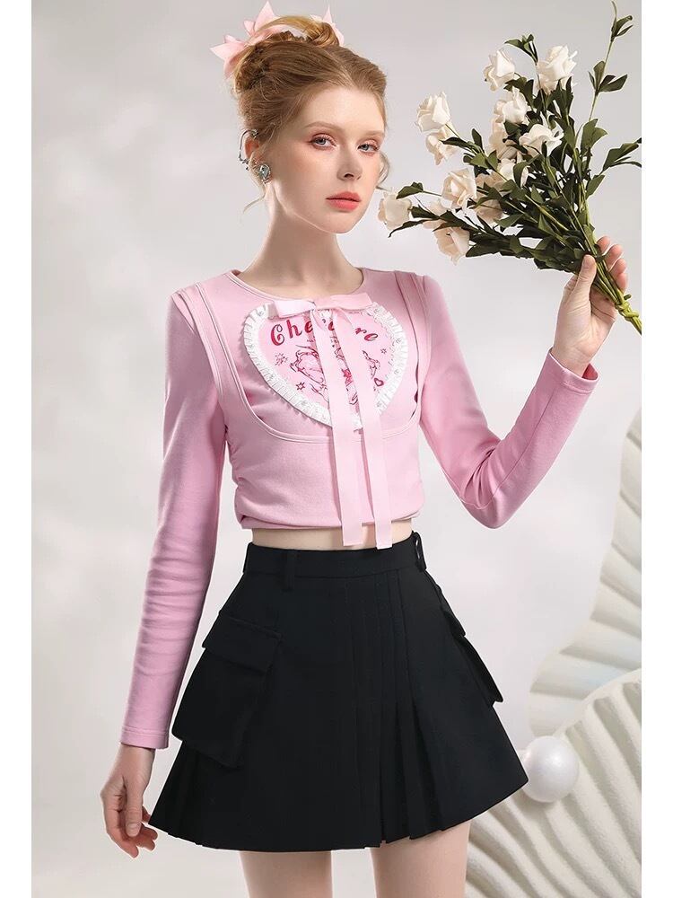トップス カジュアル ブラウス Tシャツ ハート リボン ガーリー 可愛い カジュアル スウェット トレーナー