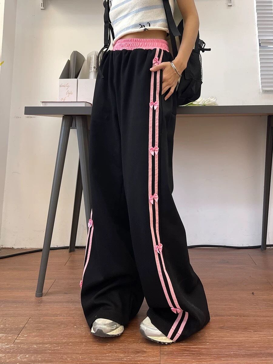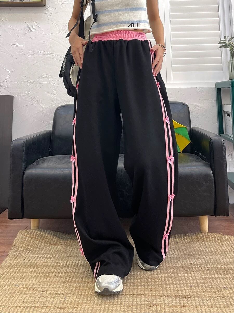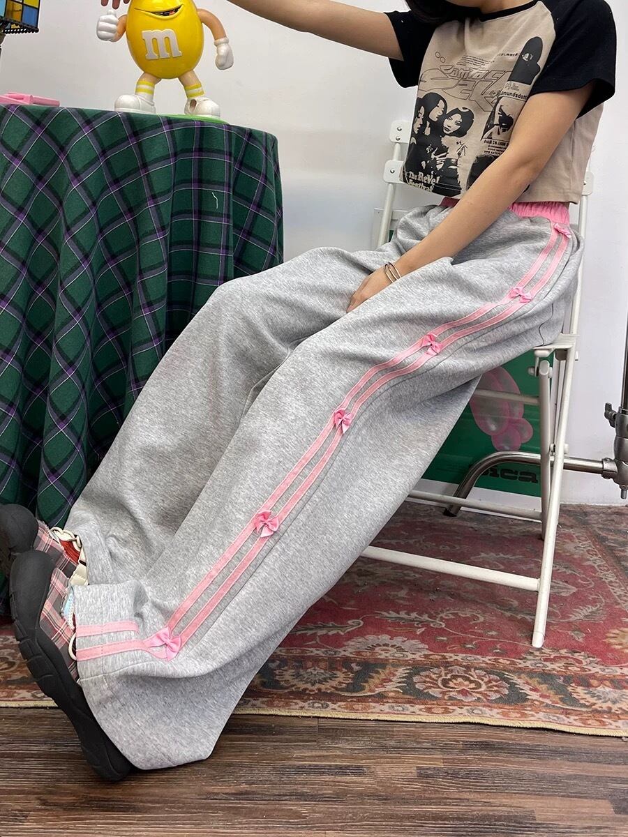 ボトムス スウェット カジュアル グレー 黒 ガーリー リボン スウェット パンツ ボトムス