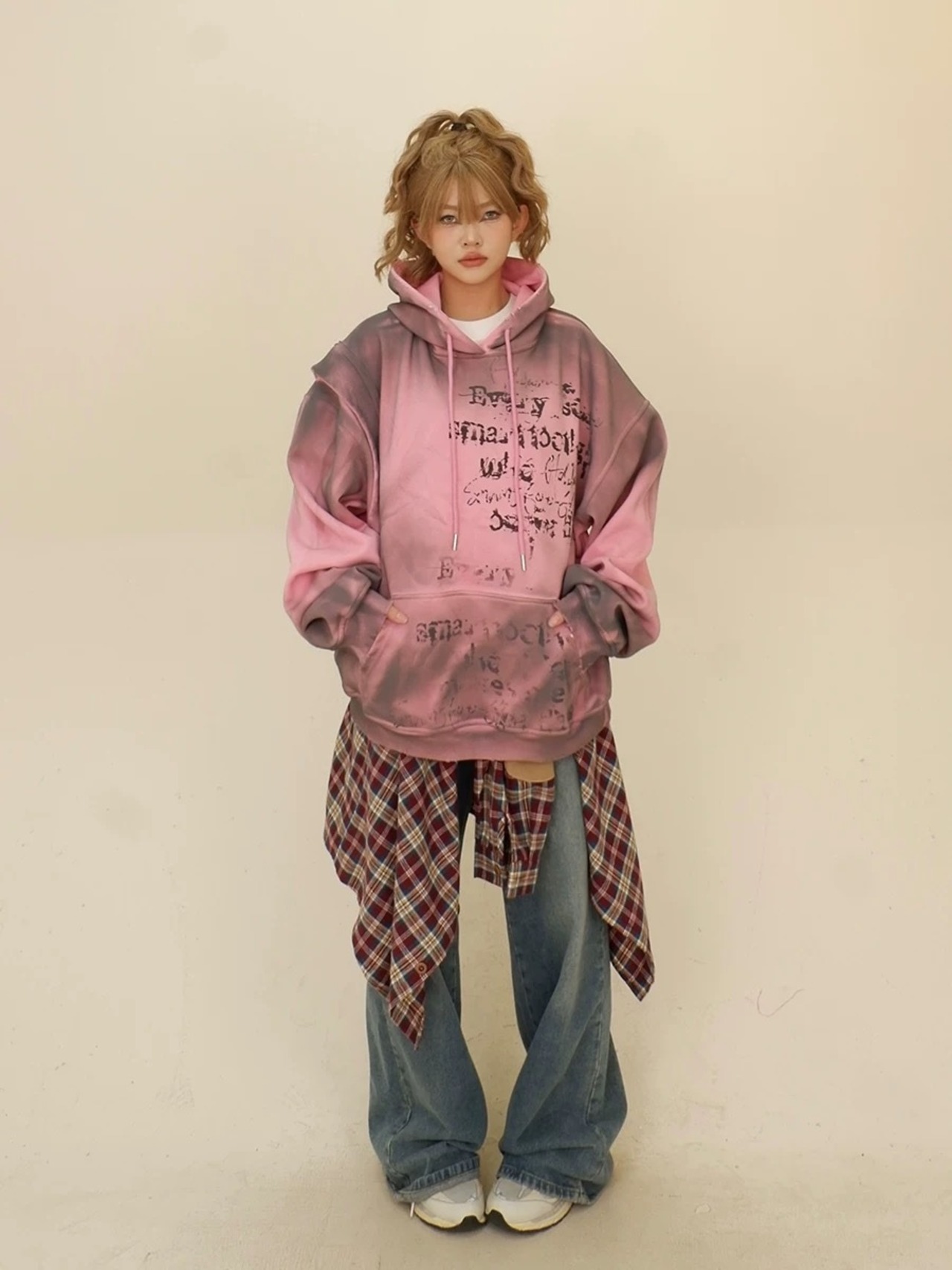 パーカー スウェット ピンク ベージュ カジュアル ストリート リボン トレーナー カジュアル スウェット XL