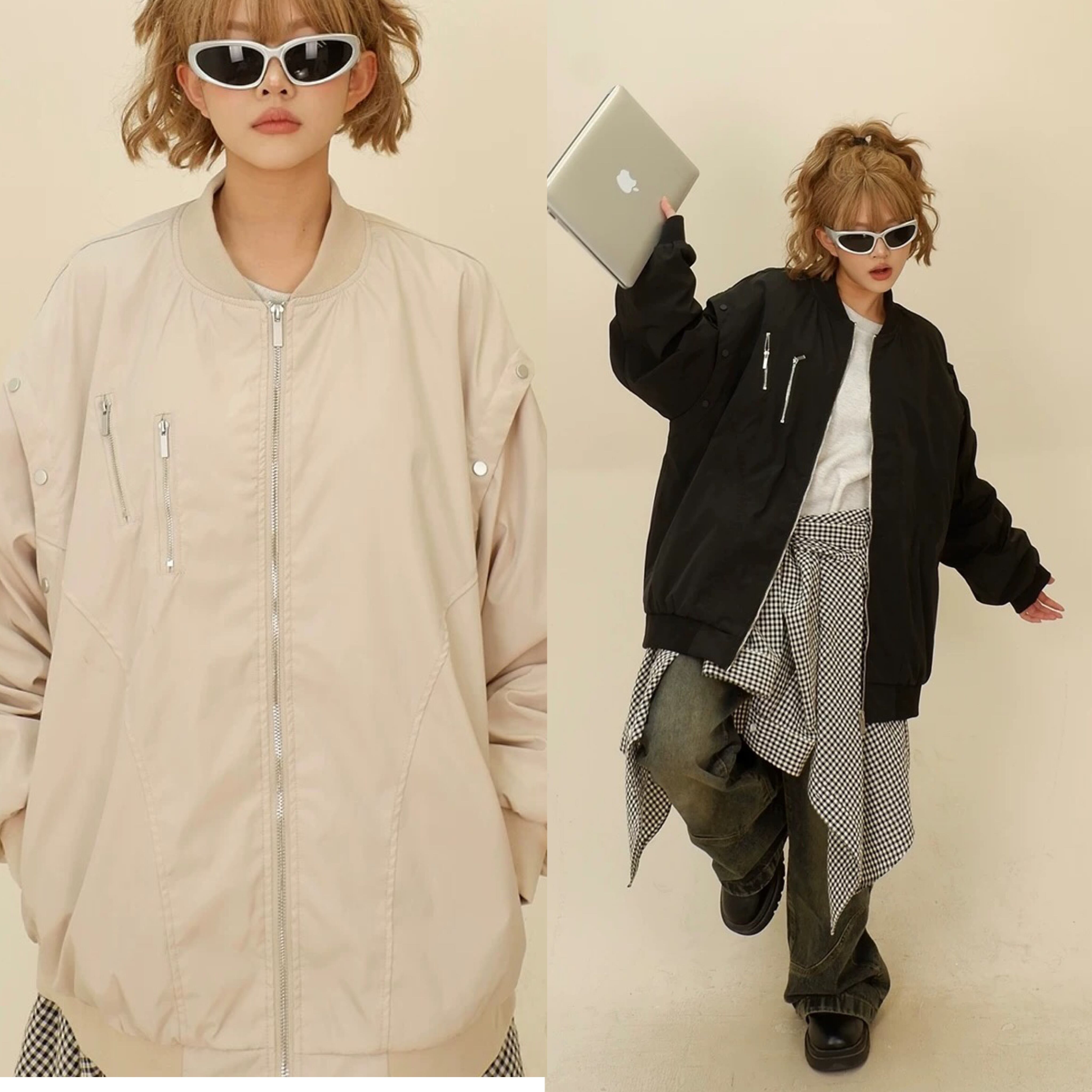 ベージュ 黒 カジュアル アウター コート ジャンパー ブルゾン カーディガン コート ジャケット ストリート XL