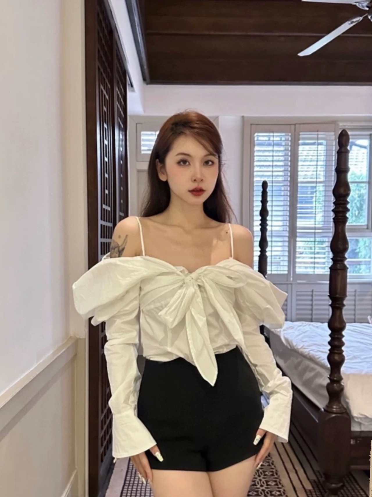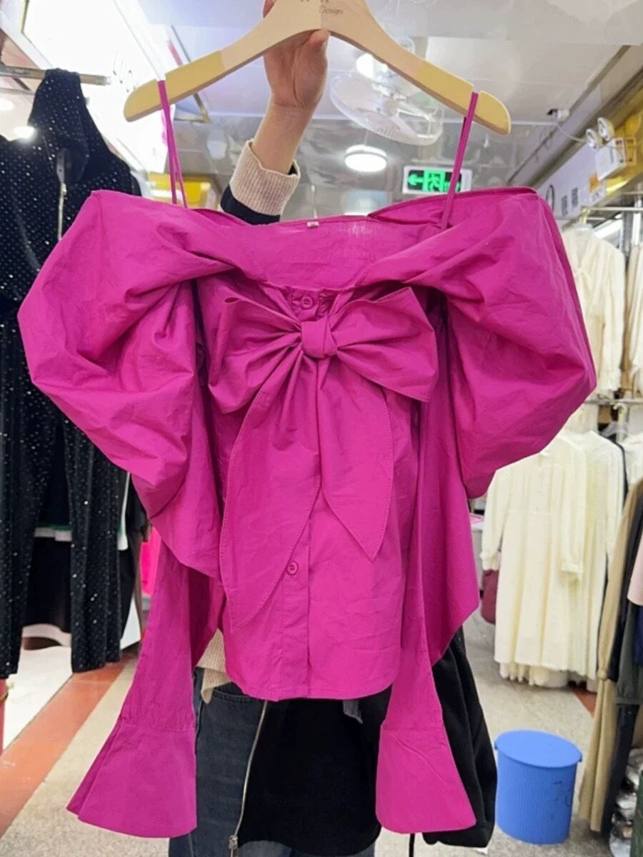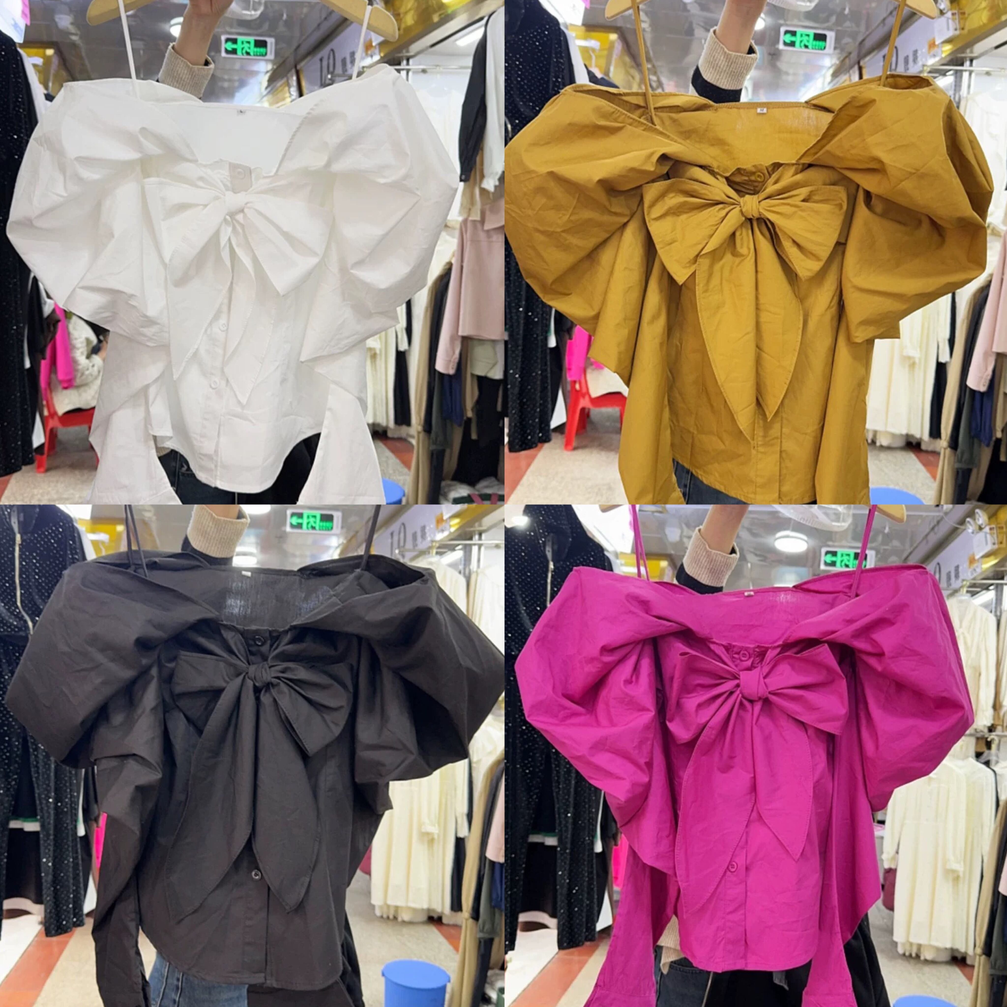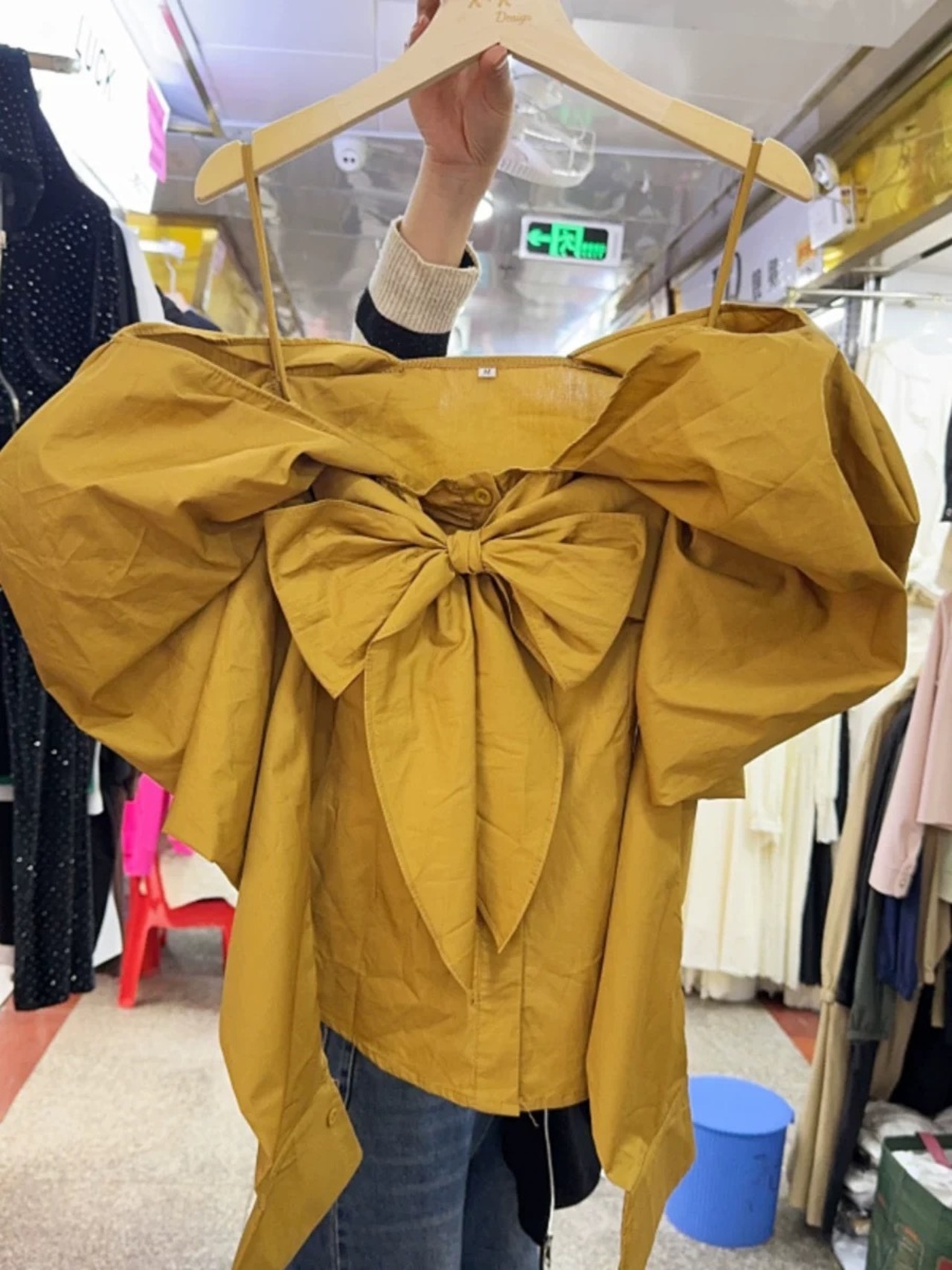 ブラウス 黄色 ピンク 白 リボン トップス キャミソール オフショルダー