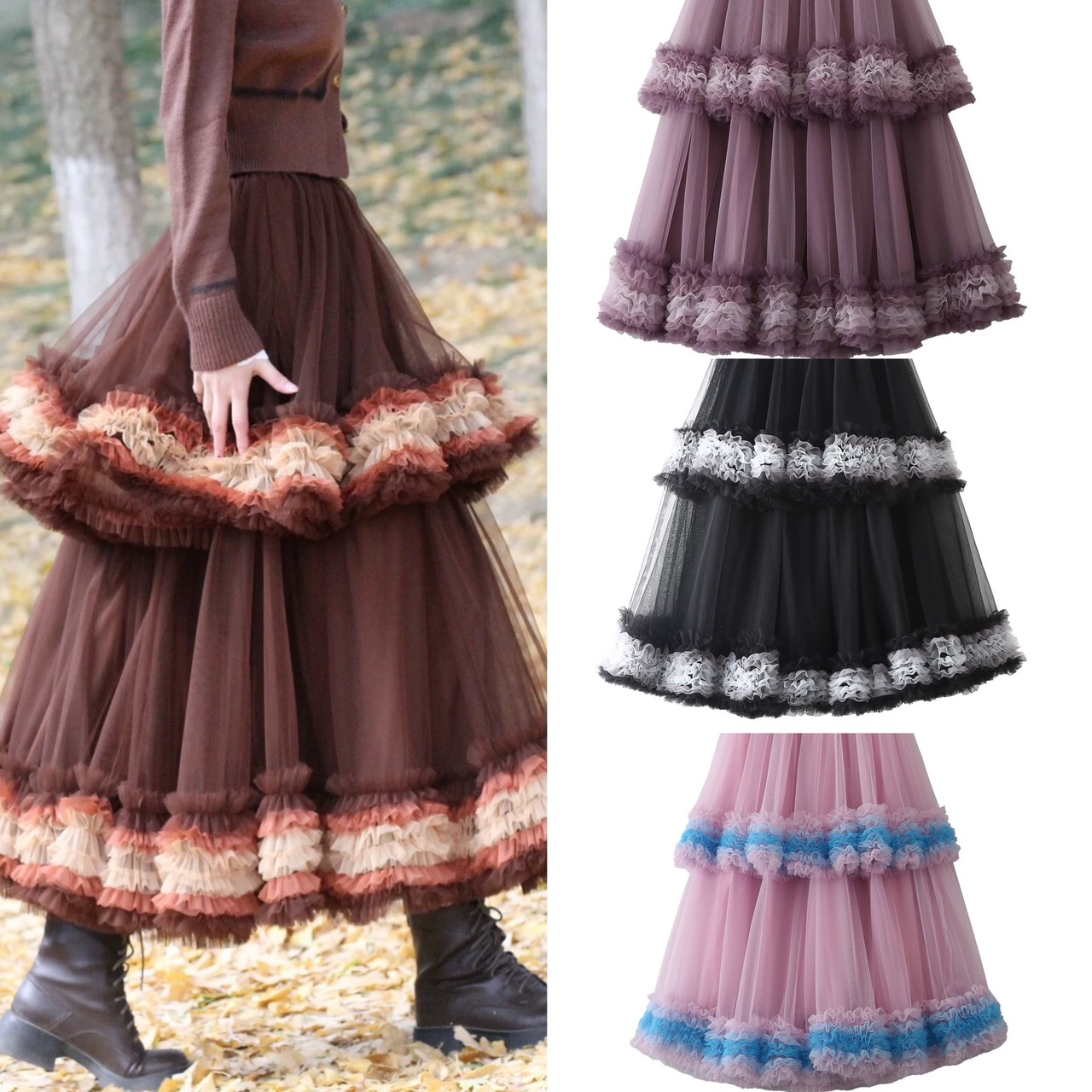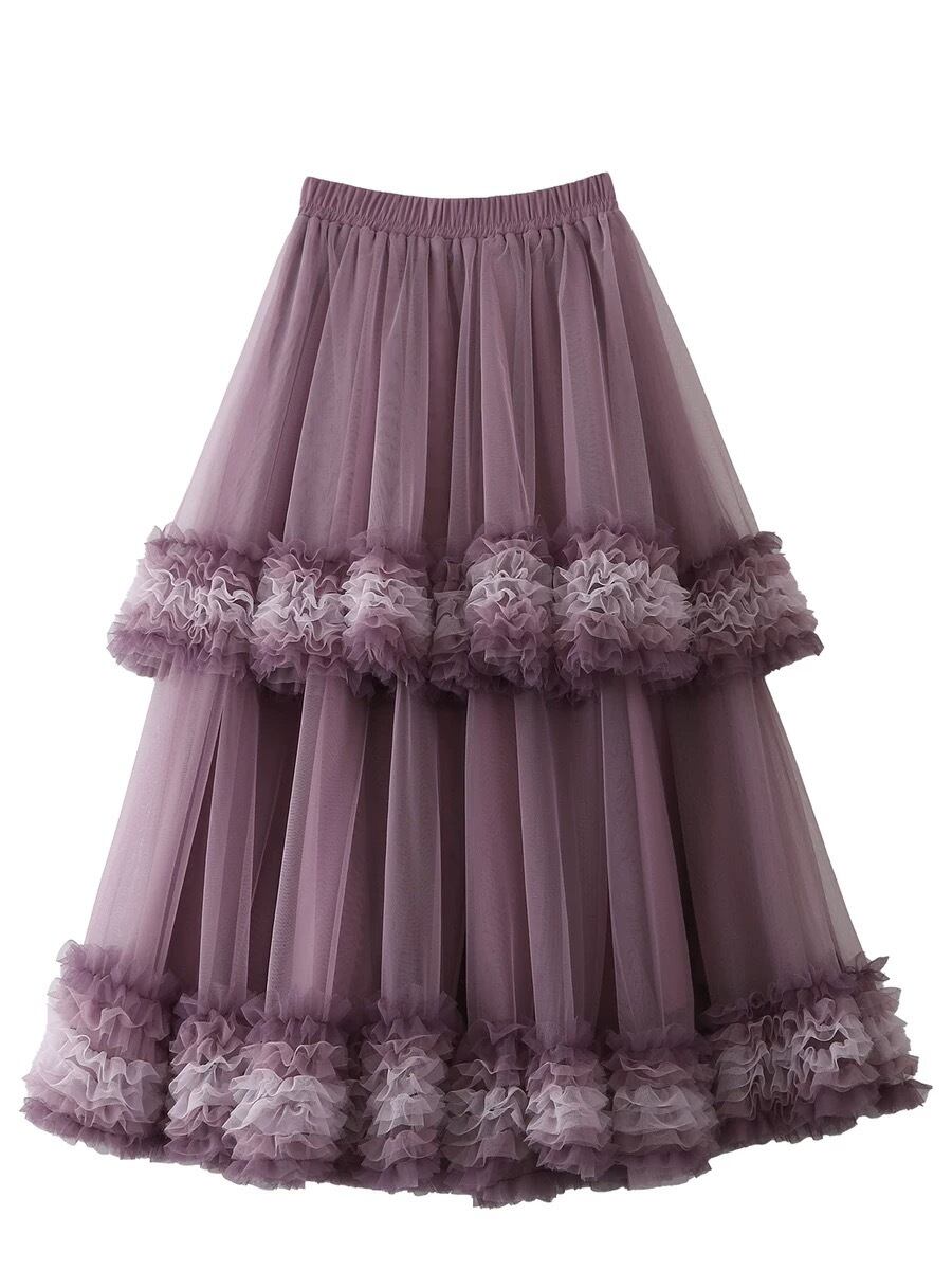 スカート フレア ボトムス 茶色 紫 ピンク 黒 ガーリー 可愛い