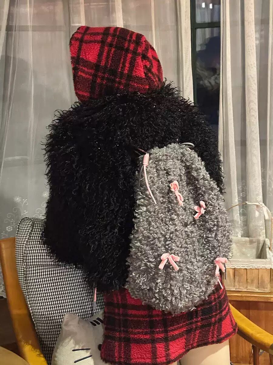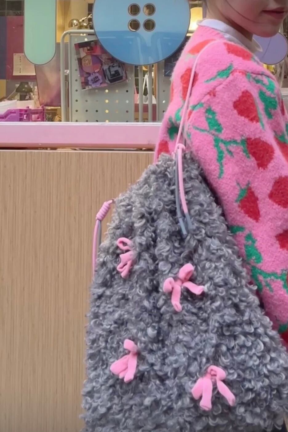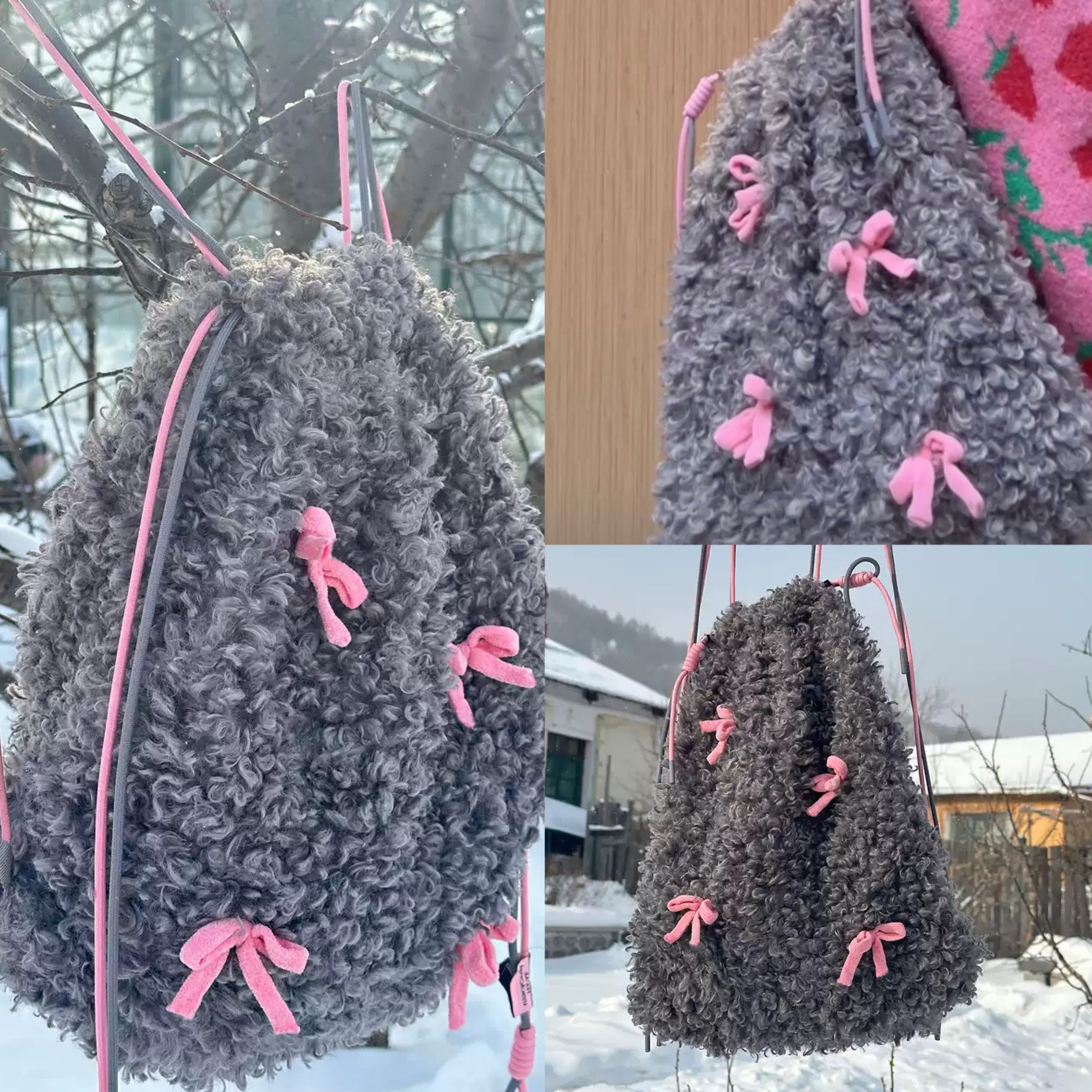 ファー ピンク グレー モヘア ピンク ハート ショルダー リュック 鞄 ピンク 赤 ケイト バックパック ハート リボン 可愛い 原宿 ガーリー 姫 小物 アクセサリー ポーチ バッグ バック 犬 原宿 緑 ニット リュック バックパック