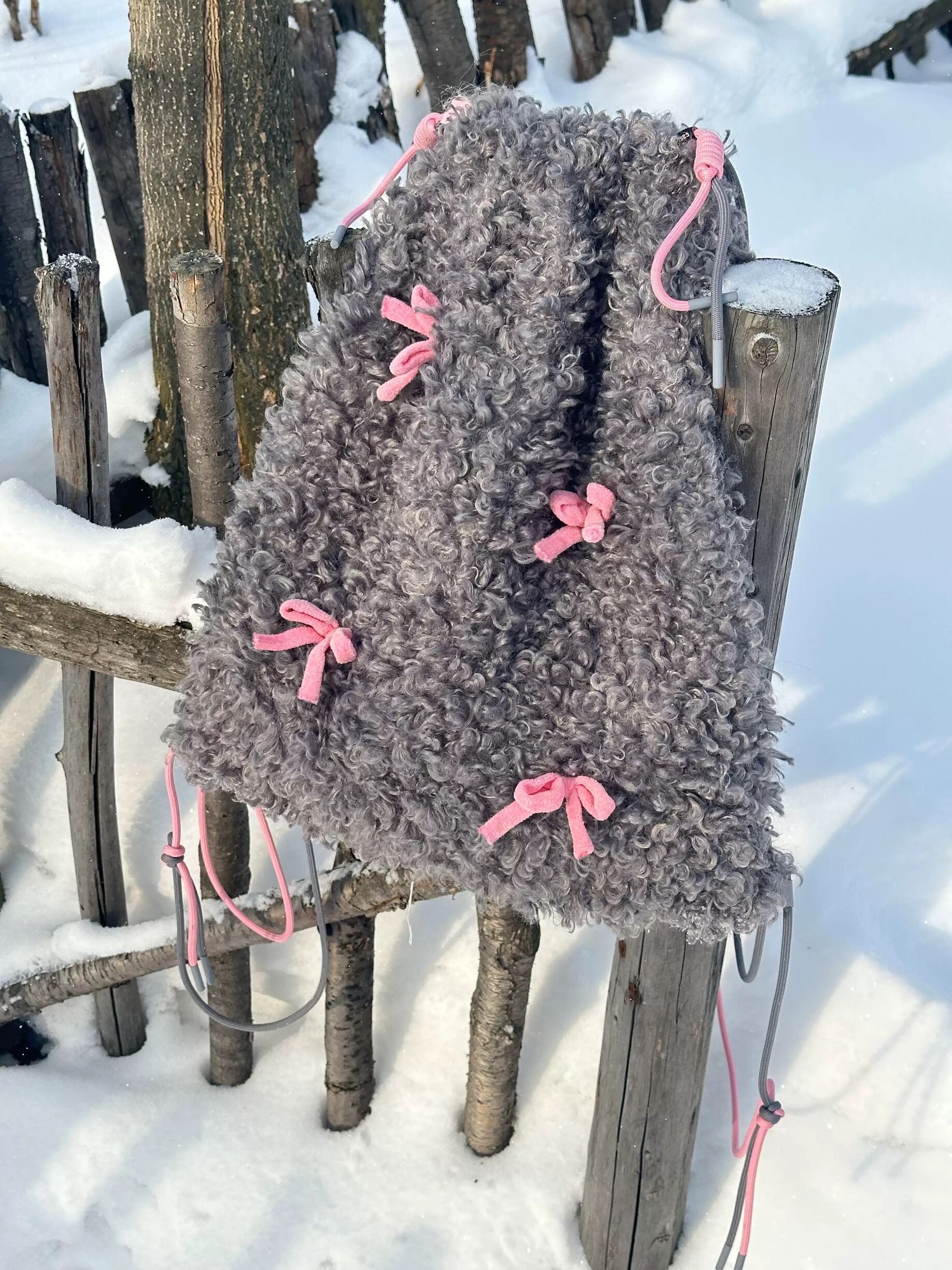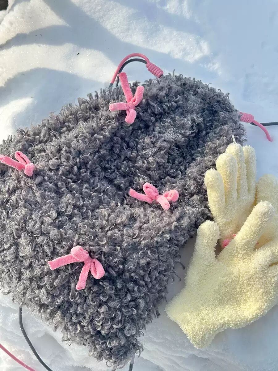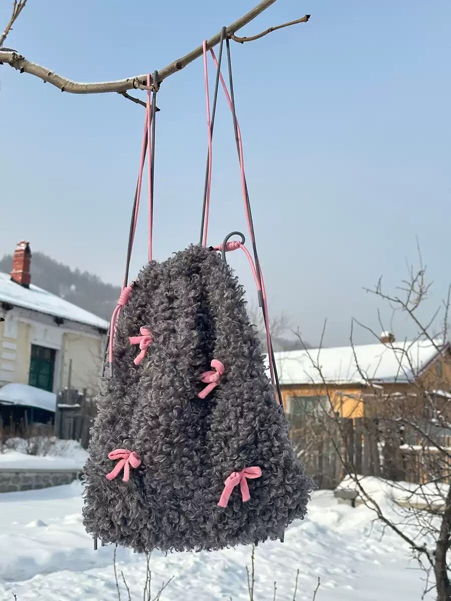 ファー ピンク グレー モヘア ピンク ハート ショルダー リュック 鞄 ピンク 赤 ケイト バックパック ハート リボン 可愛い 原宿 ガーリー 姫 小物 アクセサリー ポーチ バッグ バック 犬 原宿 緑 ニット リュック バックパック