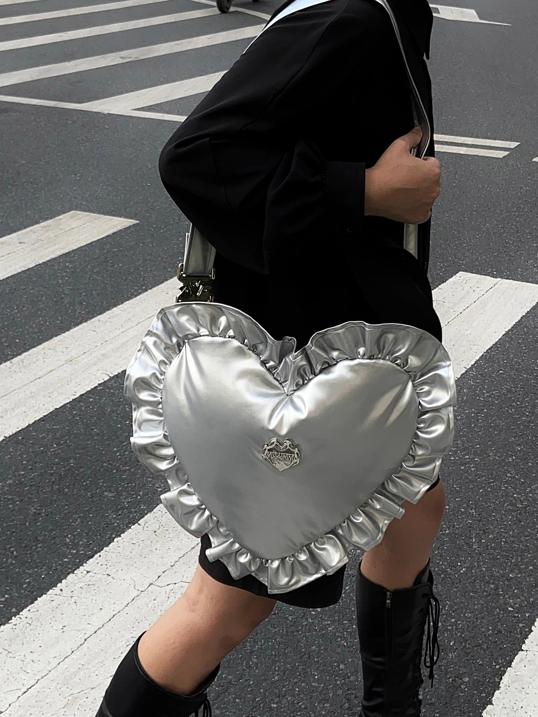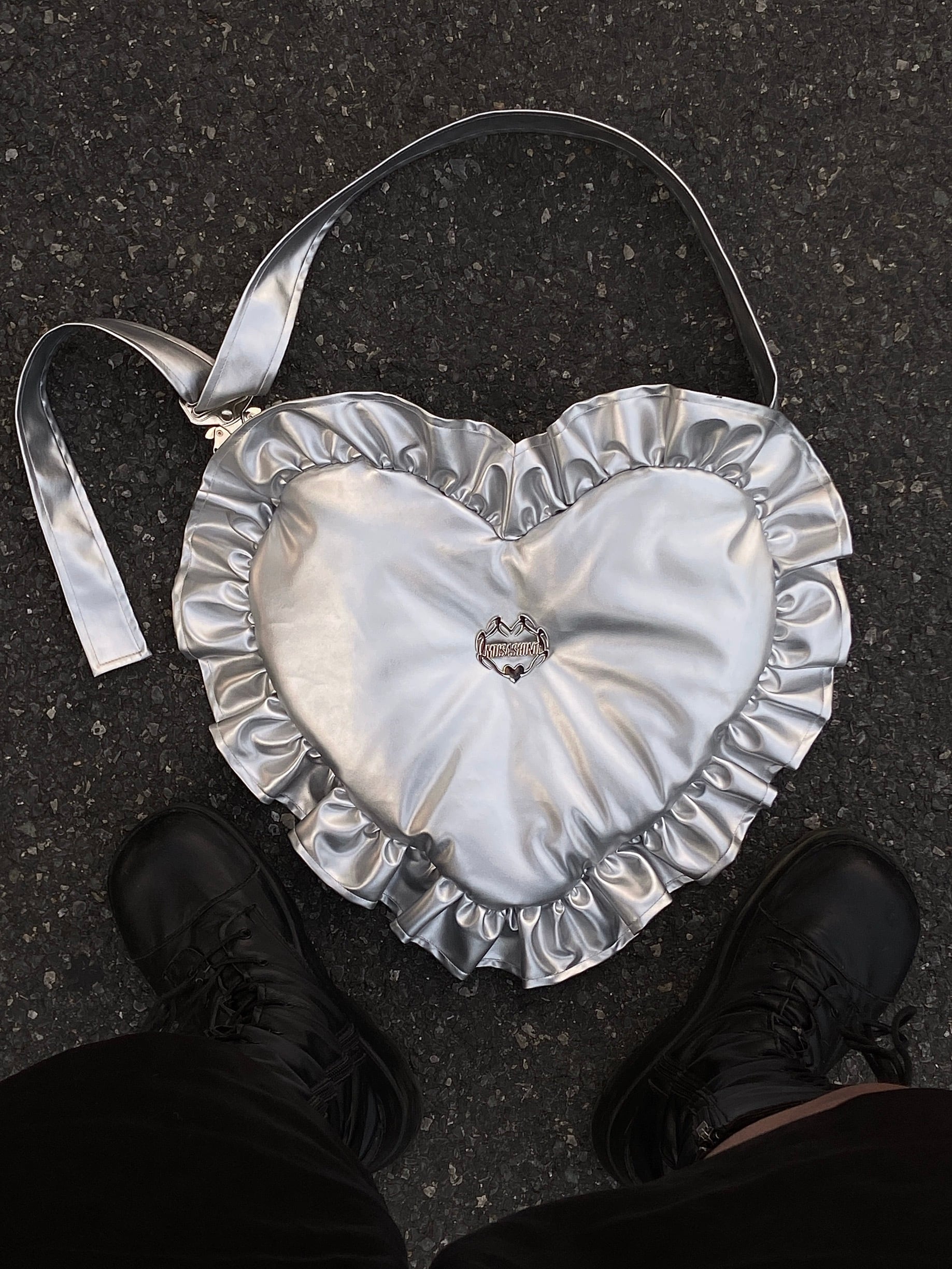 【2way】シルバー 銀 ハート ピンク ハート ショルダー リュック 鞄 ピンク 赤 ケイト バックパック ハート リボン 可愛い 原宿 ガーリー 姫 小物 アクセサリー ポーチ バッグ バック 犬 原宿 緑 ニット ショルダー