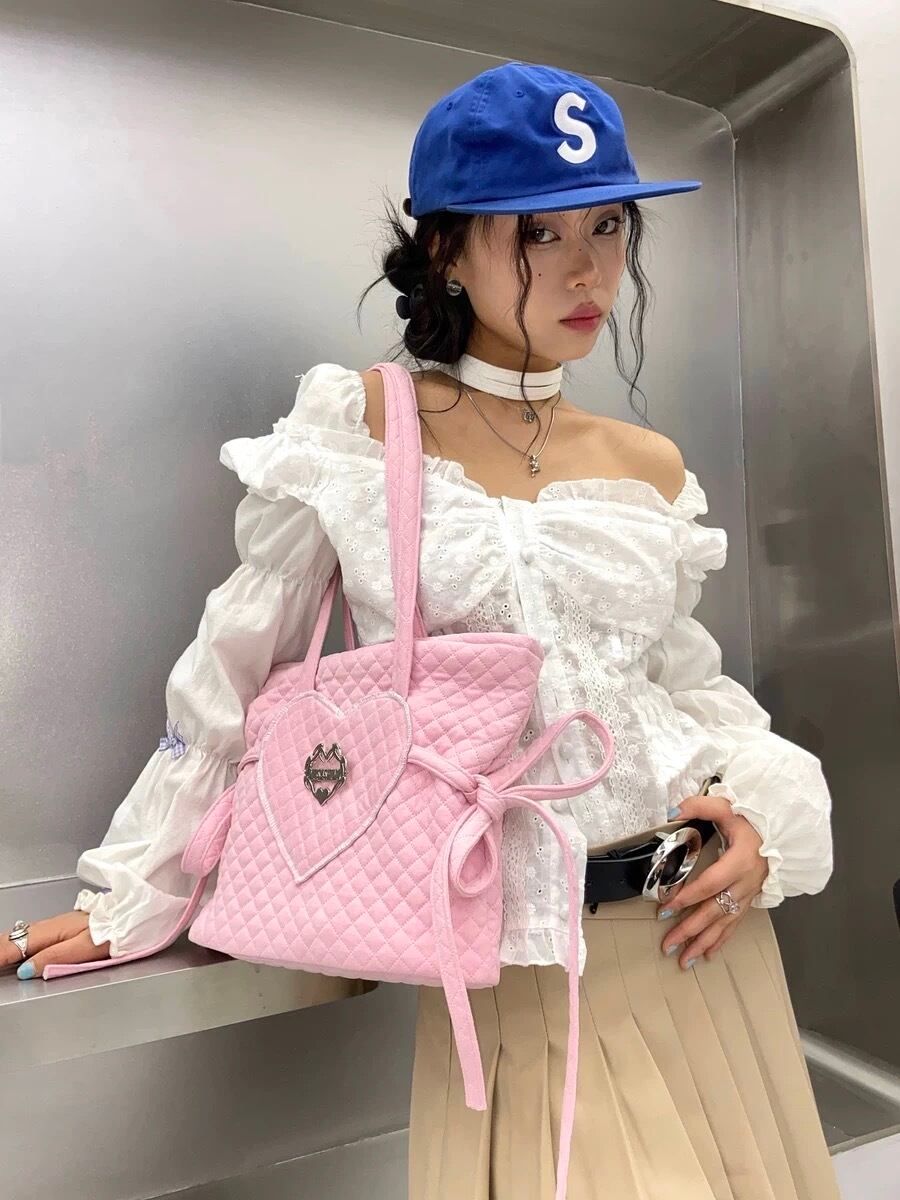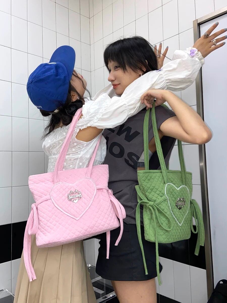 リボン ピンク 緑 トート ピンク ハート ショルダー リュック 鞄 ピンク 赤 ケイト バックパック ハート リボン 可愛い 原宿 ガーリー 姫 小物 アクセサリー ポーチ バッグ バック 犬 原宿 緑 ニット エコバッグ 可愛い リボン