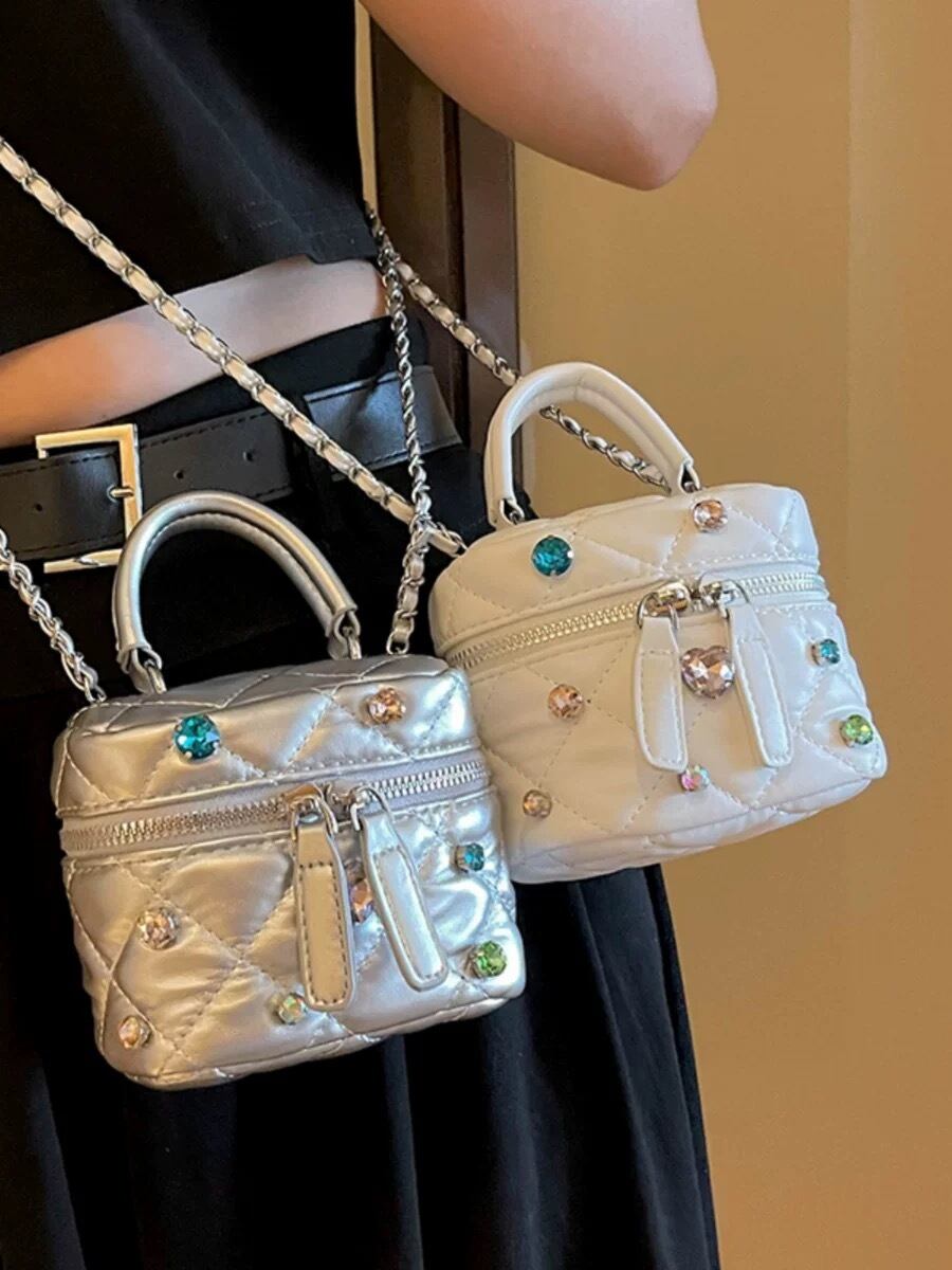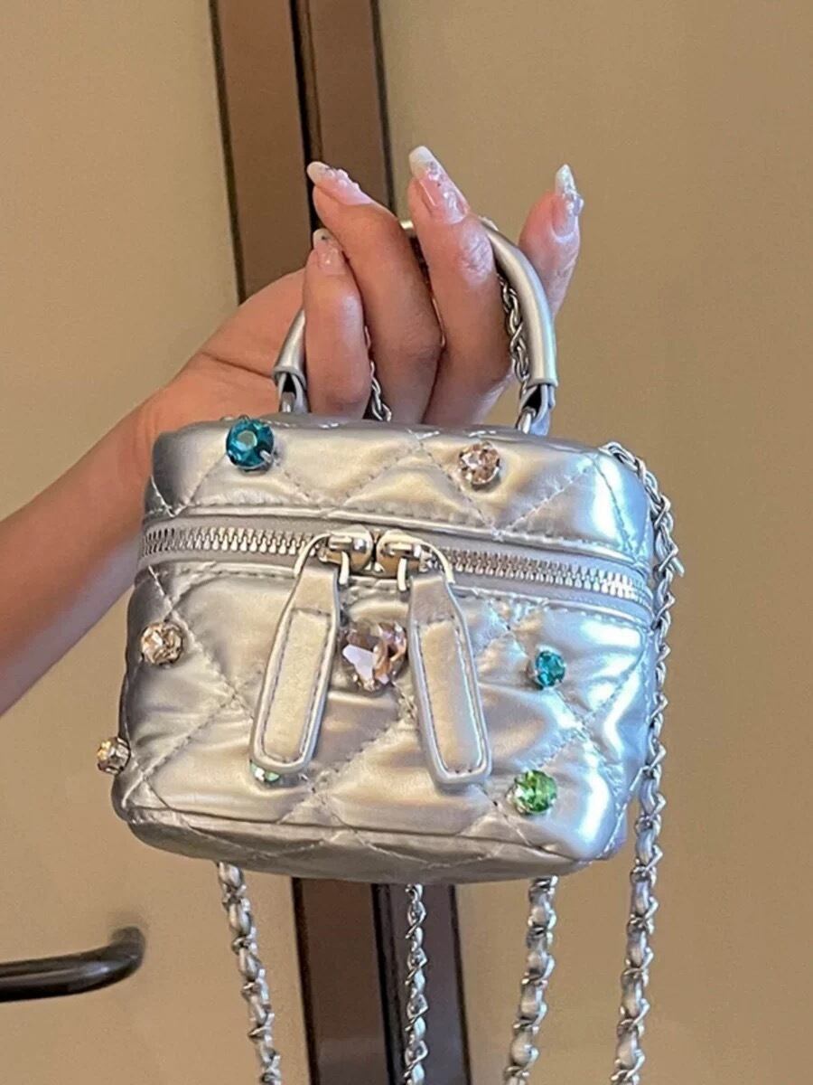 シルバー 銀 ラインストーン 黒 ピンク ハート ショルダー リュック 鞄 ピンク 赤 ケイト バックパック ハート リボン 可愛い 原宿 ガーリー 姫 小物 アクセサリー ポーチ バッグ バック 犬 原宿 緑 ニットチェーン