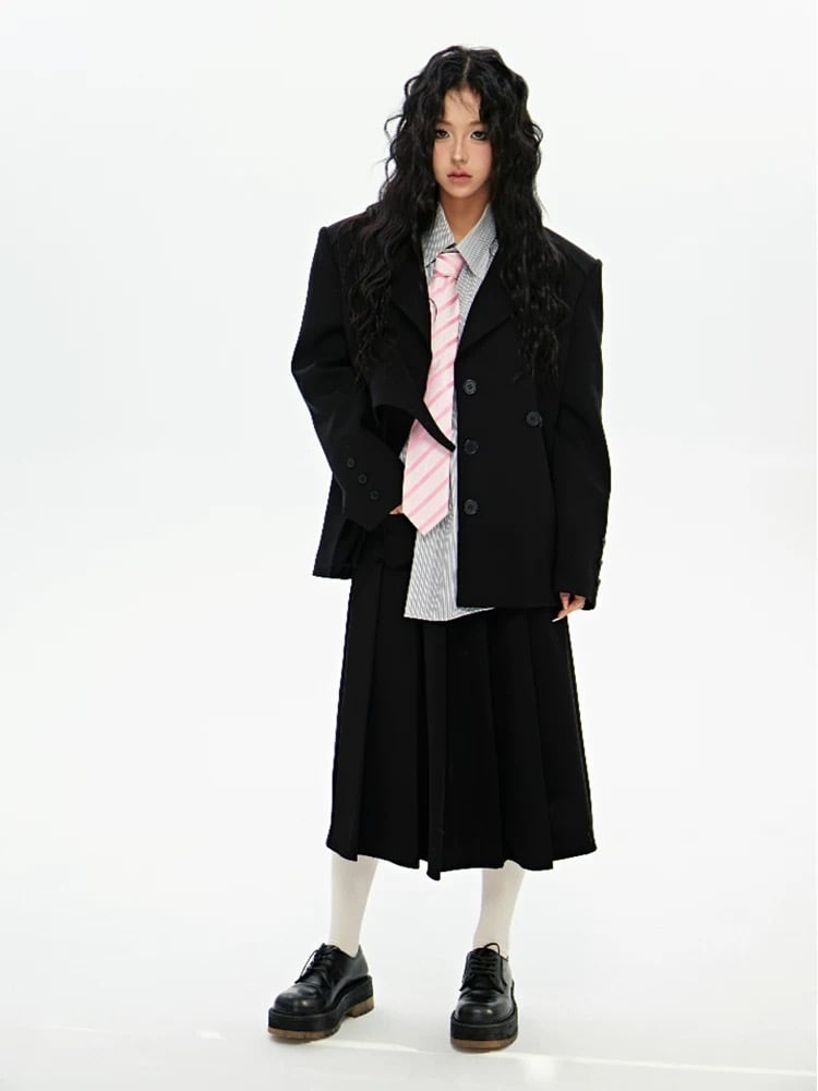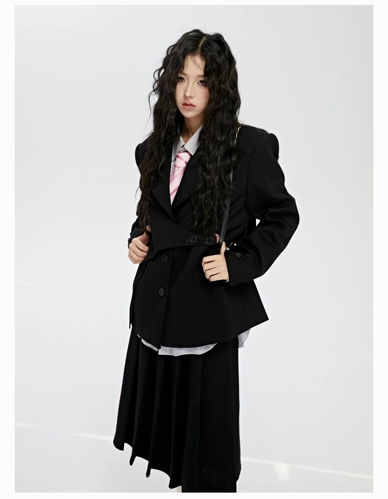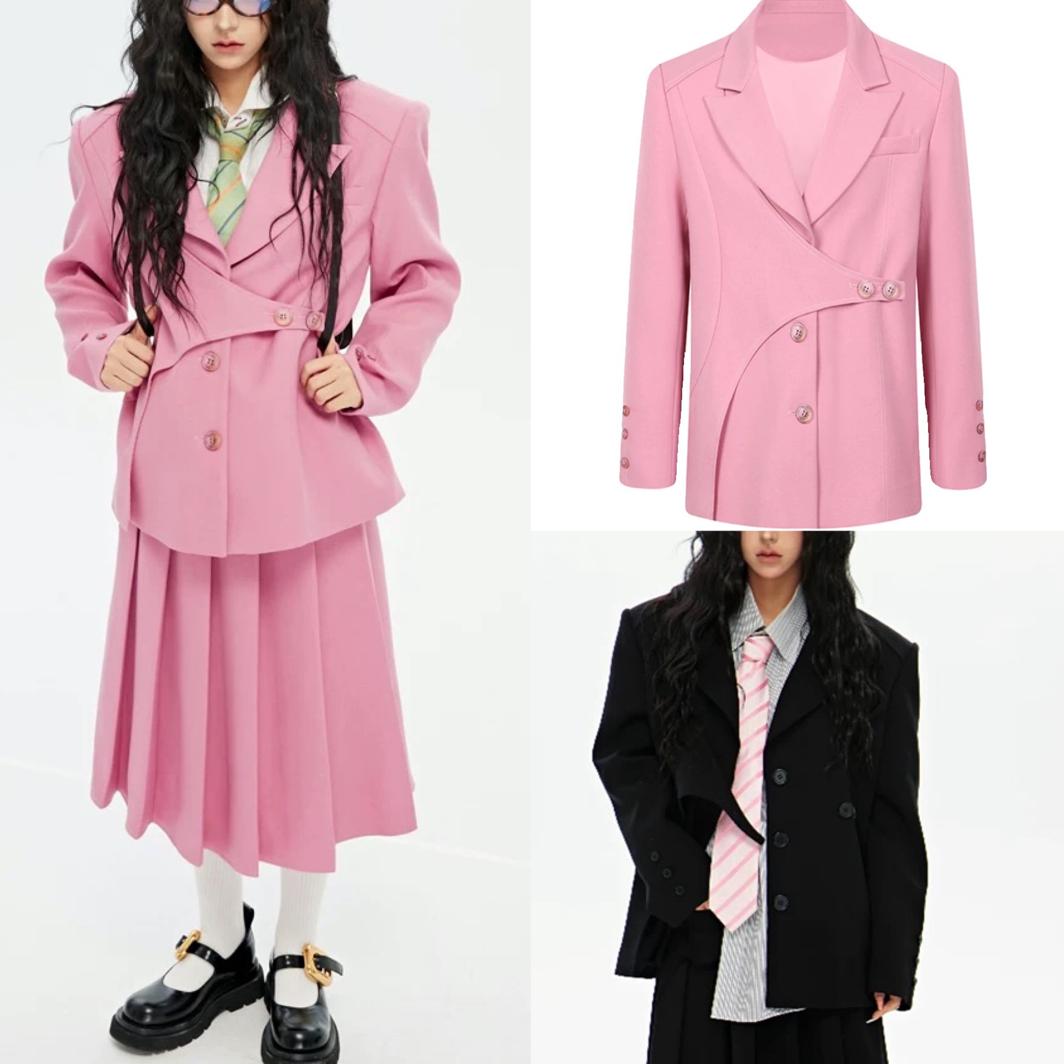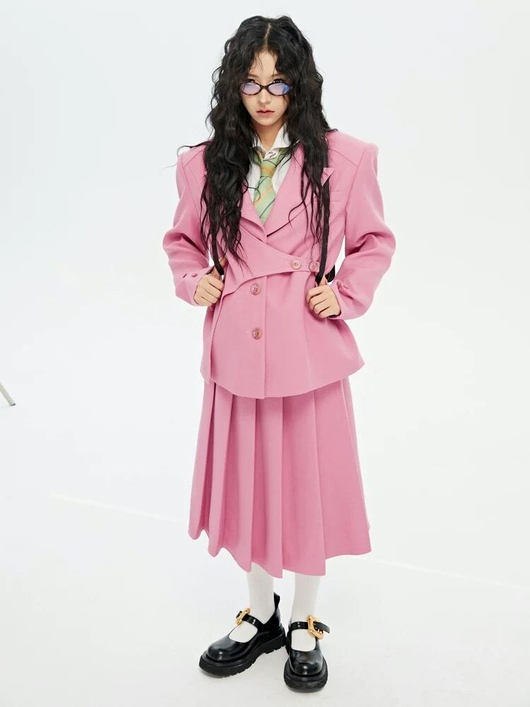【ジャケット】ピンク アウター スーツ カーディガン 黒 アウター ツーピース
