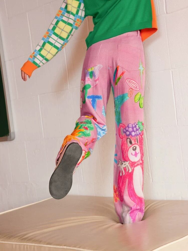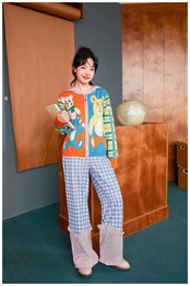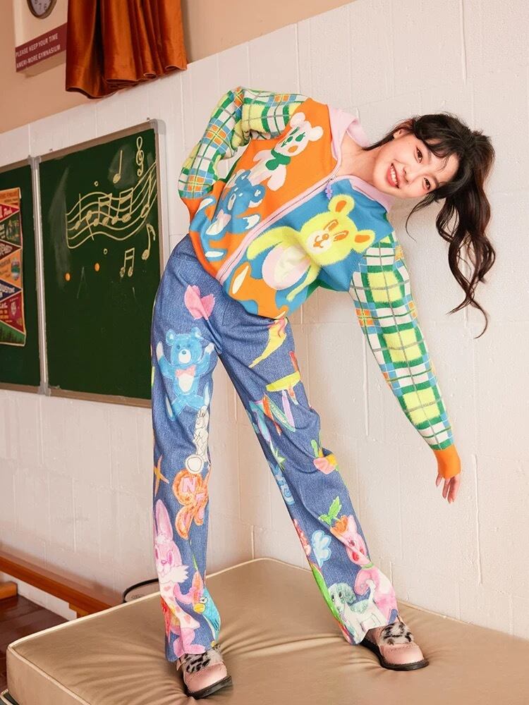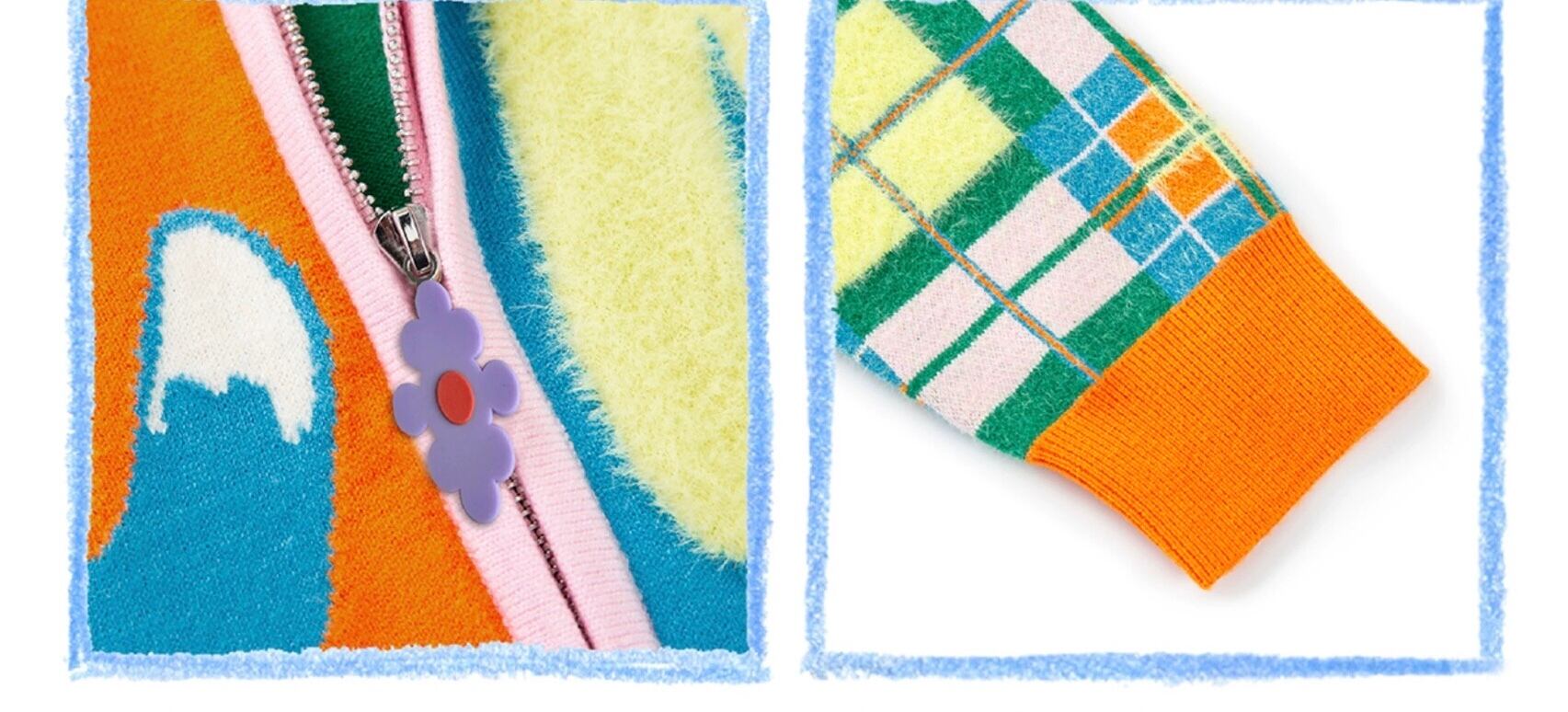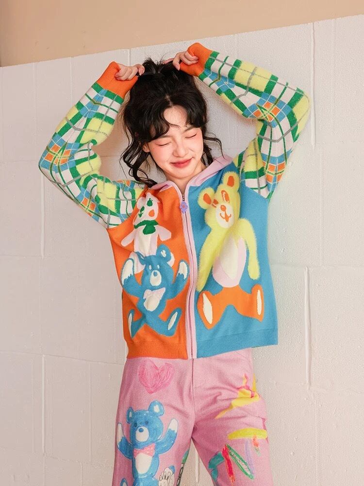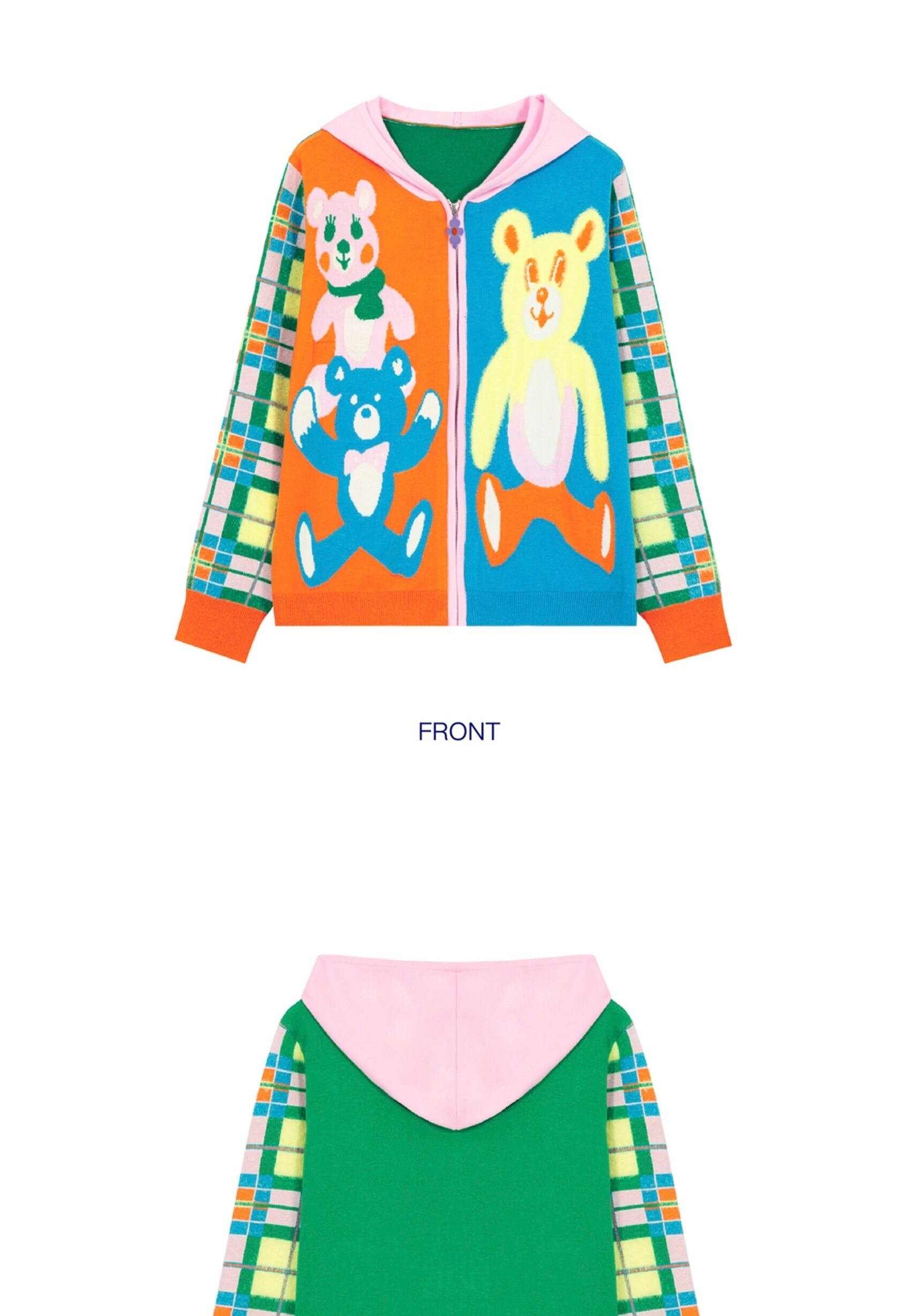 カーディガン セーター オレンジ アウター くまさん 水色 ガーリー 原宿 チェック 緑 水色 黄色