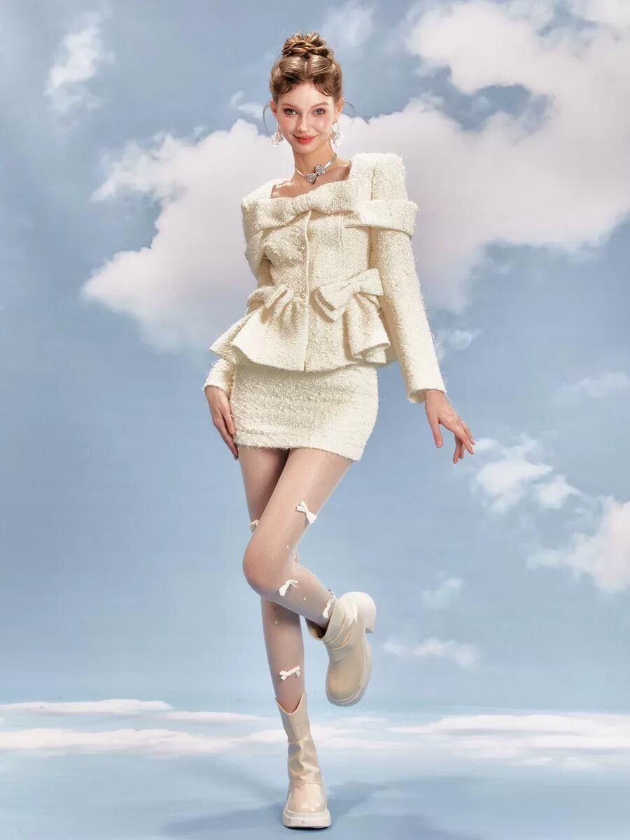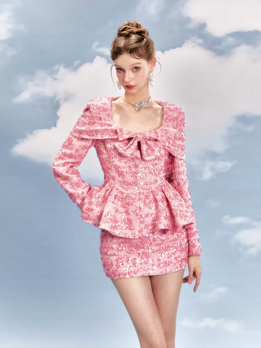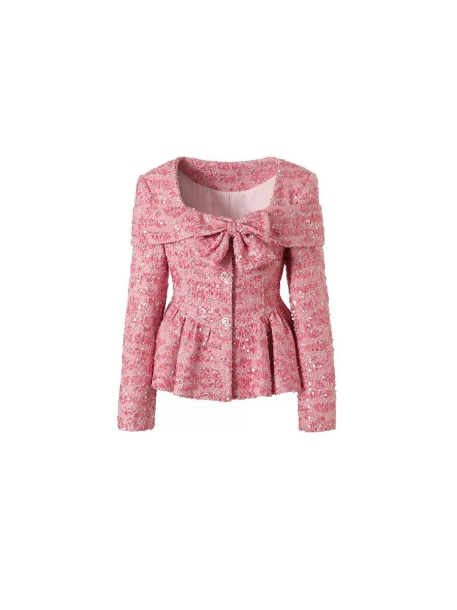 【ジャケット】スーツ ジャケット リボン ピンク 白 ガーリー ジャケット カーディガン お嬢様
