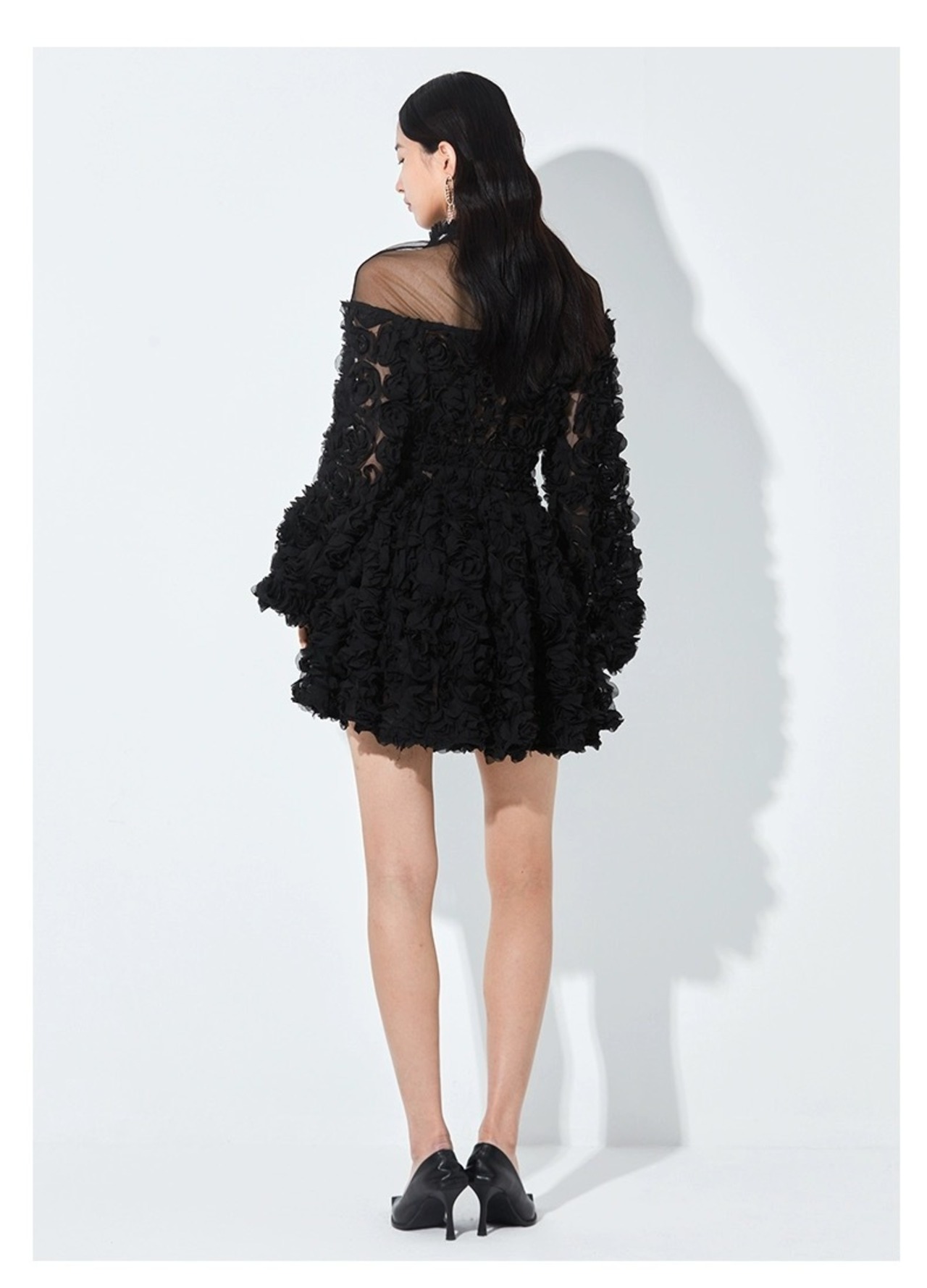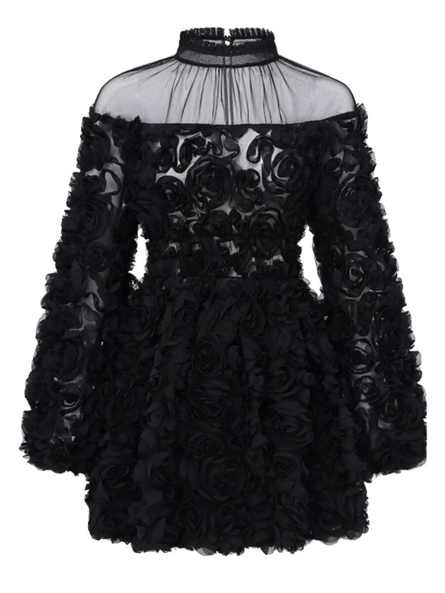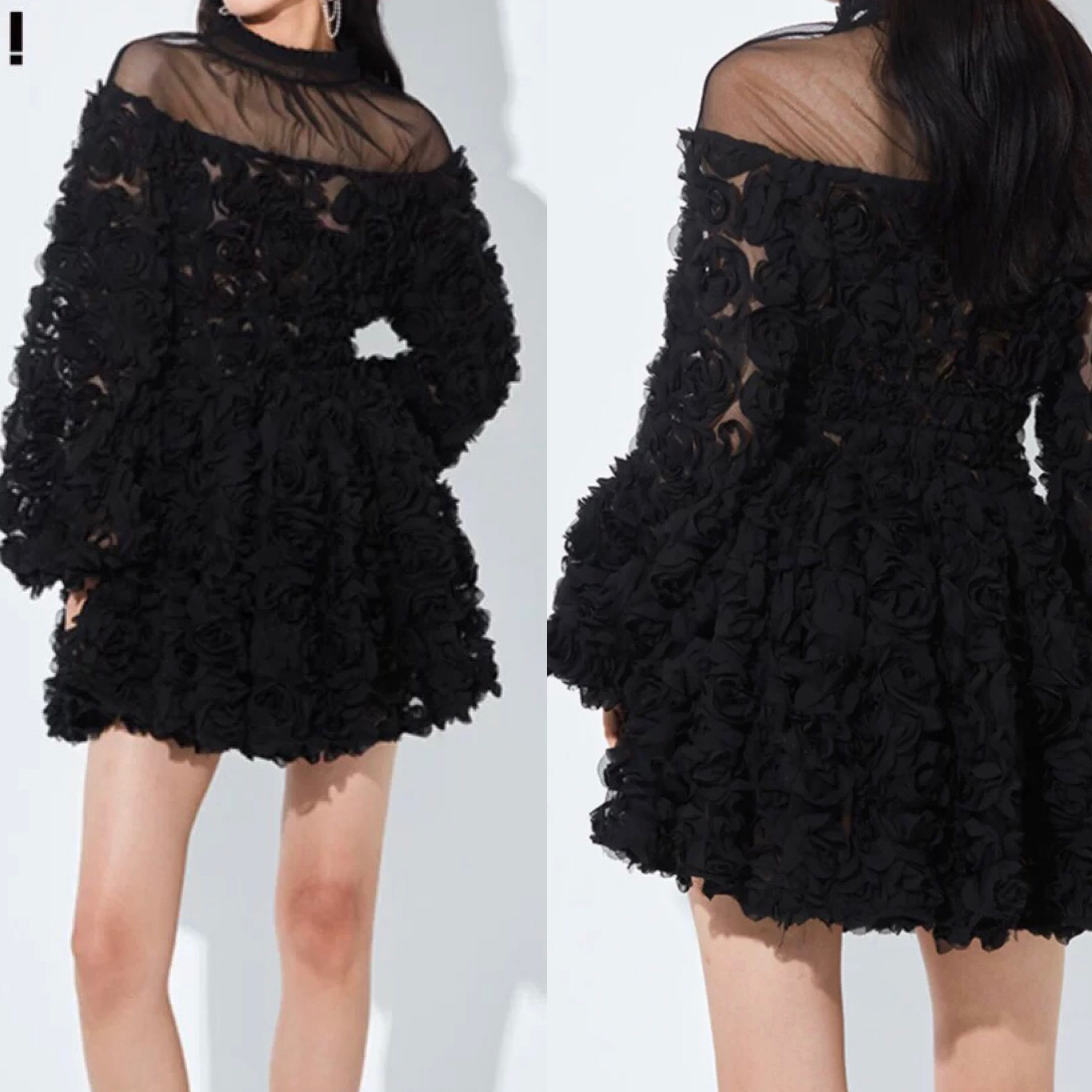 ドレス ワンピース 花柄 ブラック 黒 エレガント ブラウス ゴージャス モード シースルー