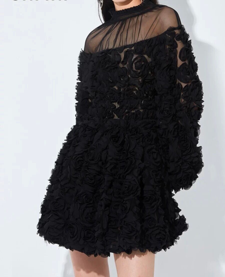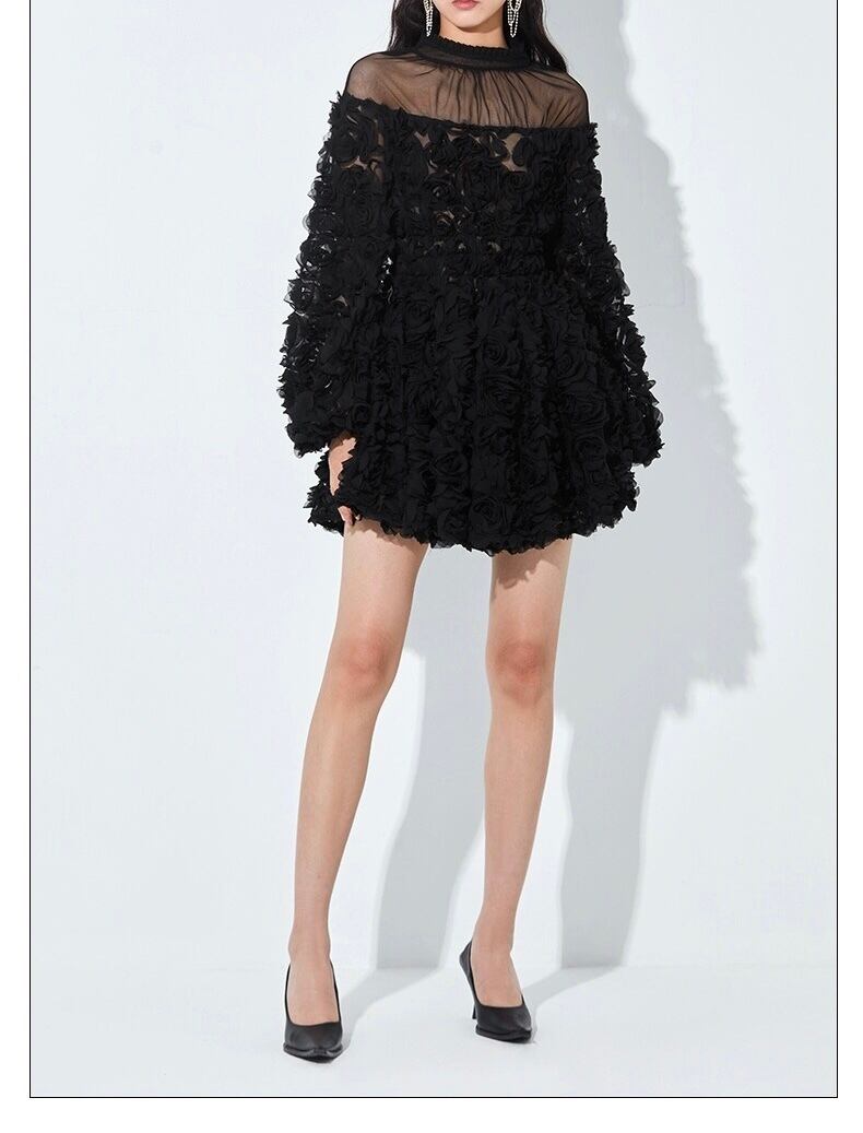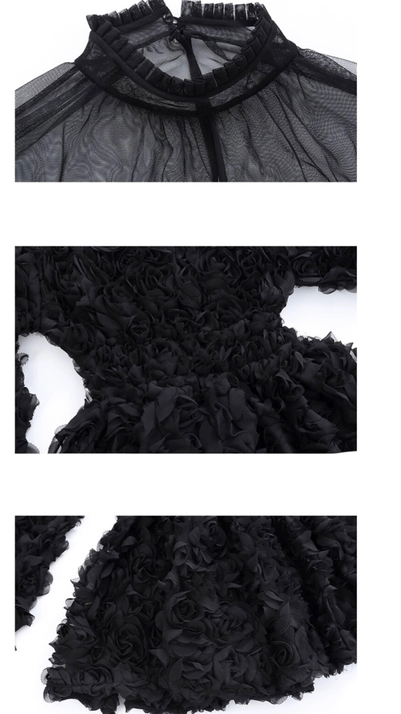 ドレス ワンピース 花柄 ブラック 黒 エレガント ブラウス ゴージャス モード シースルー