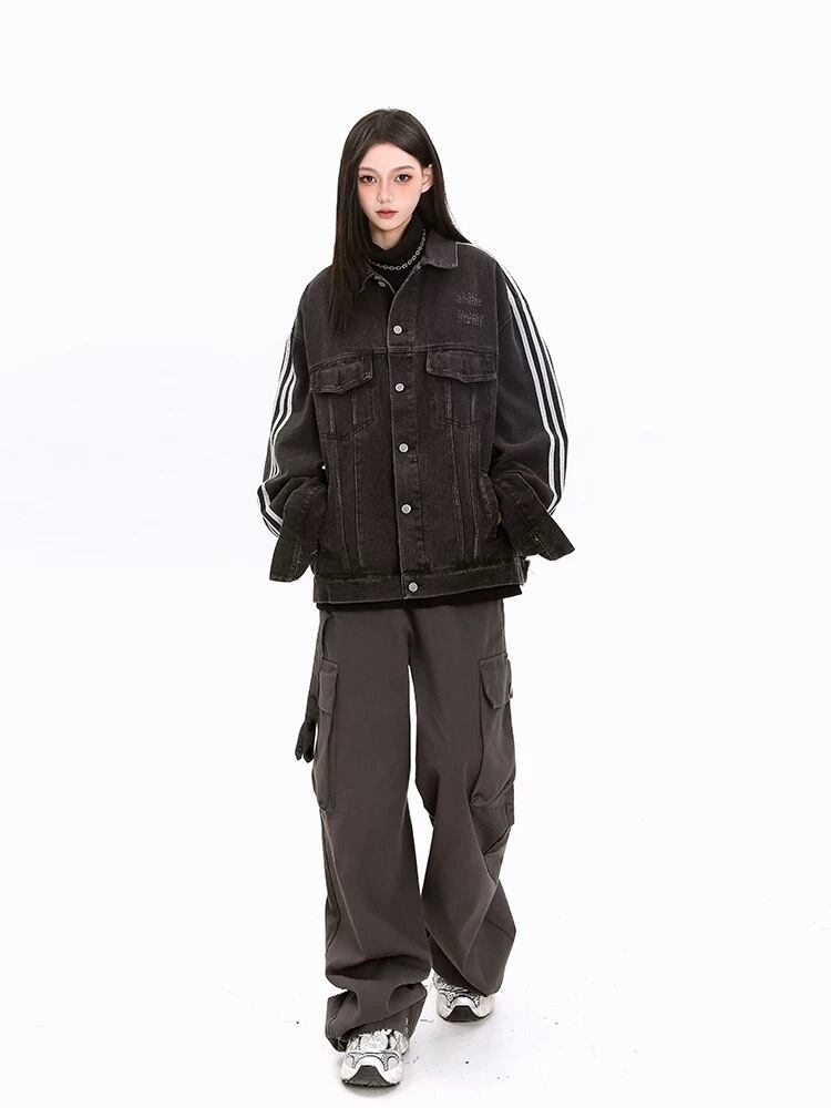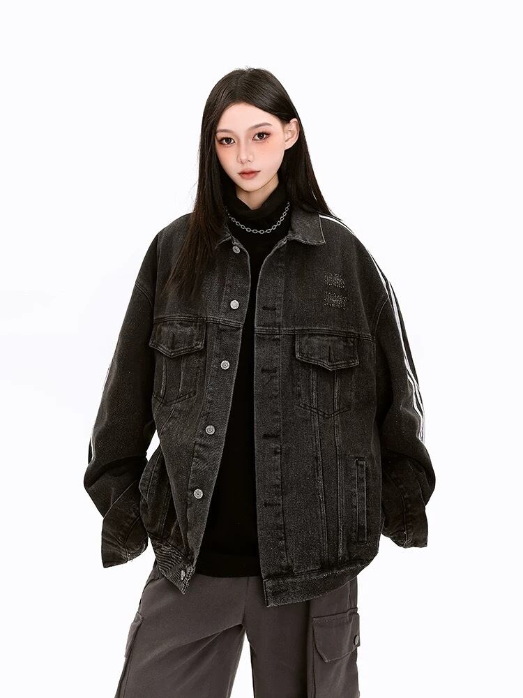 ジージャン 黒 デニム ジャケット アウター ストリート カジュアル ジャンパー コート デニム スウェット