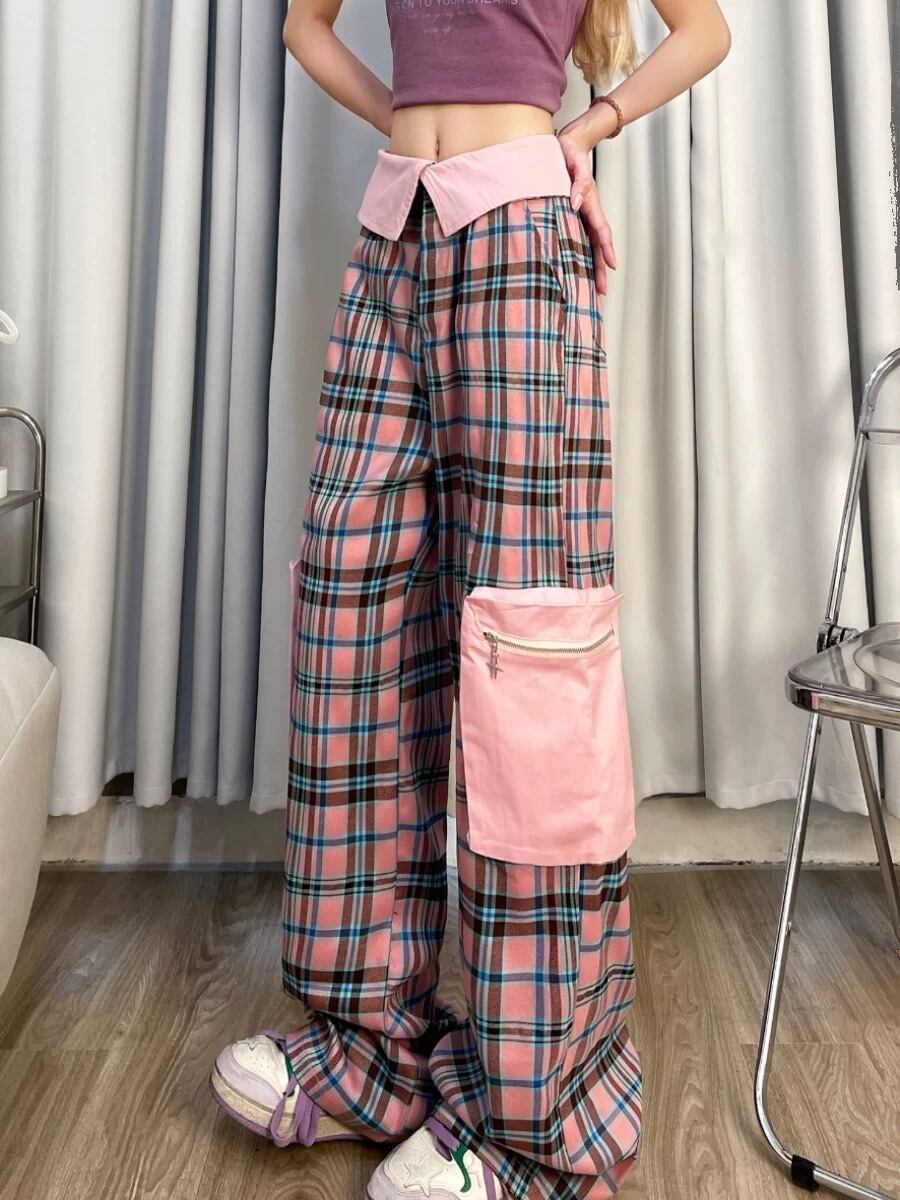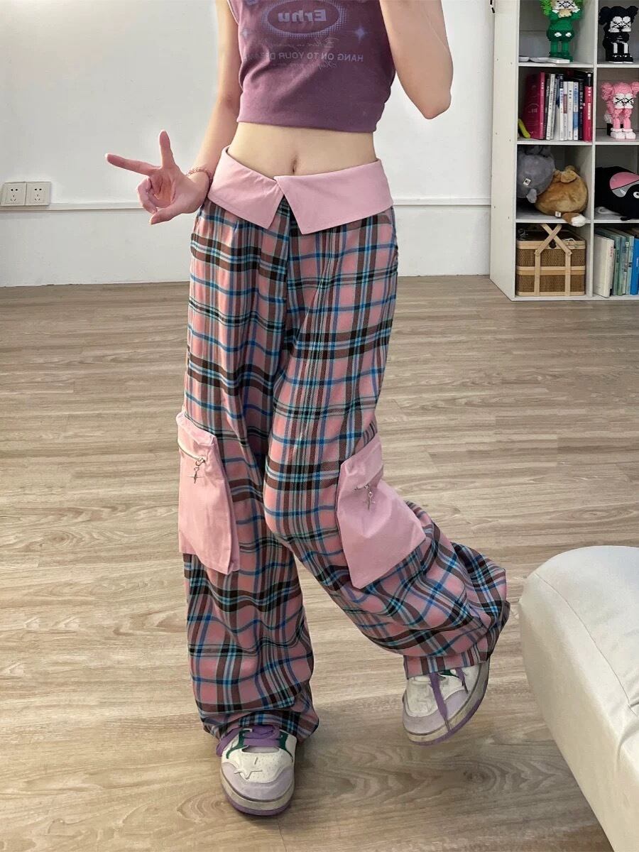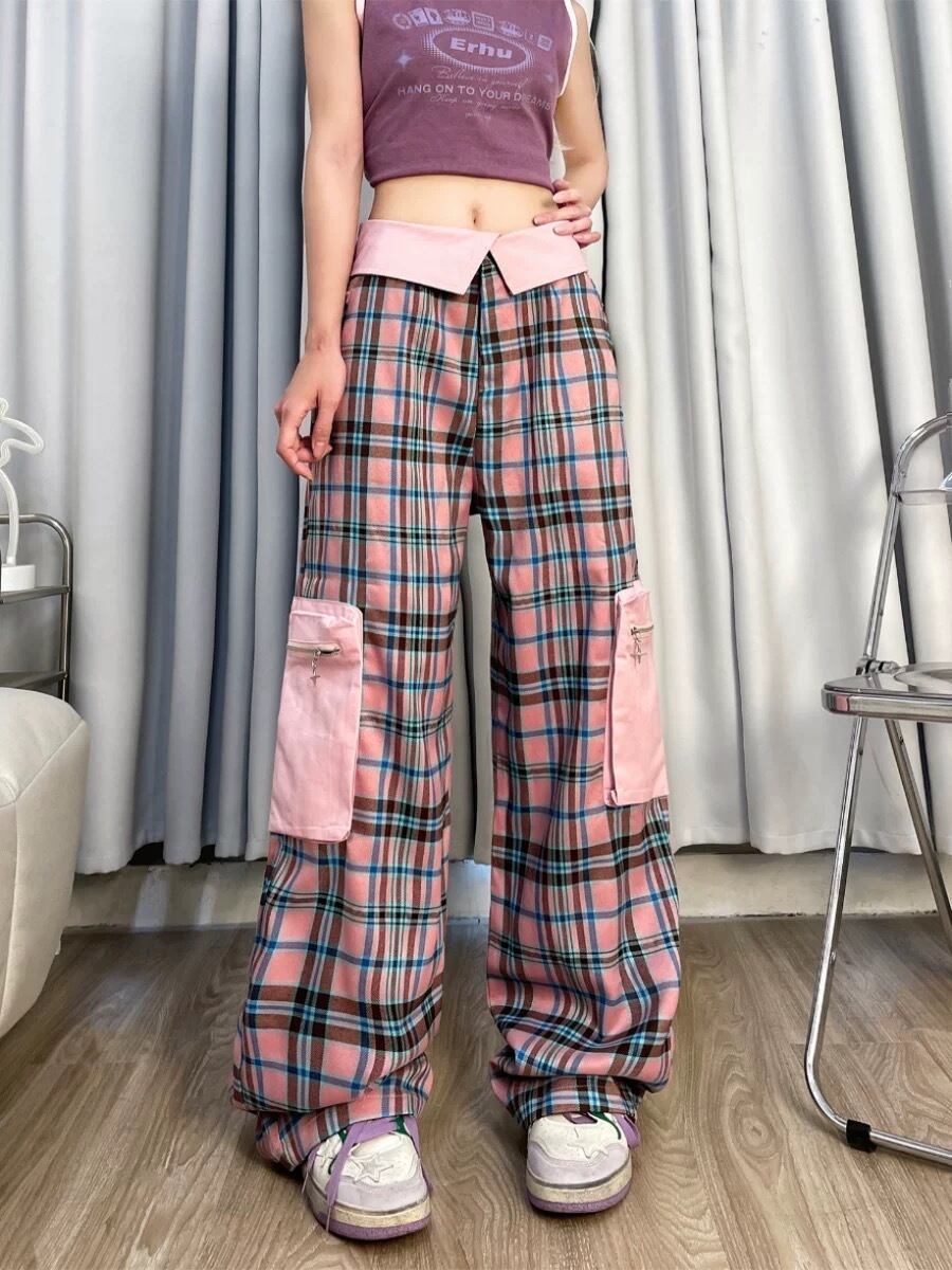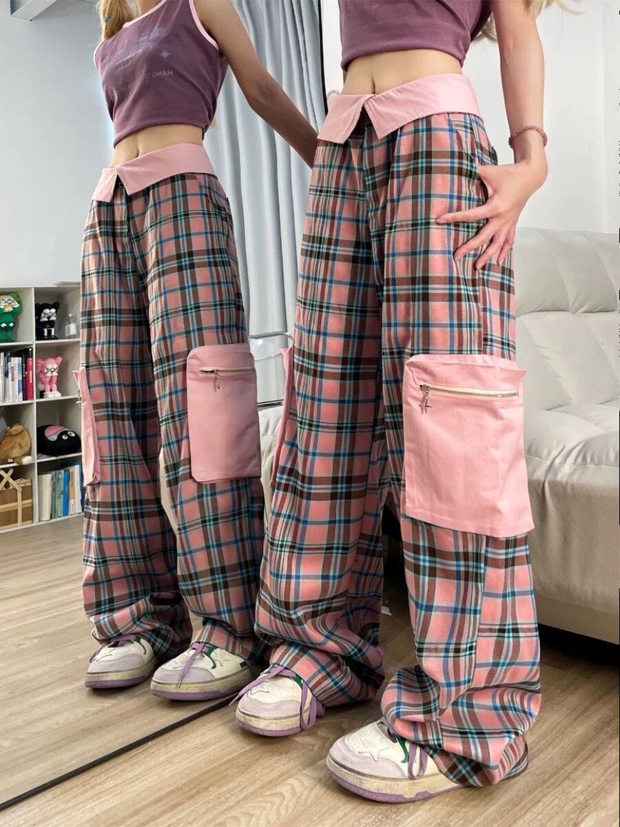 スウェット 緑 グラデーション デニム ピンク 緑 水色 カーゴ パンツ カジュアル カーゴパンツ スウェット ストリート ダンス 原宿 可愛い ボトムス ゆったり XL XXL 運動 ジム ポケット 作業着 ニッカポッカピンク チェック