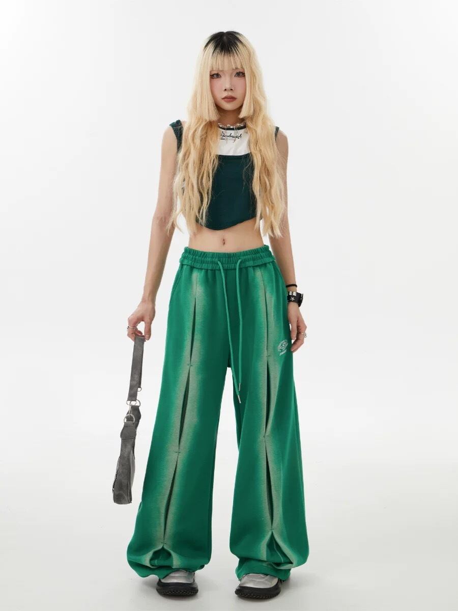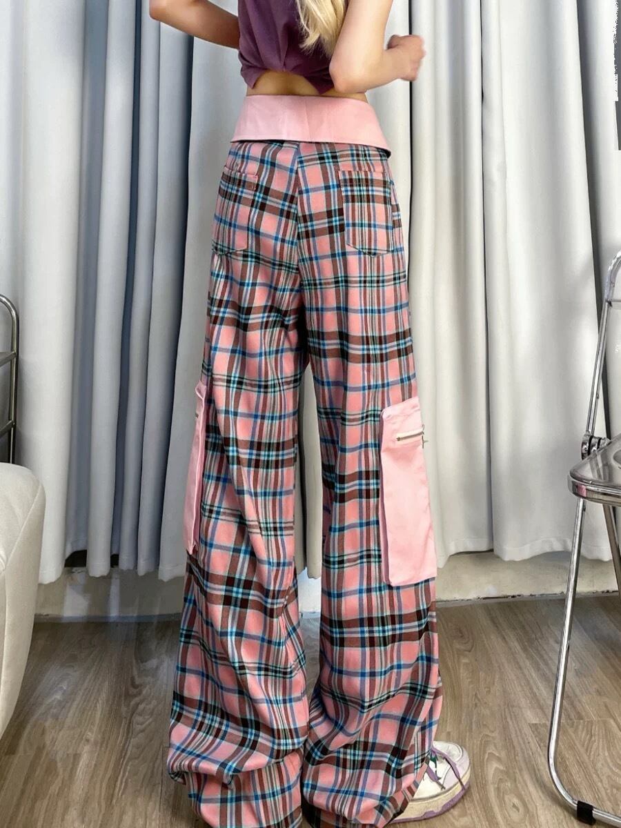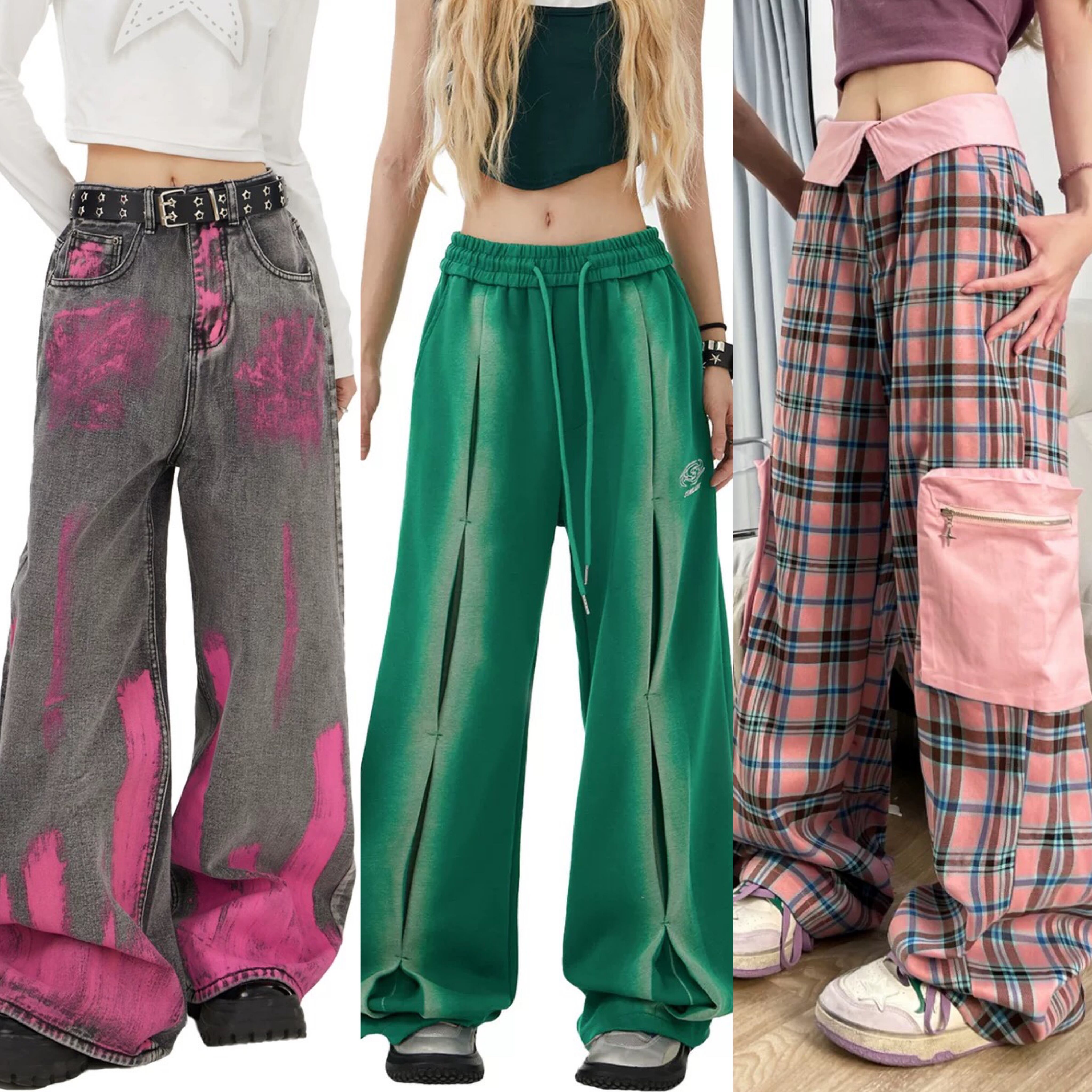 スウェット 緑 グラデーション デニム ピンク 緑 水色 カーゴ パンツ カジュアル カーゴパンツ スウェット ストリート ダンス 原宿 可愛い ボトムス ゆったり XL XXL 運動 ジム ポケット 作業着 ニッカポッカピンク チェック