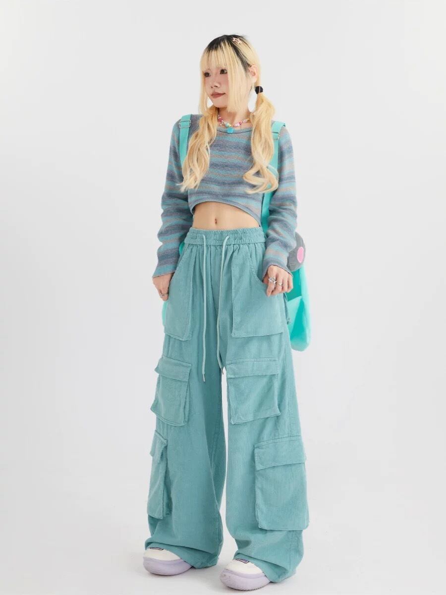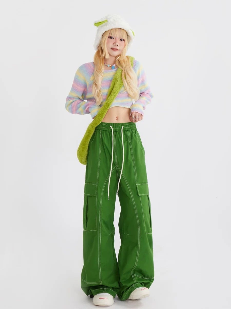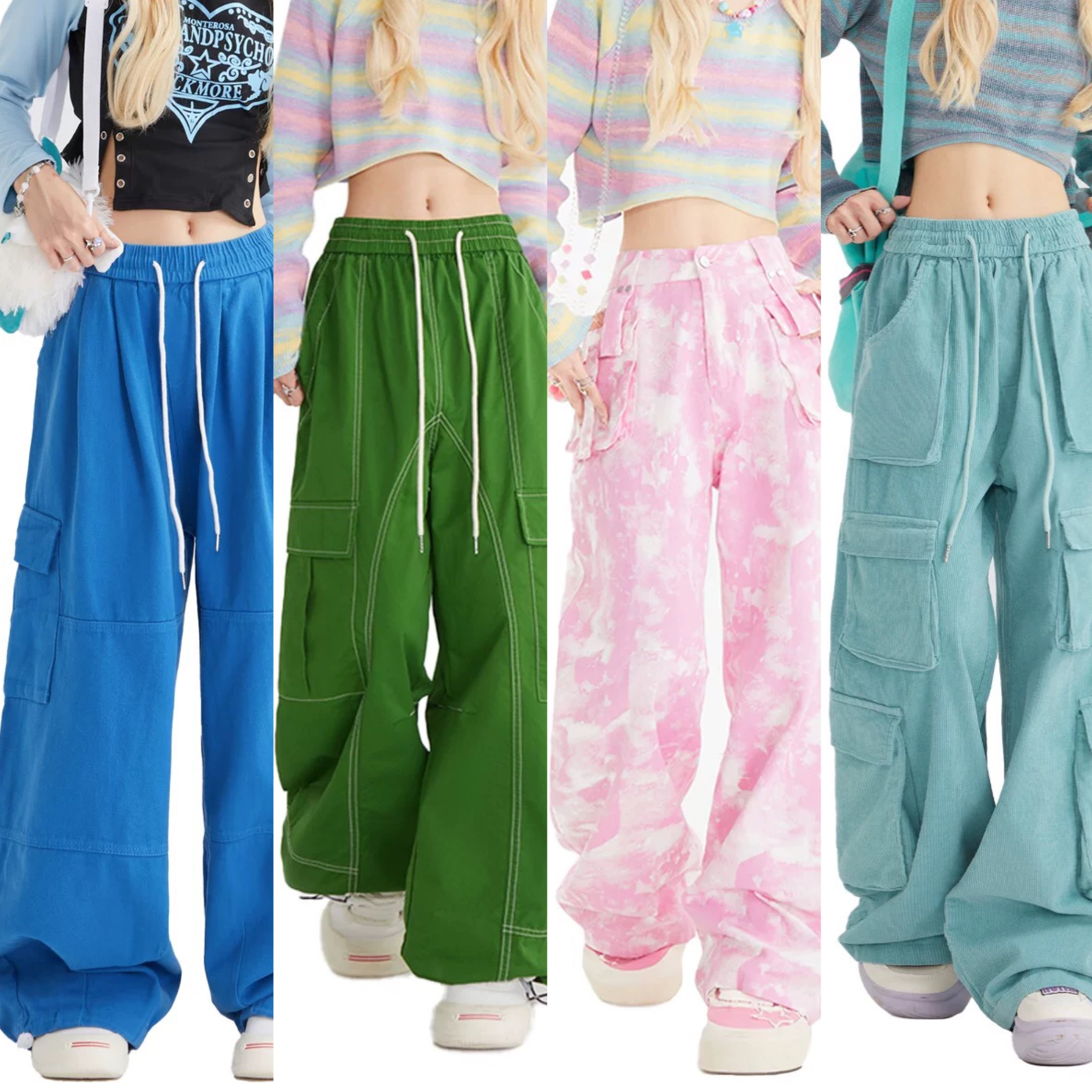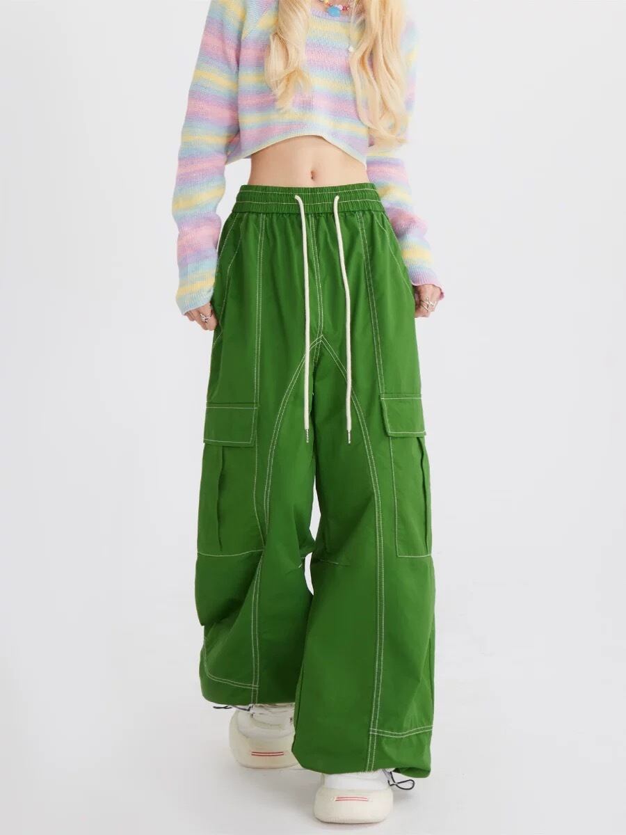 水色 緑 ピンク カーゴ パンツ ピンク 緑 水色 カーゴ パンツ カジュアル カーゴパンツ スウェット ストリート ダンス 原宿 可愛い ボトムス ゆったり XL XXL 運動 ジム ポケット 作業着 ニッカポッカ