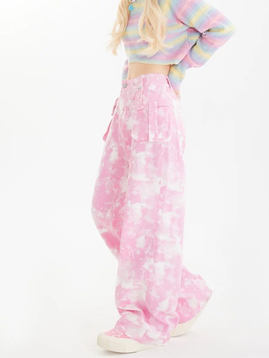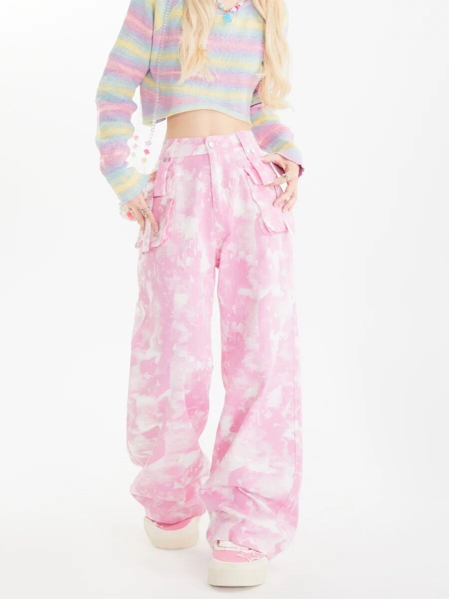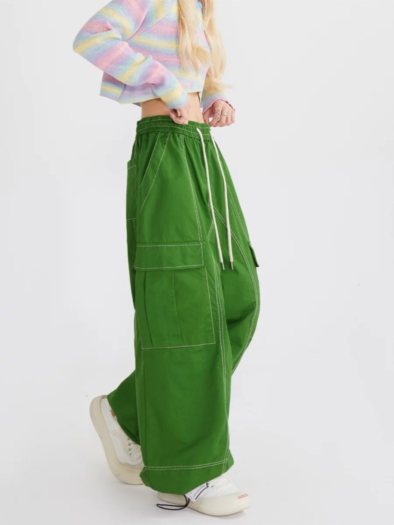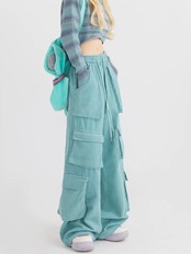 水色 緑 ピンク カーゴ パンツ ピンク 緑 水色 カーゴ パンツ カジュアル カーゴパンツ スウェット ストリート ダンス 原宿 可愛い ボトムス ゆったり XL XXL 運動 ジム ポケット 作業着 ニッカポッカ