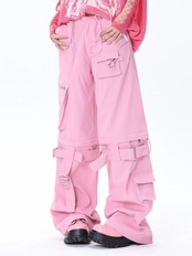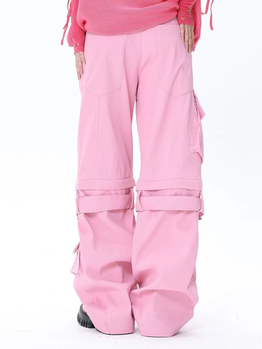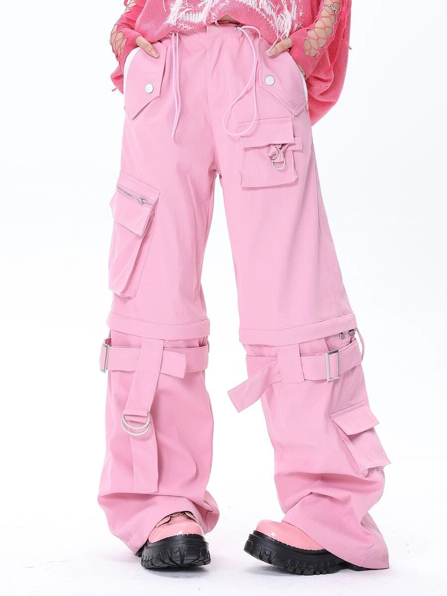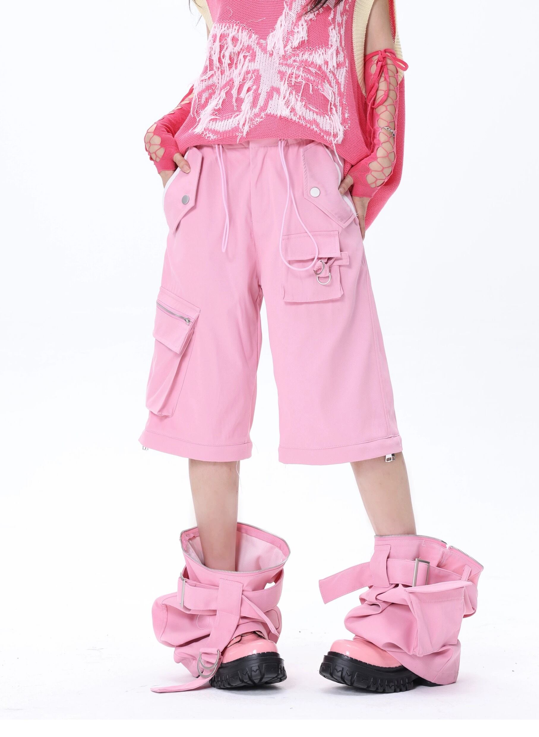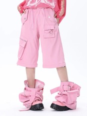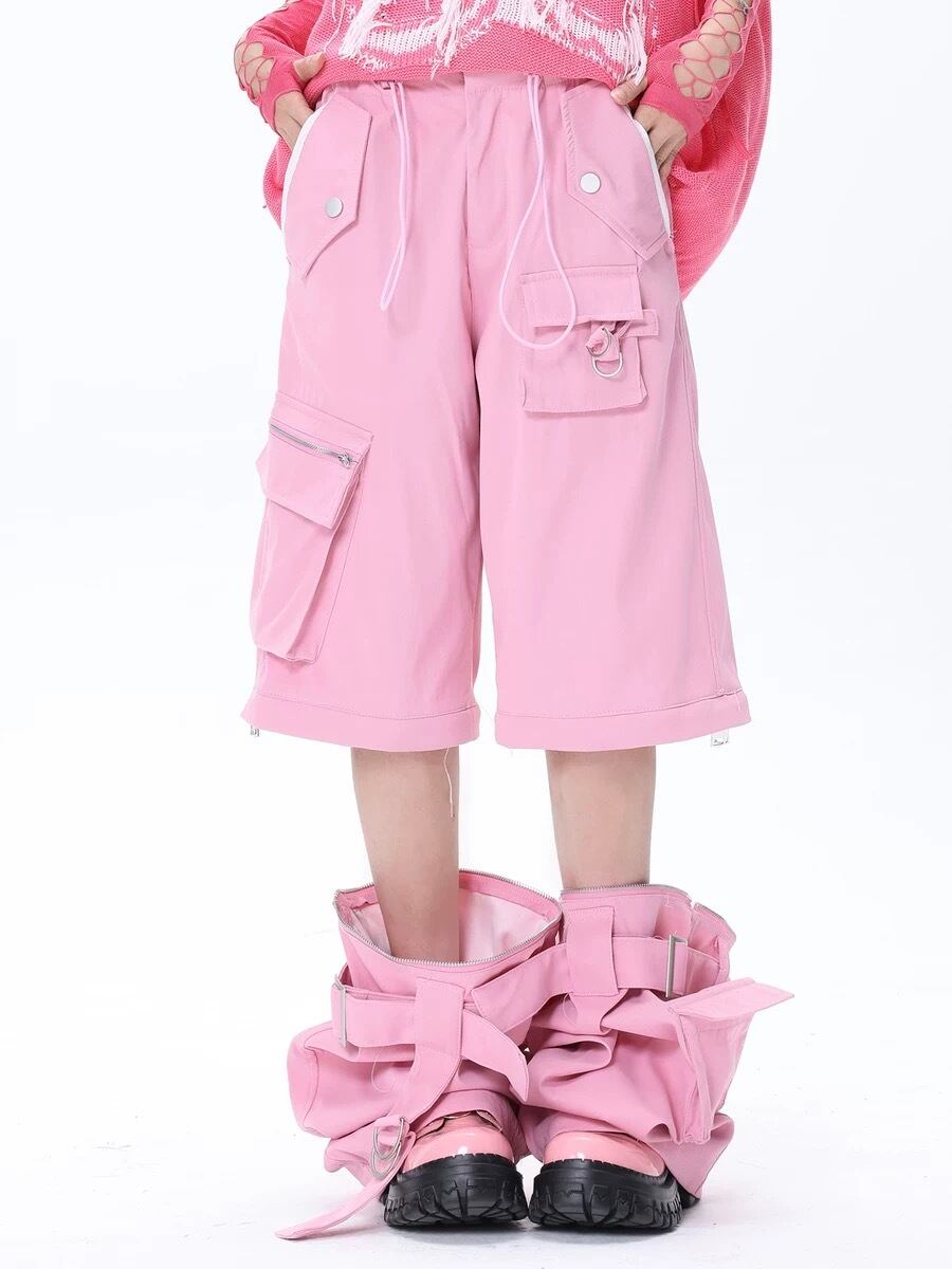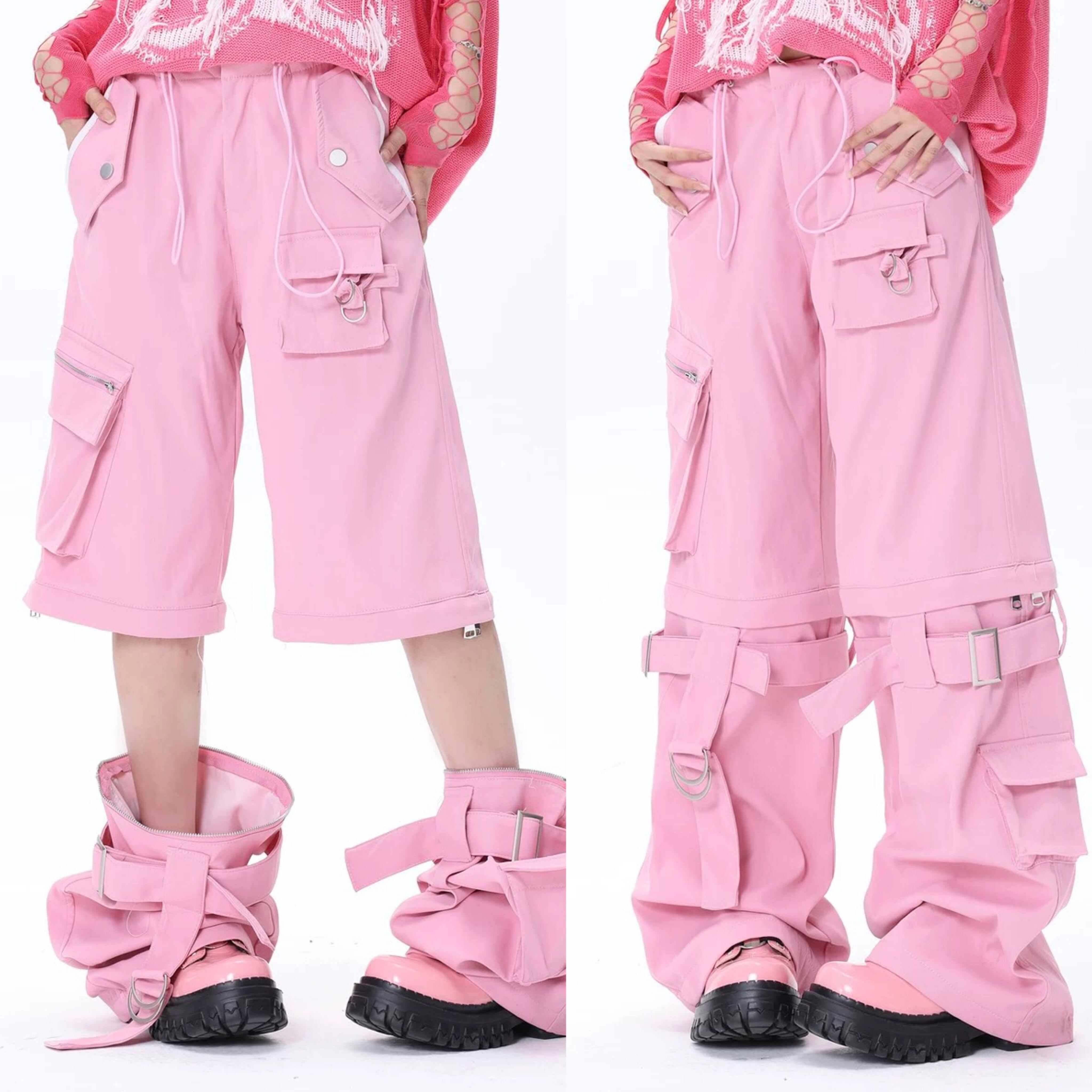【3way】ピンク レッグウォーマー パンツ カジュアル カーゴパンツ スウェット ストリート ダンス 原宿 可愛い ボトムス ゆったり XL XXL 運動 ジム ポケット