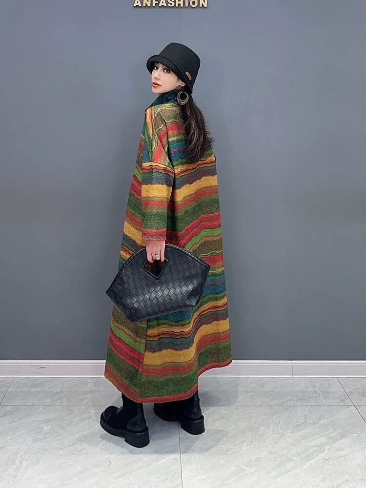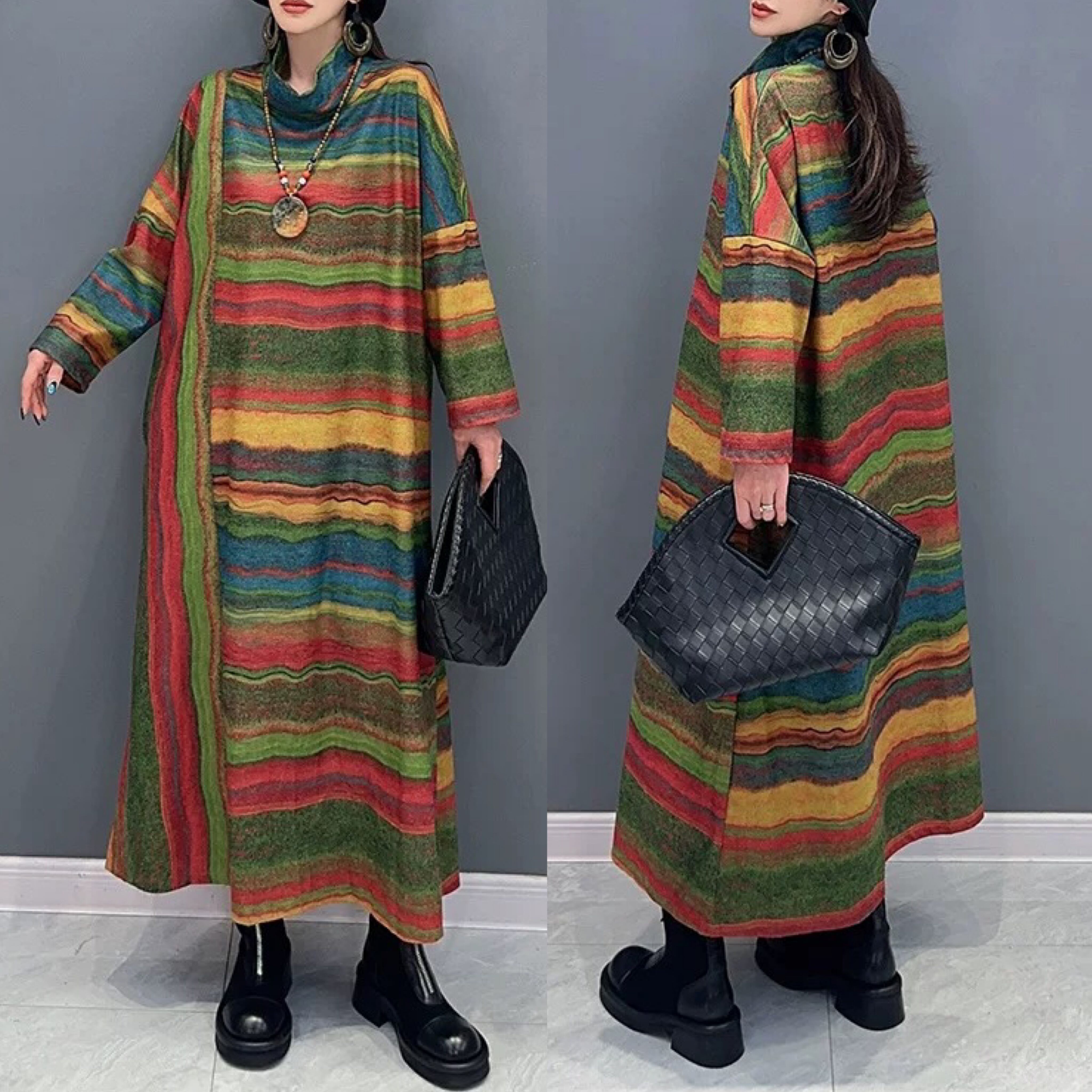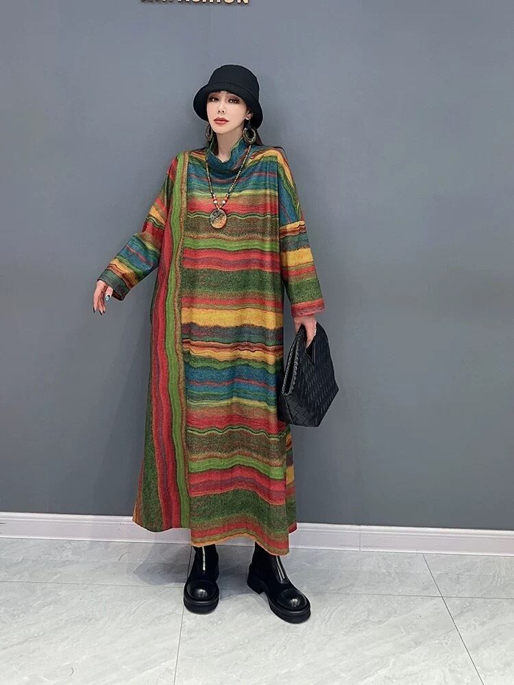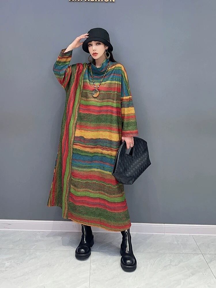 ワンピース ボーダー 緑 黄色 カラフル グラデーション