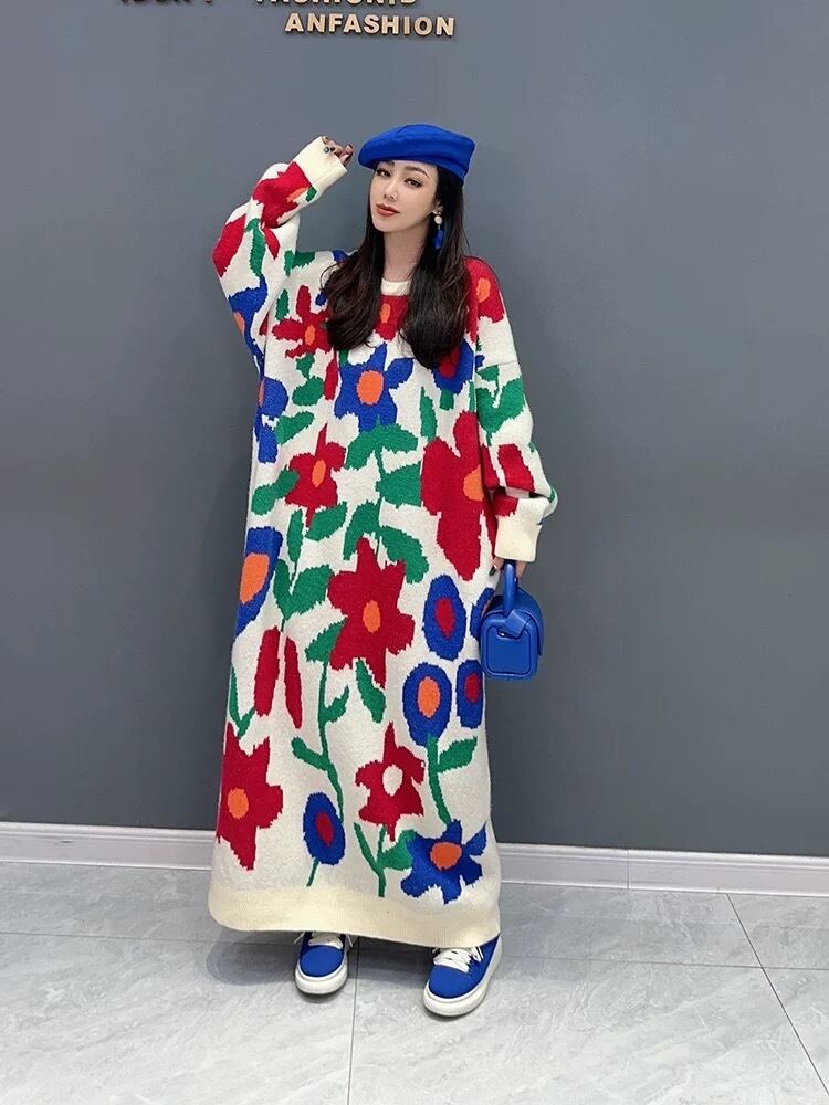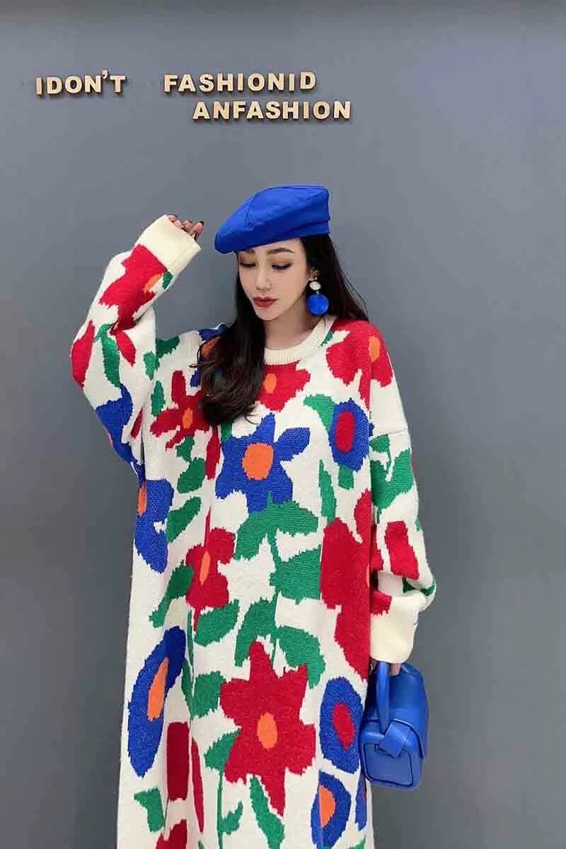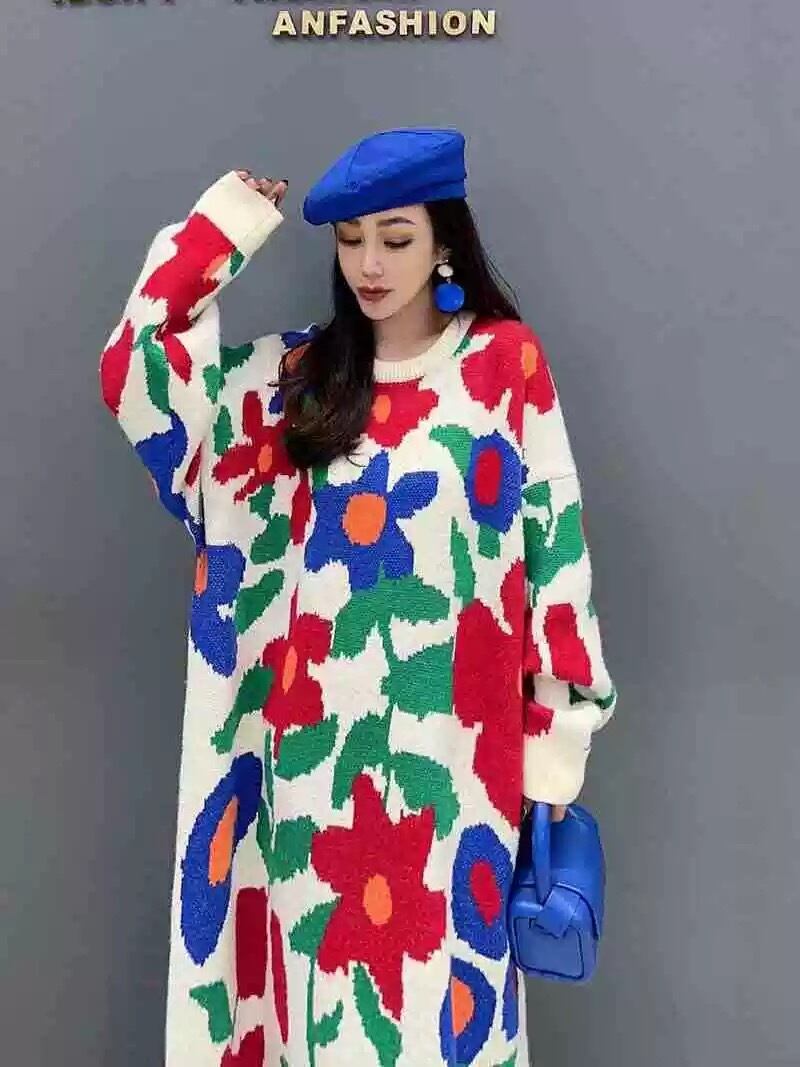 花柄 黒 白 フラワー 赤 ワンピース セーター カーディガン