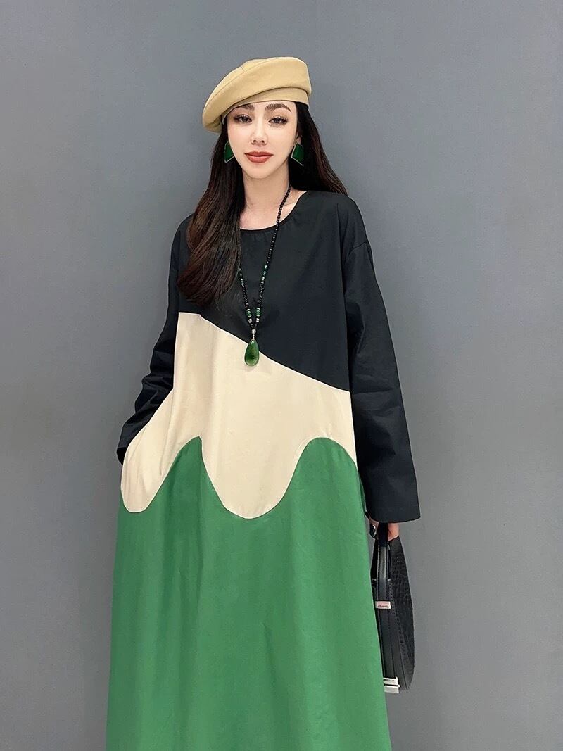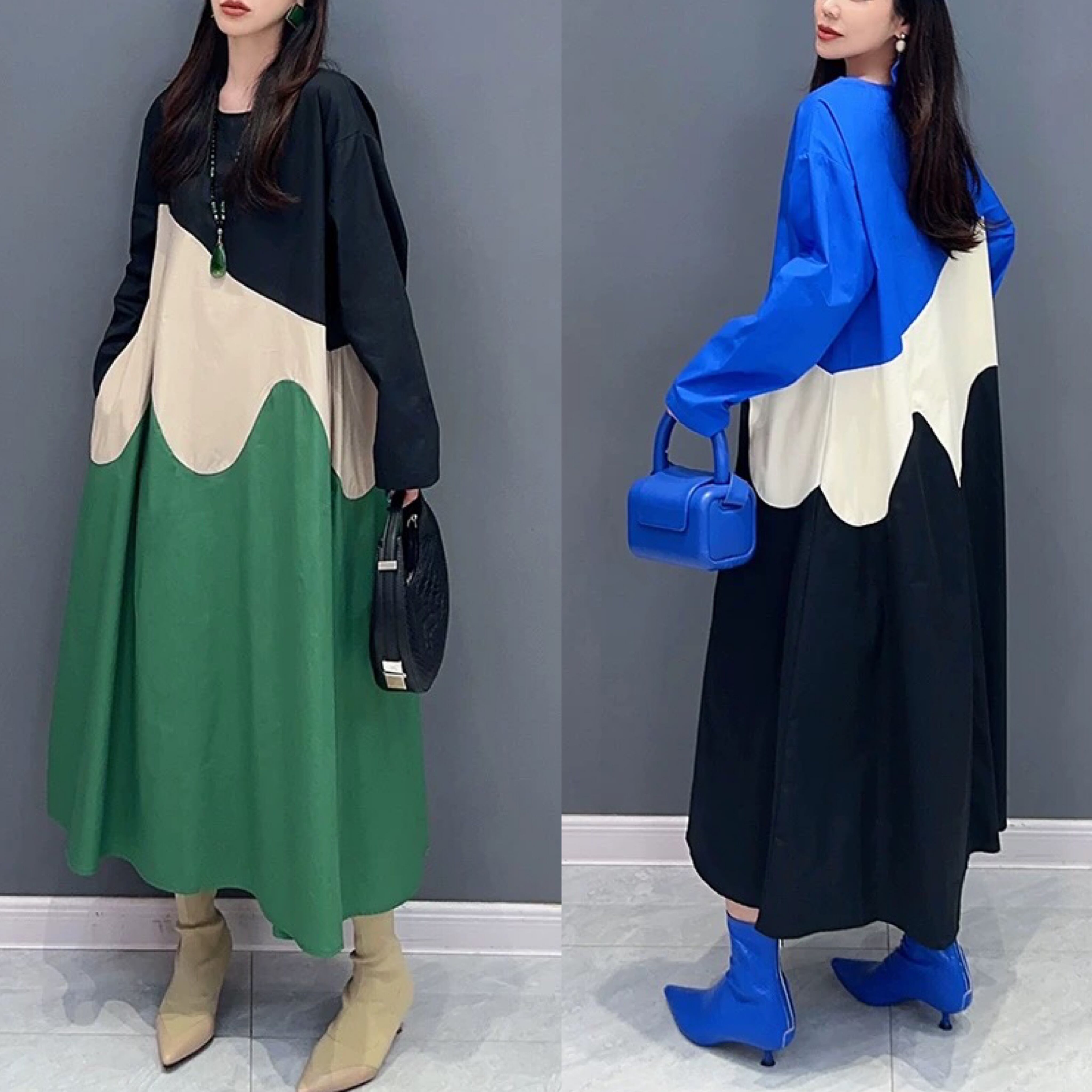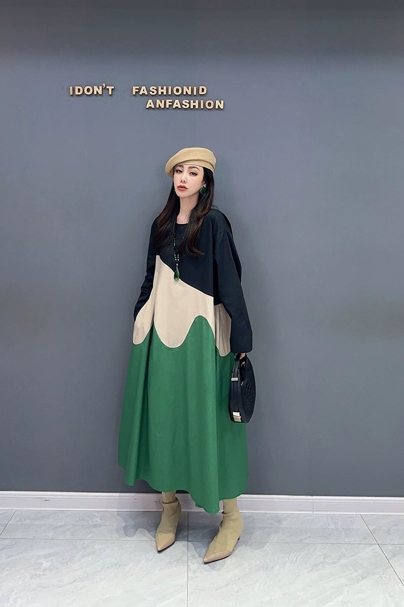 緑 青 ワンピース ゆったり カジュアル ブラウス グラデーション ボーダー