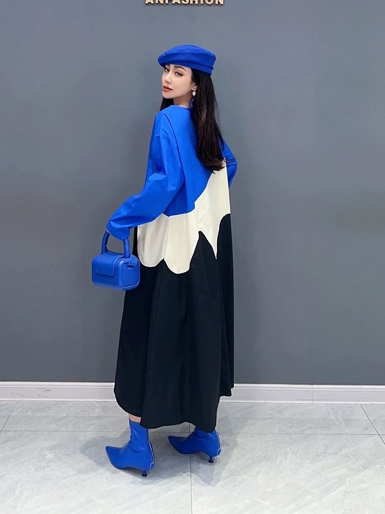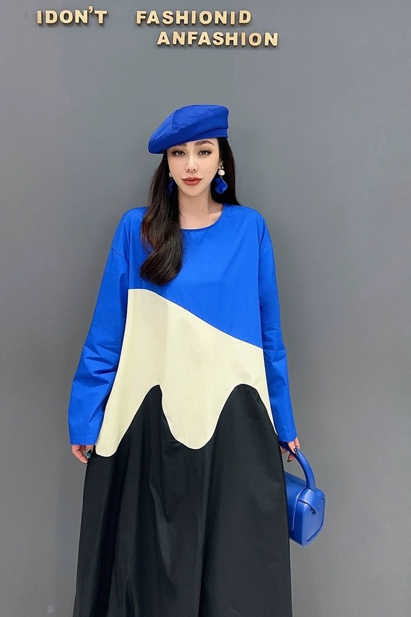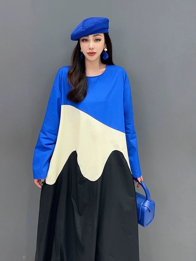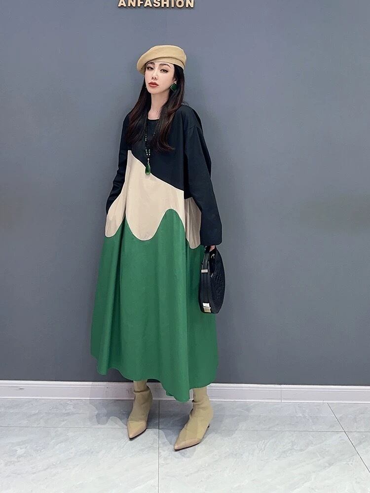 緑 青 ワンピース ゆったり カジュアル ブラウス グラデーション ボーダー