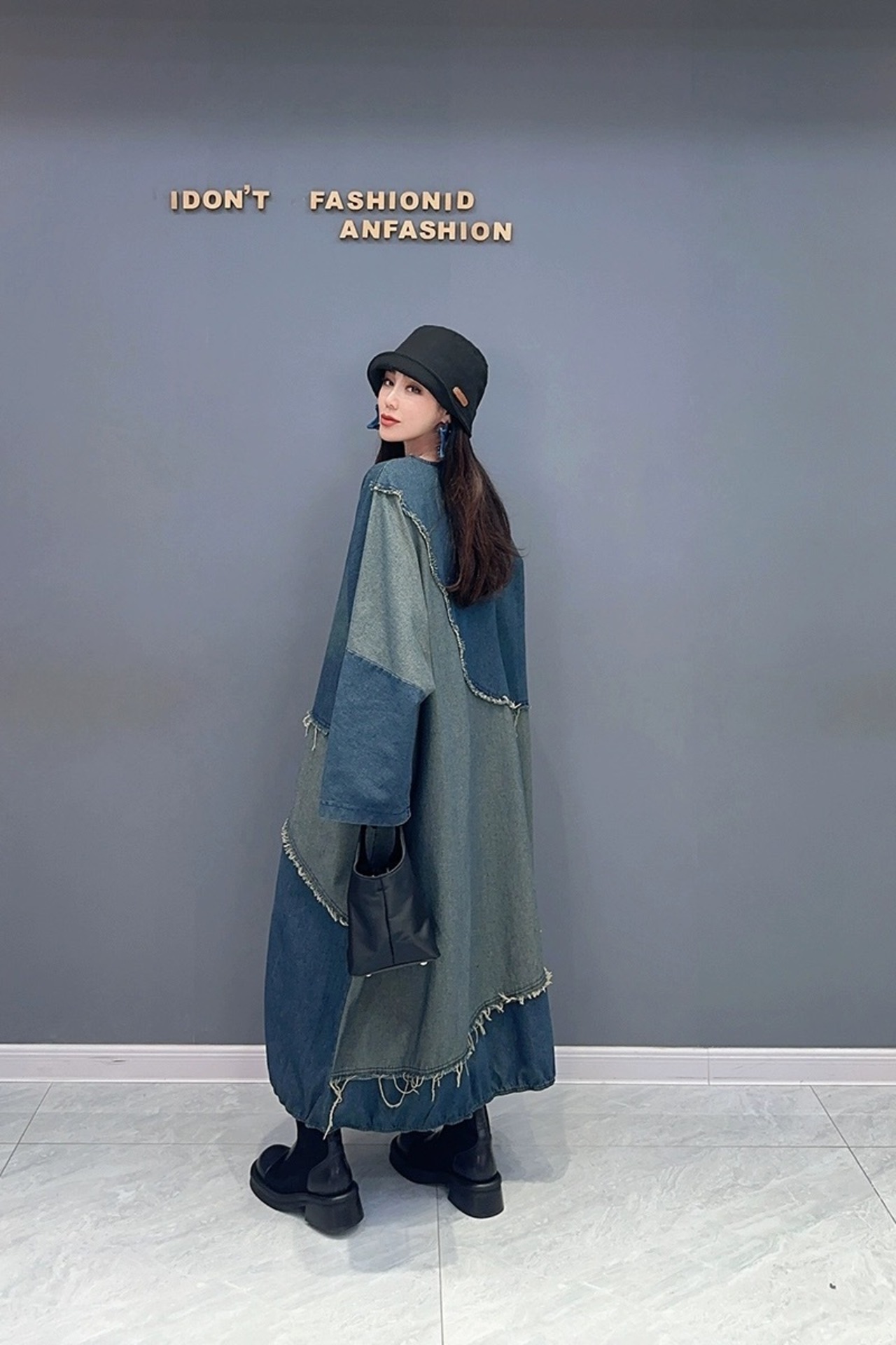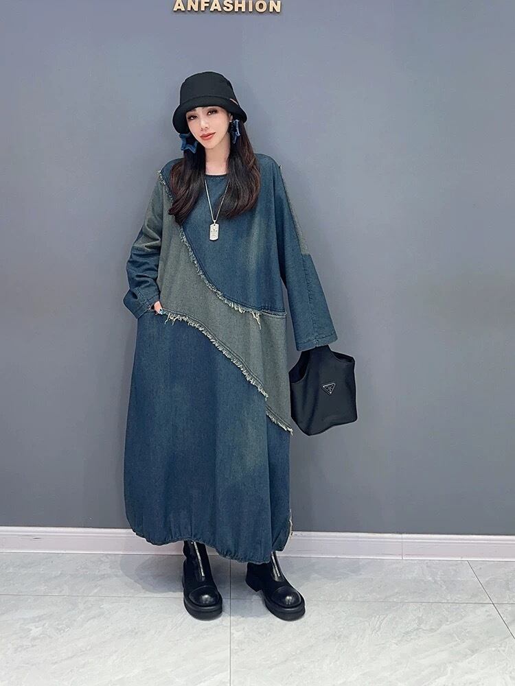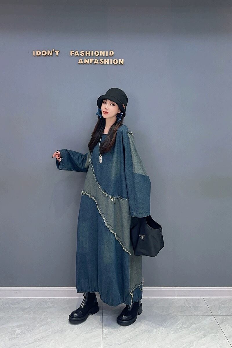 デニム ゆったり カジュアル ワンピース カラフル ストリート
