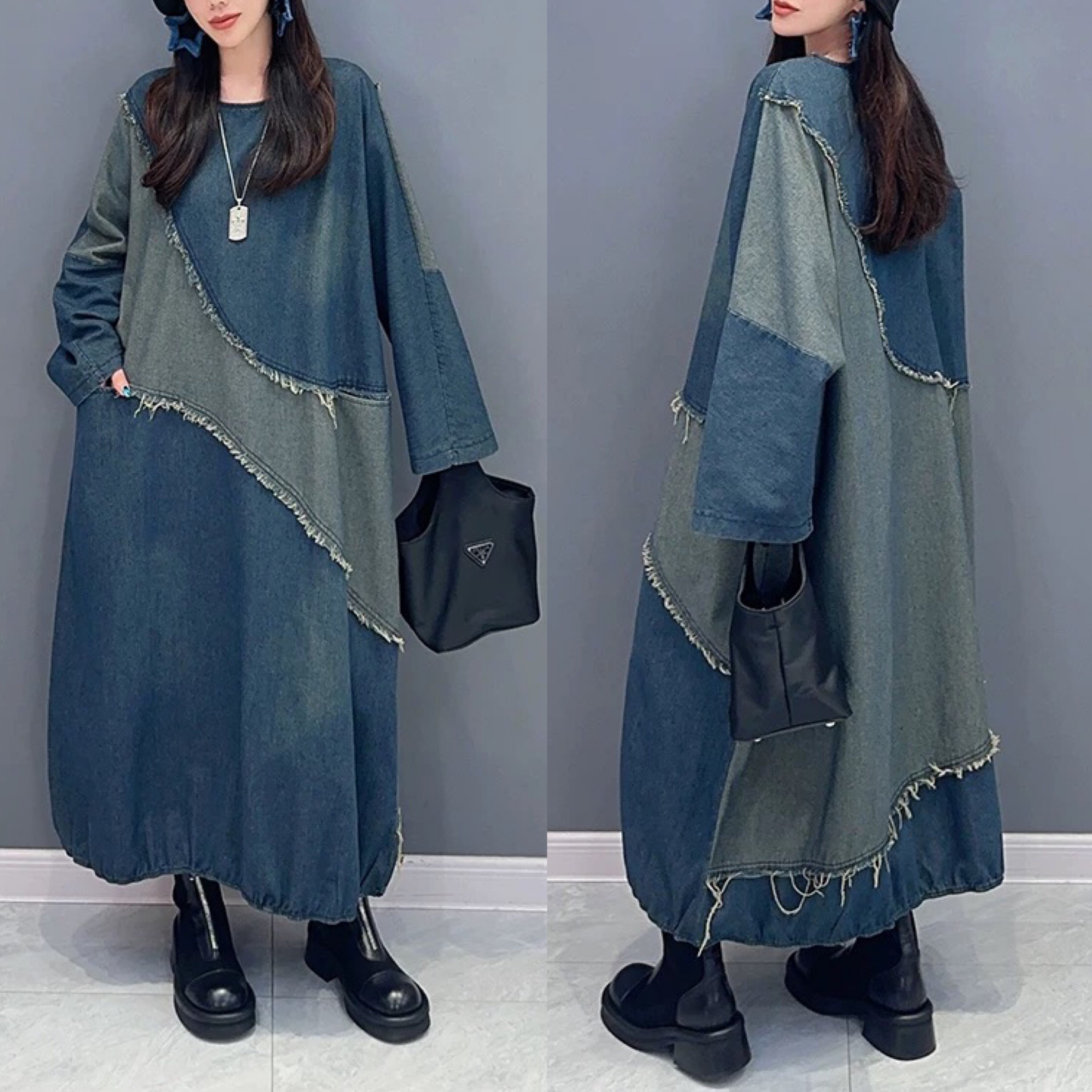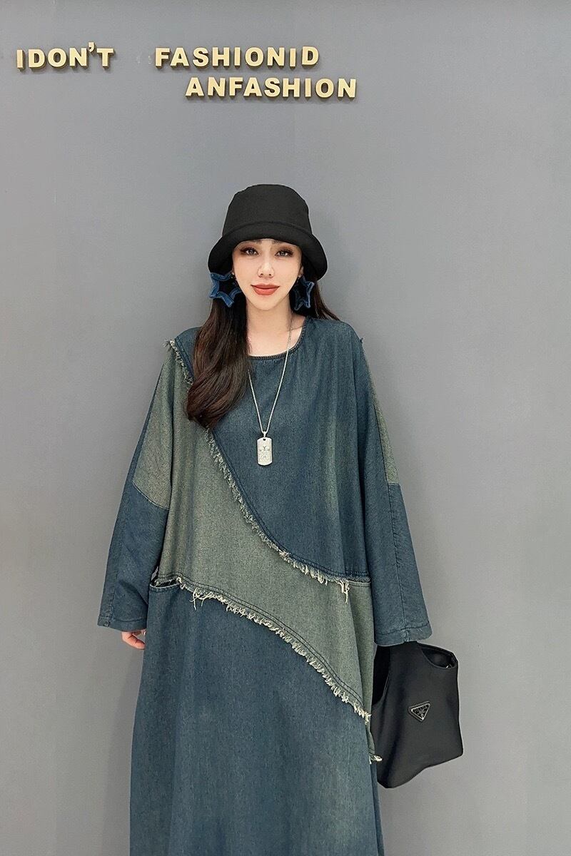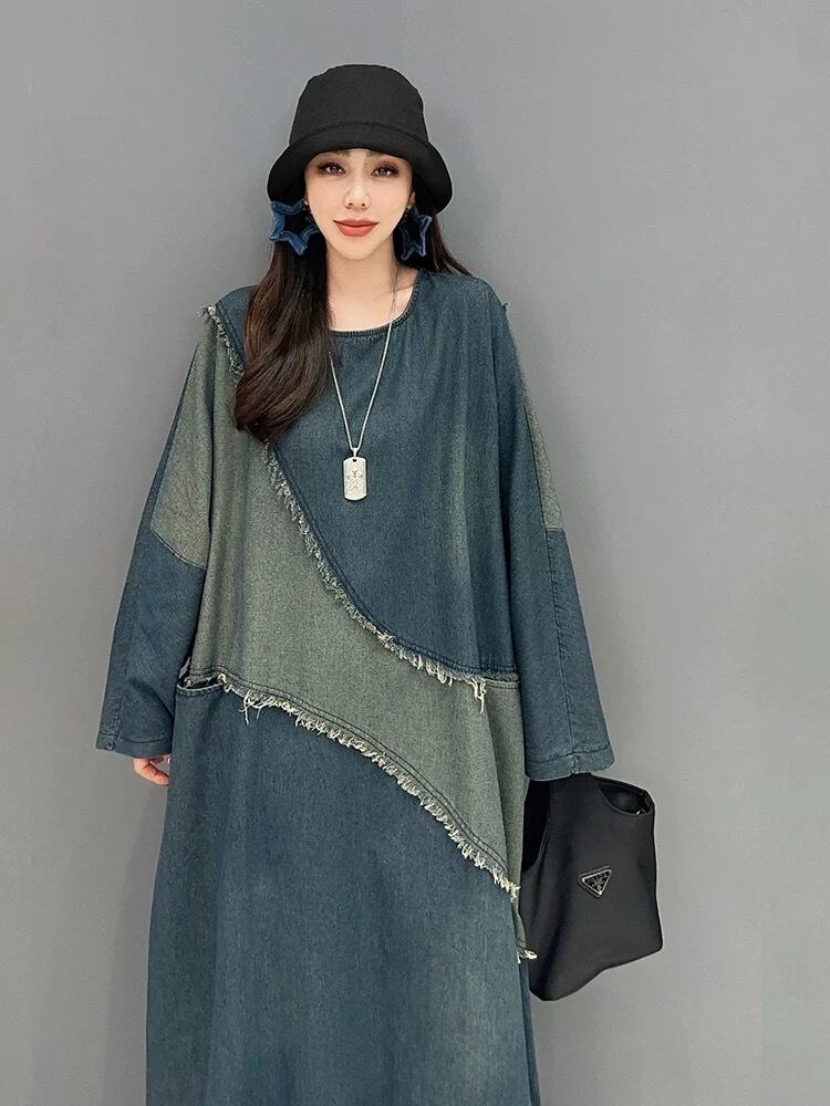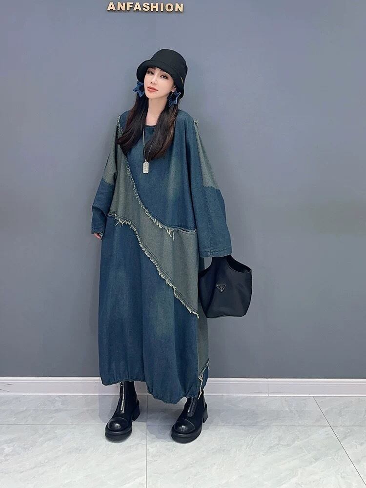 デニム ゆったり カジュアル ワンピース カラフル ストリート