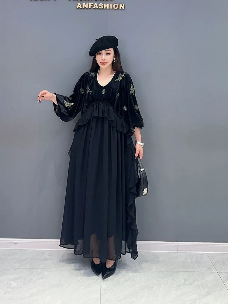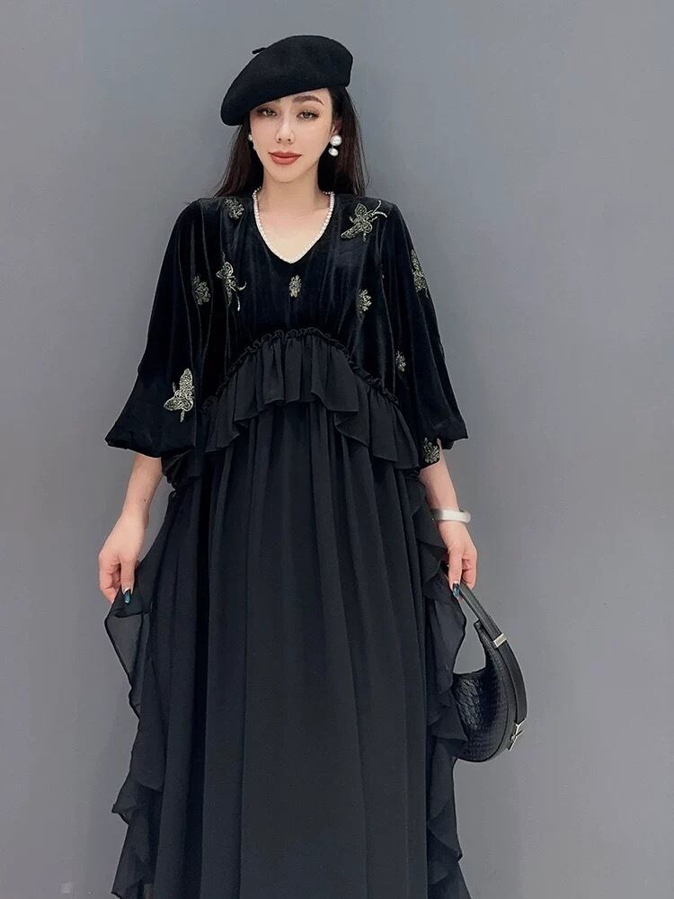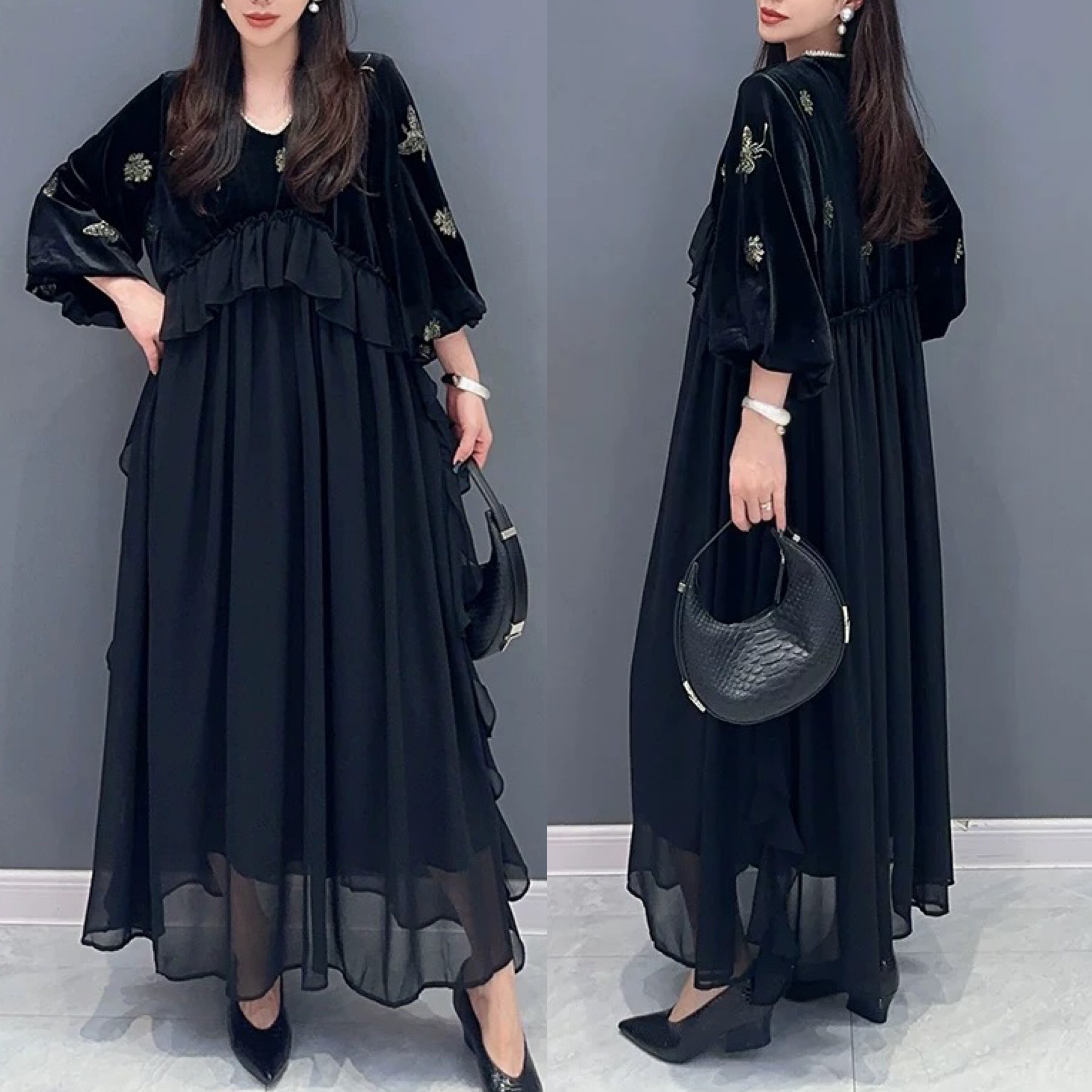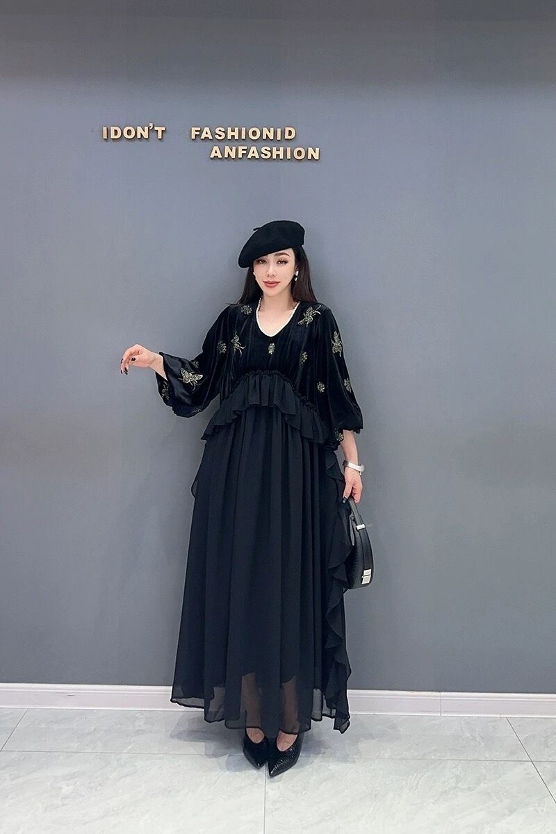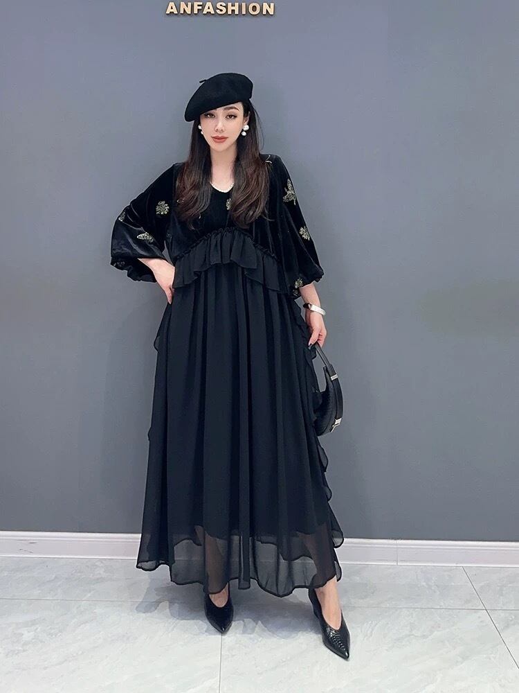 ワンピース 黒 花柄 エレガント ブラウス ゴージャス