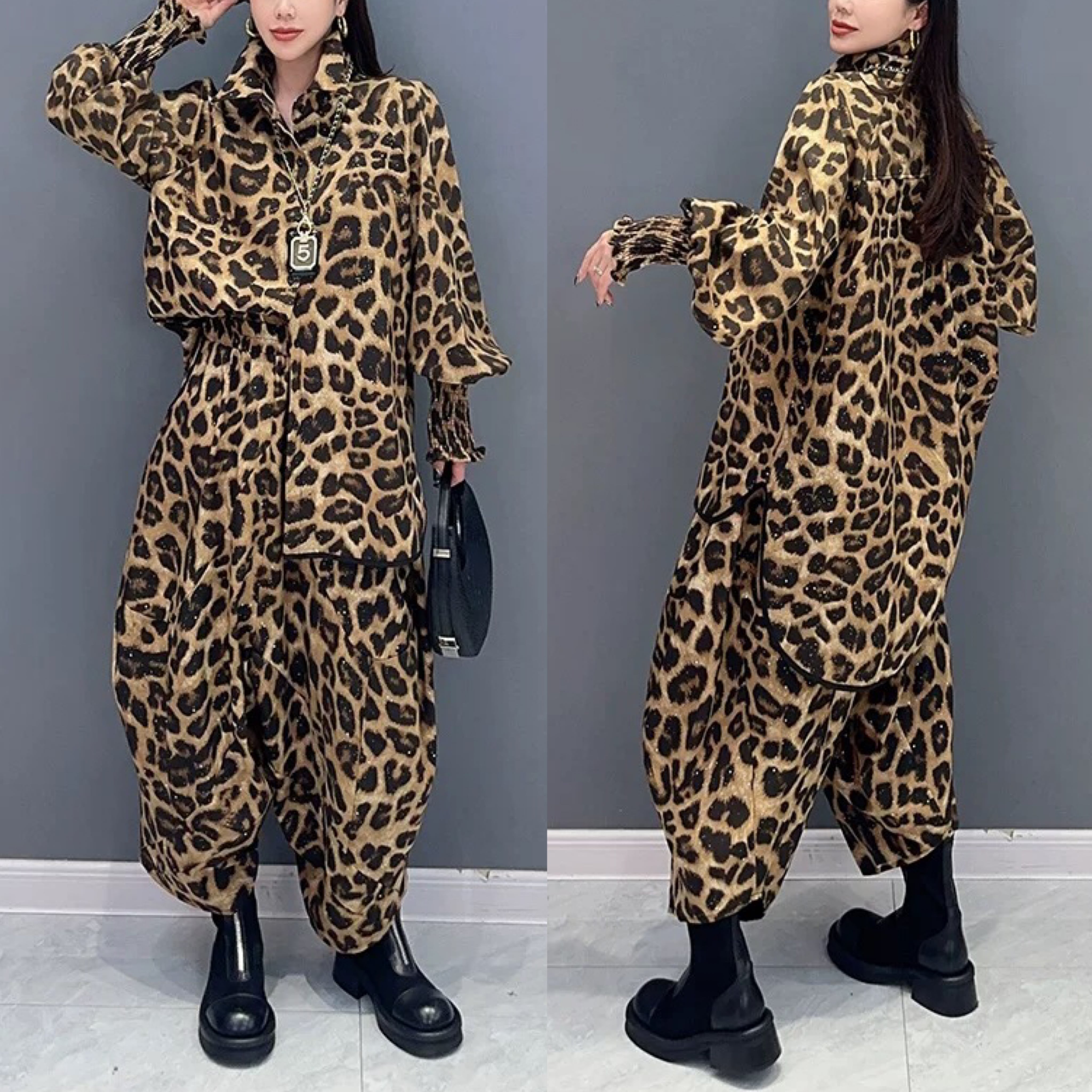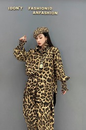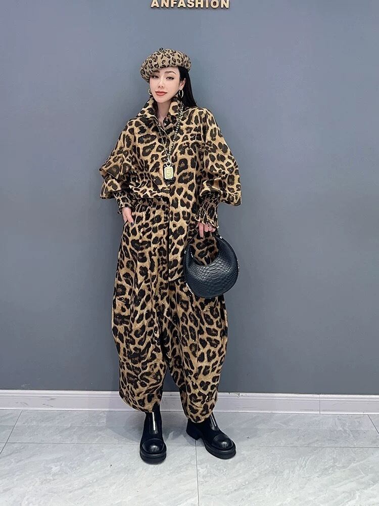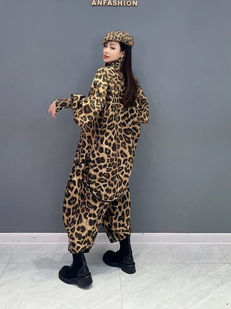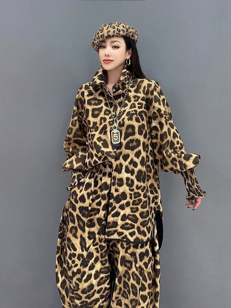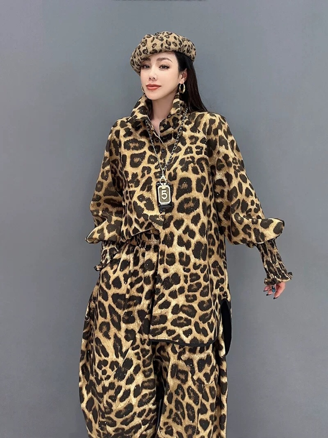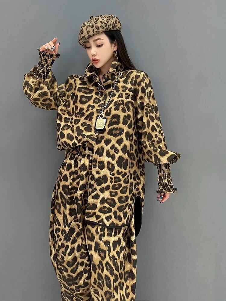 【セットアップ】ブラウス パンツ スウェット カジュアル ヒョウ柄 レオパード