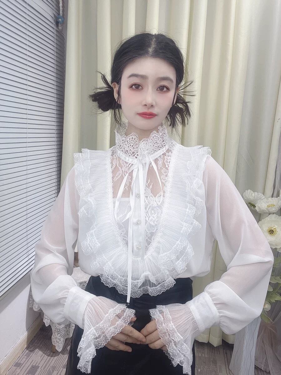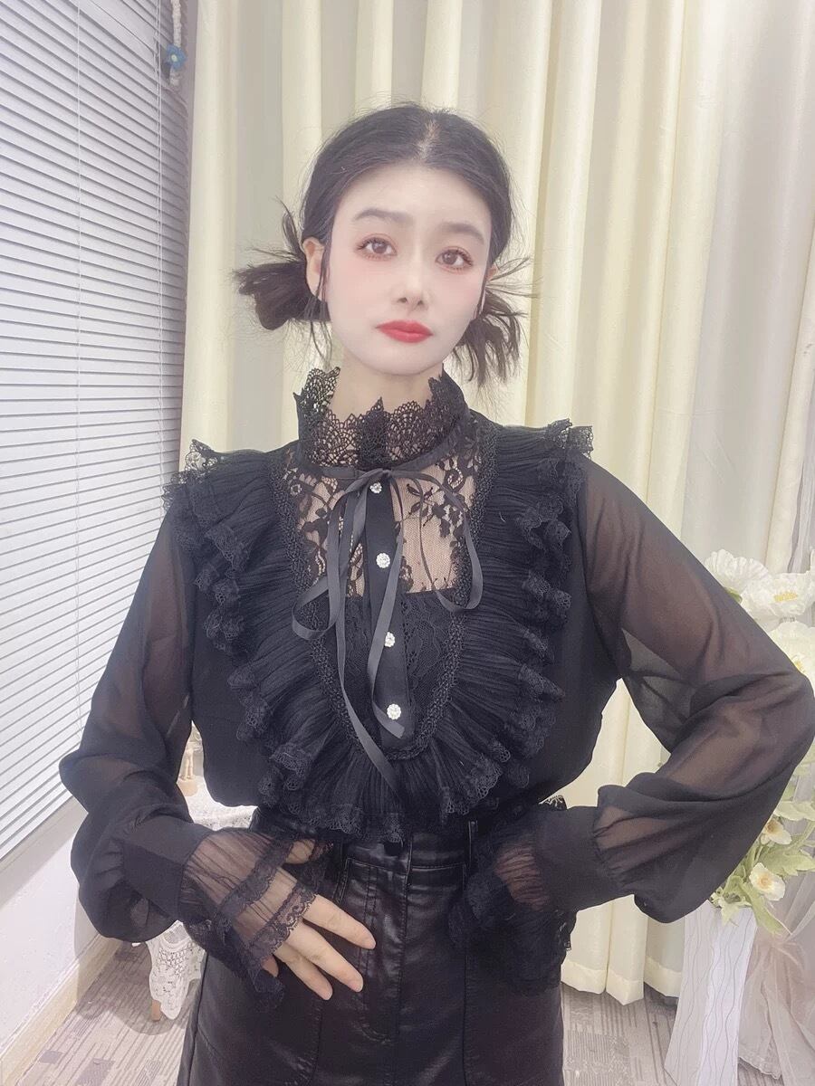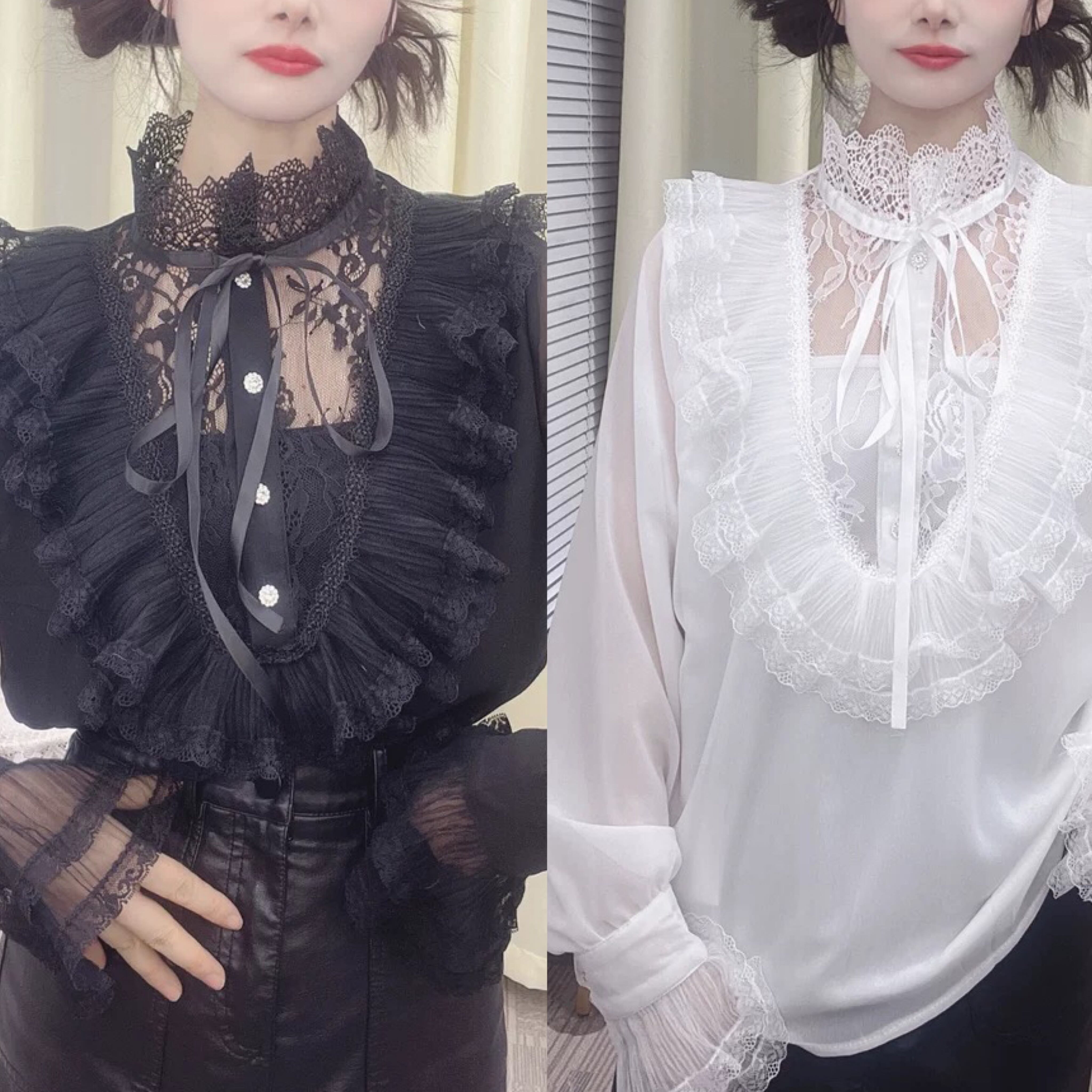 白 刺繍 花柄 黒 レース ブラウス ガーリー シャツ トップス エレガント お嬢様 カジュアル 花柄 ピンク 白 リボン フリル 可愛い シンプル トップス レース 紫