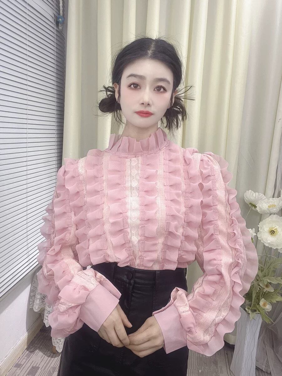 ピンク オレンジ 赤 ベージュ 白 フリル 白 刺繍 花柄 黒 レース ブラウス ガーリー シャツ トップス エレガント お嬢様 カジュアル 花柄 ピンク 白 リボン フリル 可愛い シンプル トップス レース 紫 ハイネック