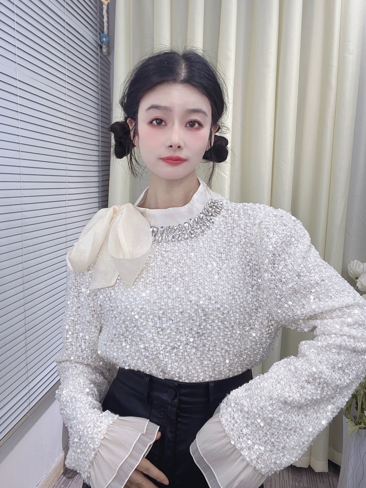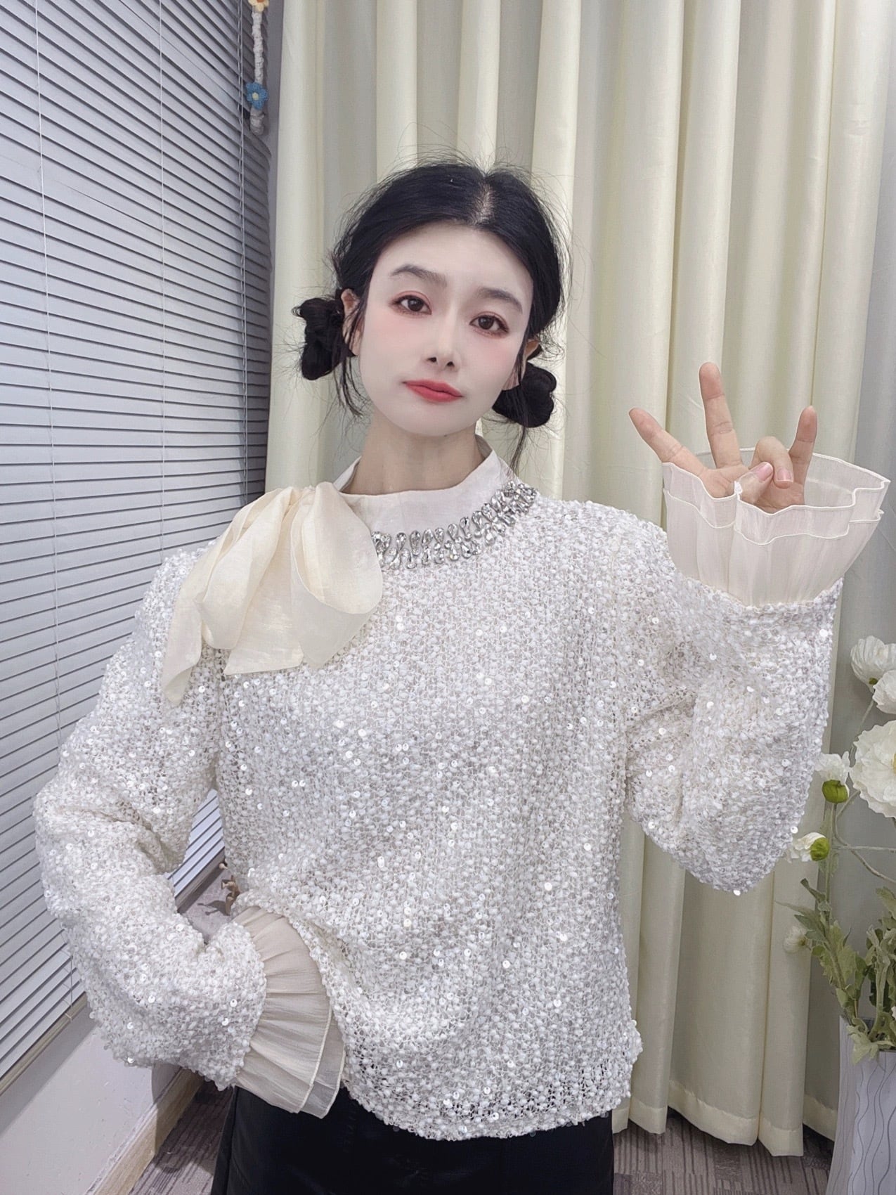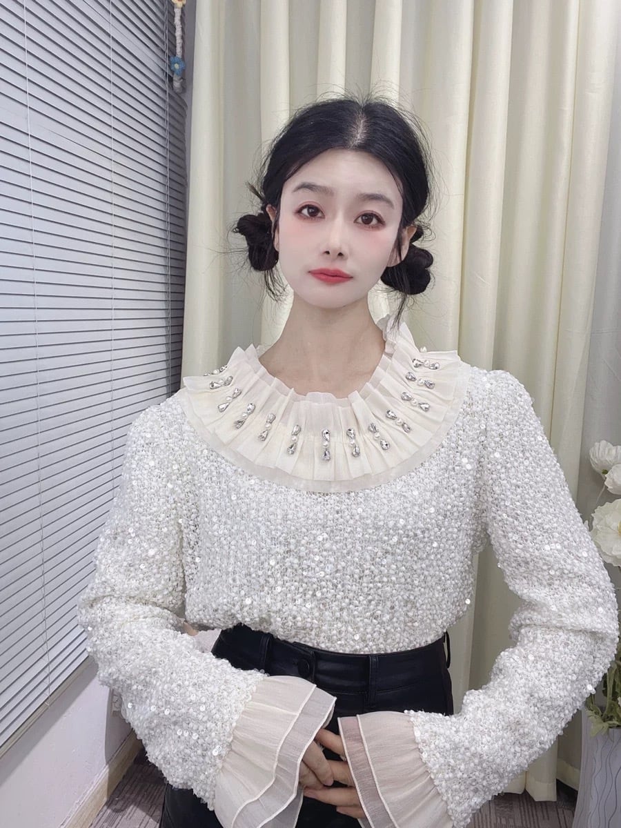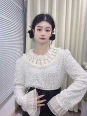 キラキラ ラインストーン 白 刺繍 花柄 黒 レース ブラウス ガーリー シャツ トップス エレガント お嬢様 カジュアル 花柄 ピンク 白 リボン フリル 可愛い シンプル トップス レース 紫 ラメ 白 リボン
