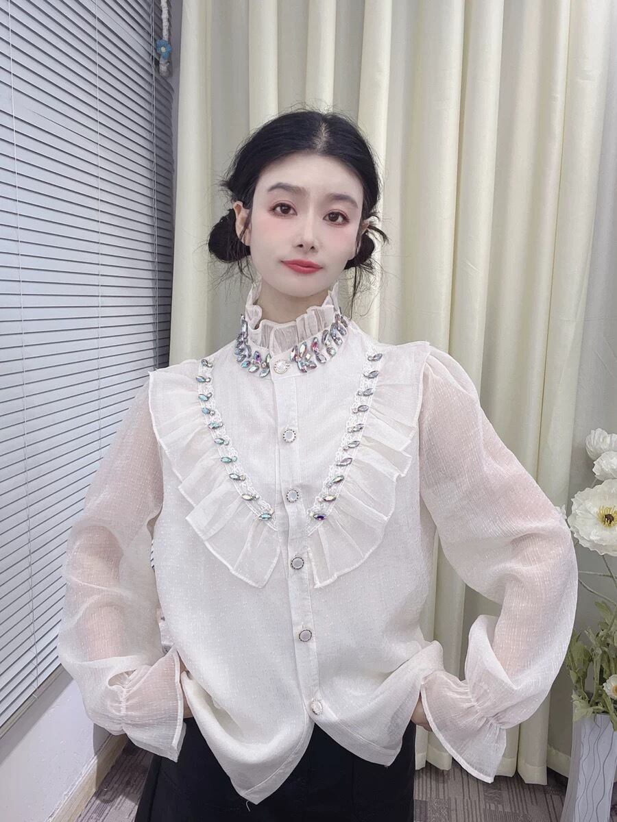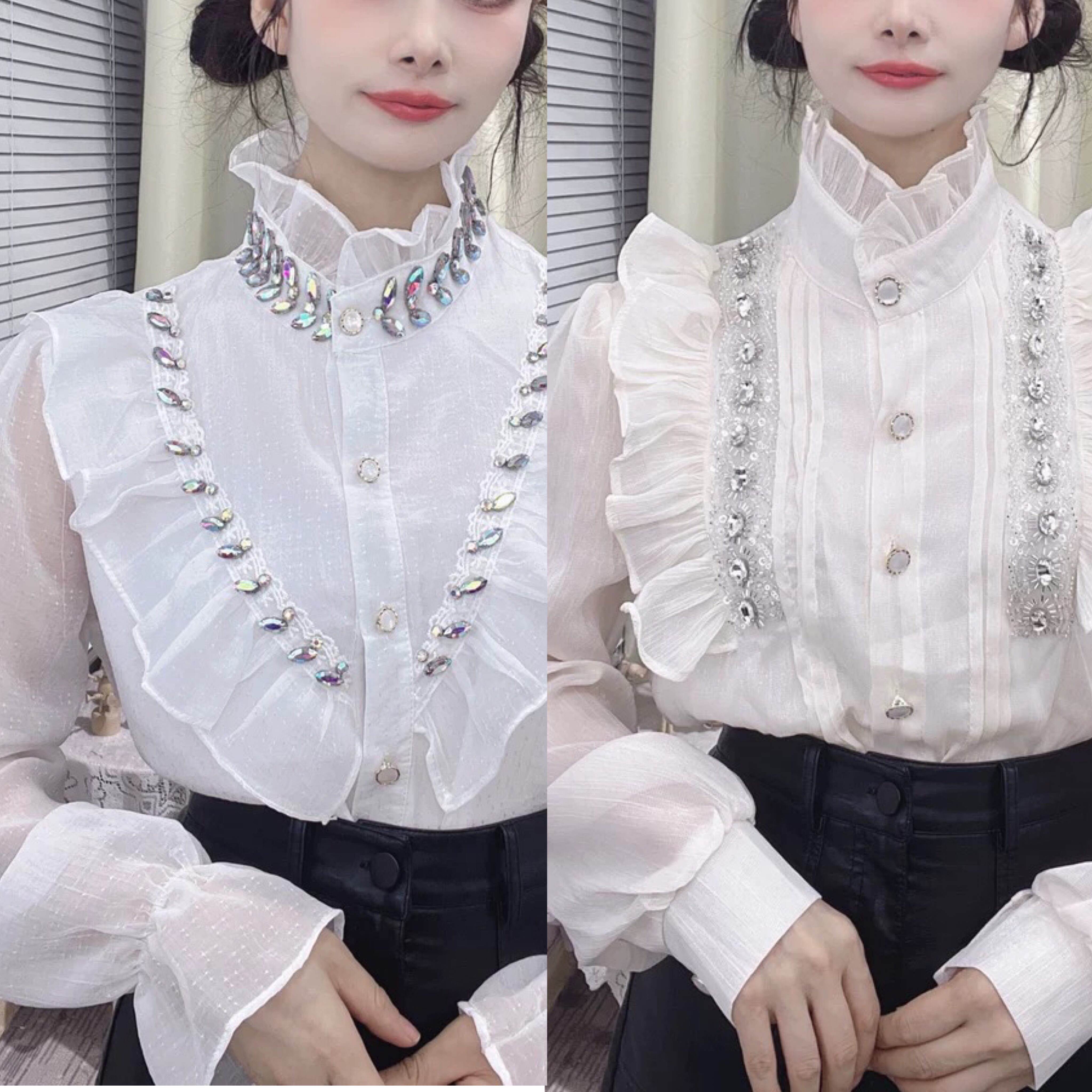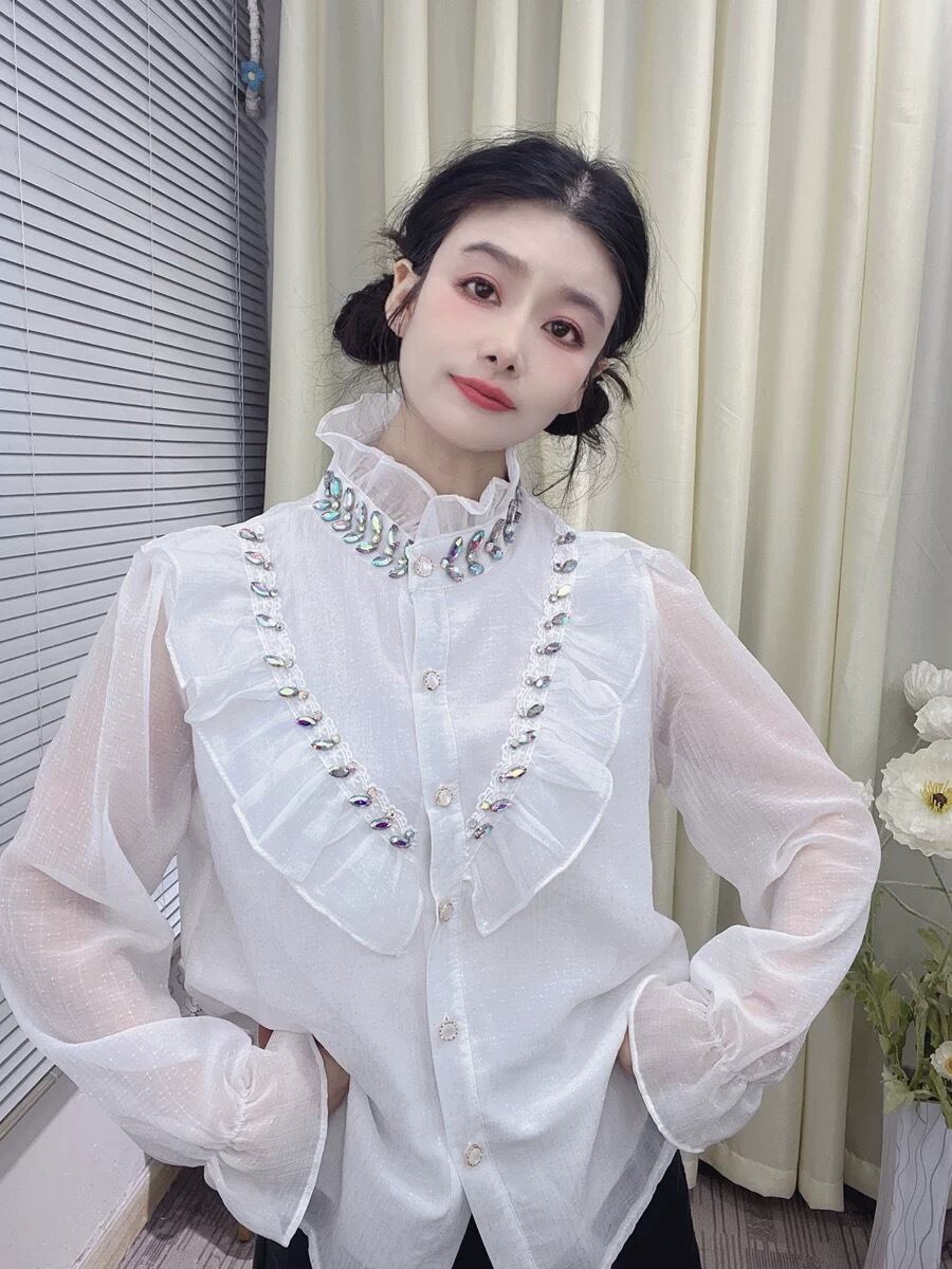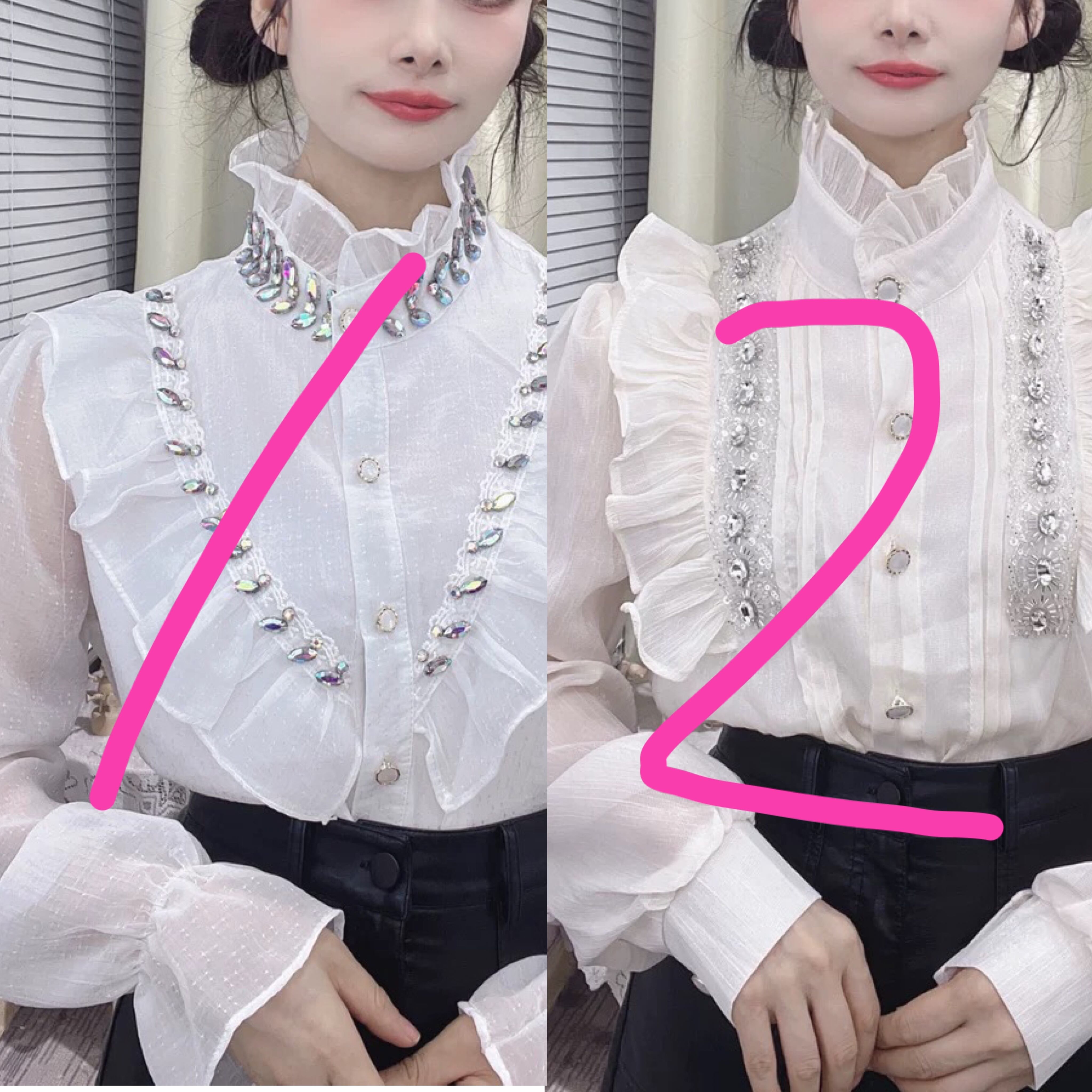 ラインストーン キラキラ 白 刺繍 花柄 黒 レース ブラウス ガーリー シャツ トップス エレガント お嬢様 カジュアル 花柄 ピンク 白 リボン フリル 可愛い シンプル トップス レース 紫 デコレーション 白 ホワイト