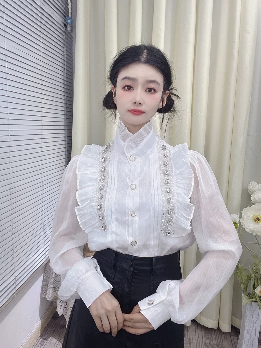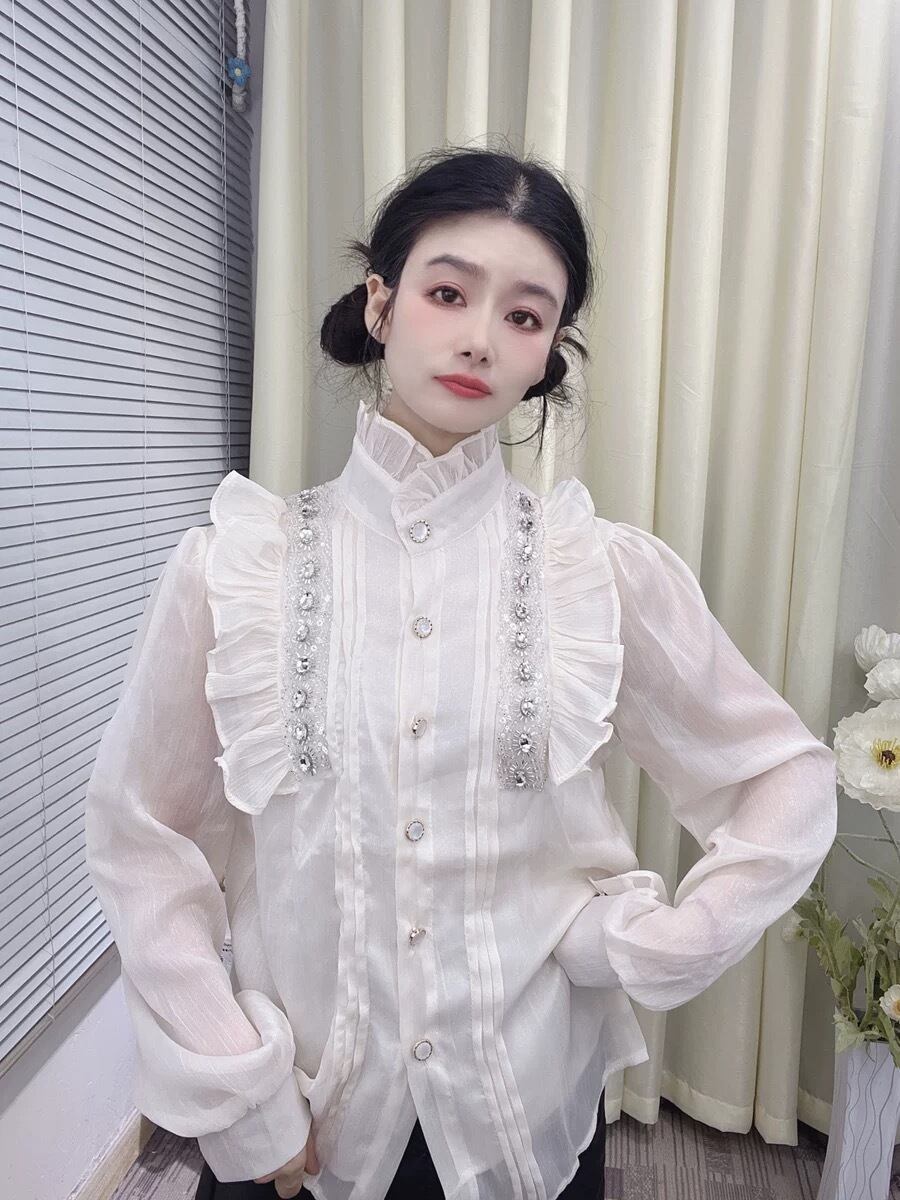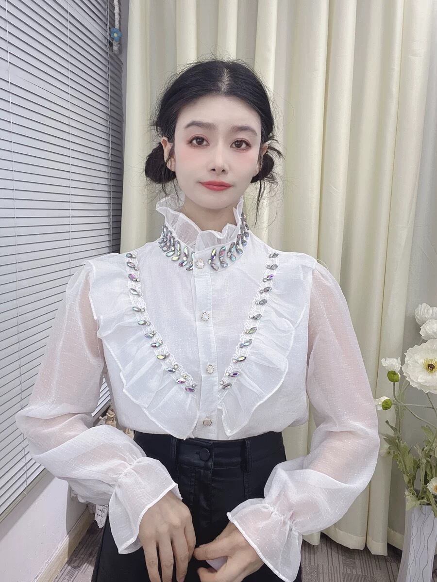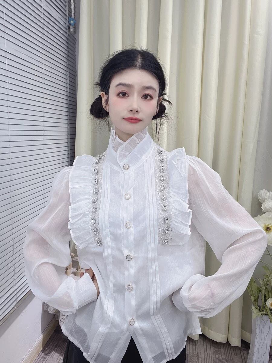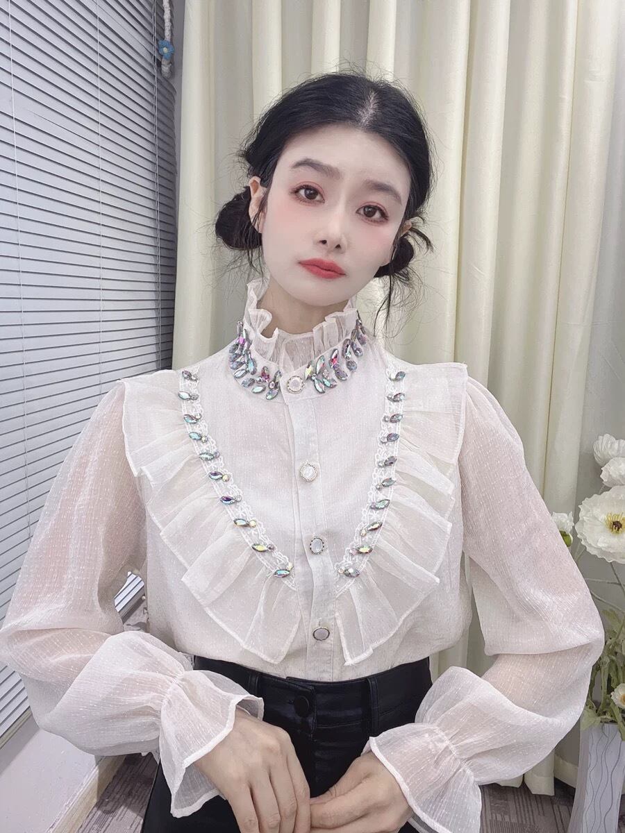 ラインストーン キラキラ 白 刺繍 花柄 黒 レース ブラウス ガーリー シャツ トップス エレガント お嬢様 カジュアル 花柄 ピンク 白 リボン フリル 可愛い シンプル トップス レース 紫 デコレーション 白 ホワイト