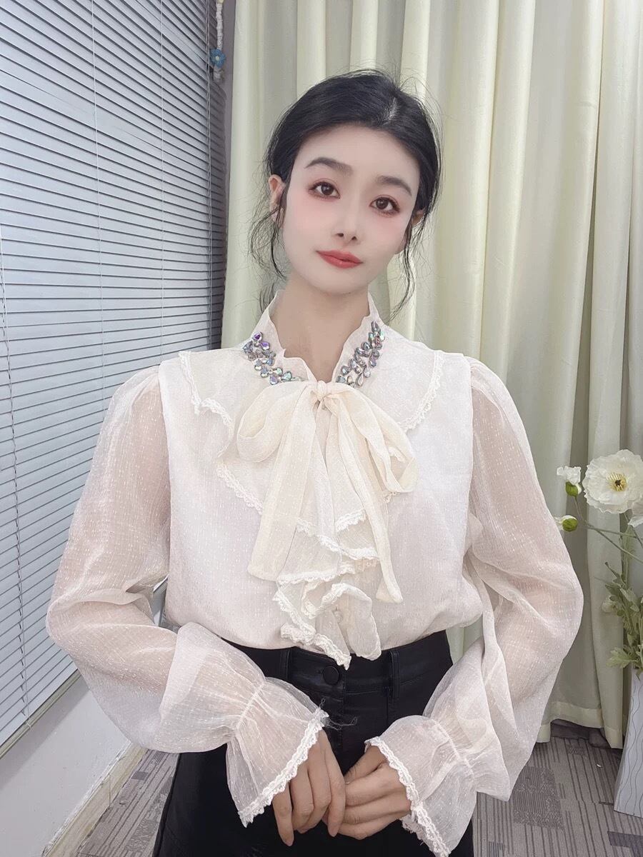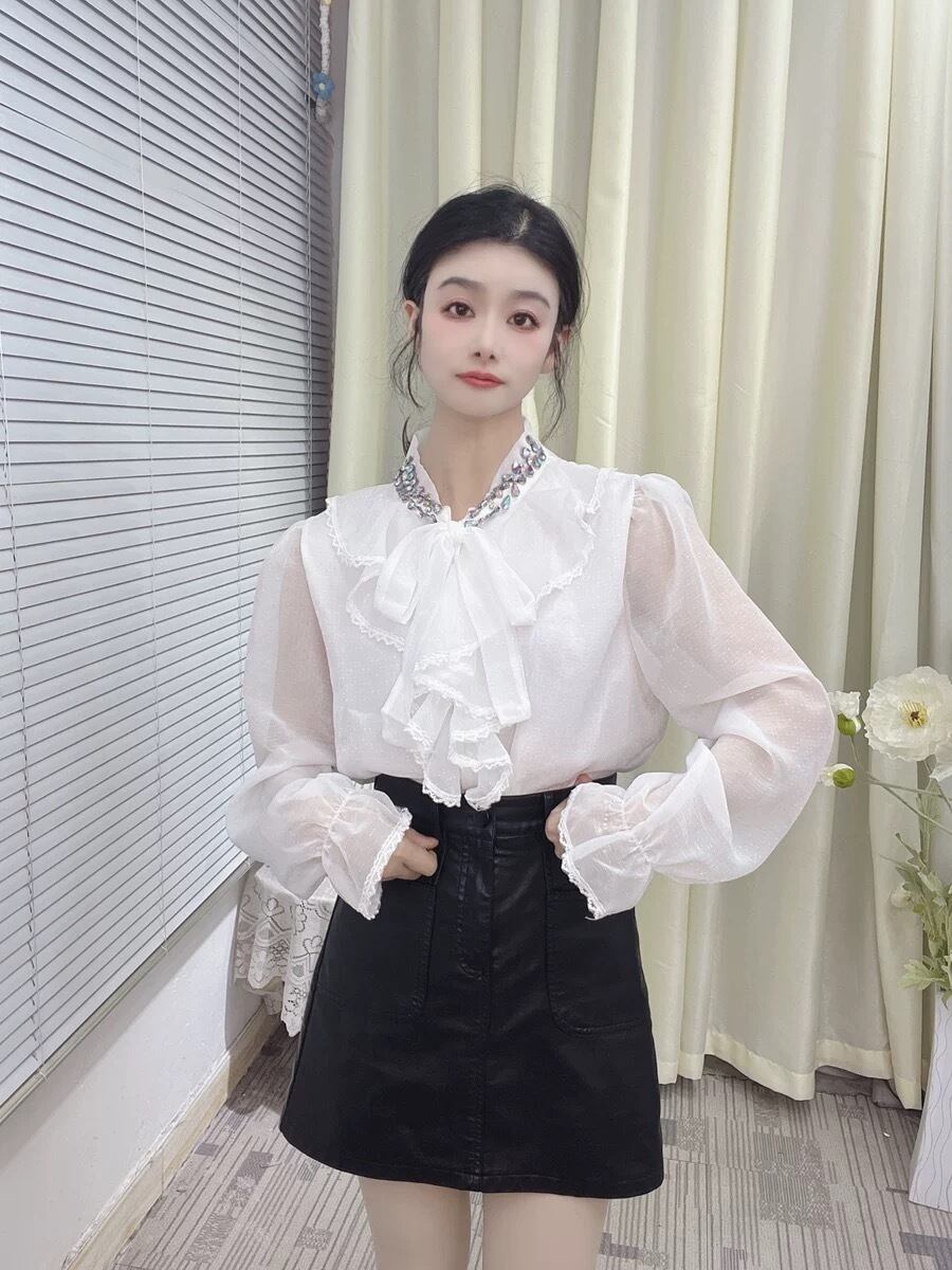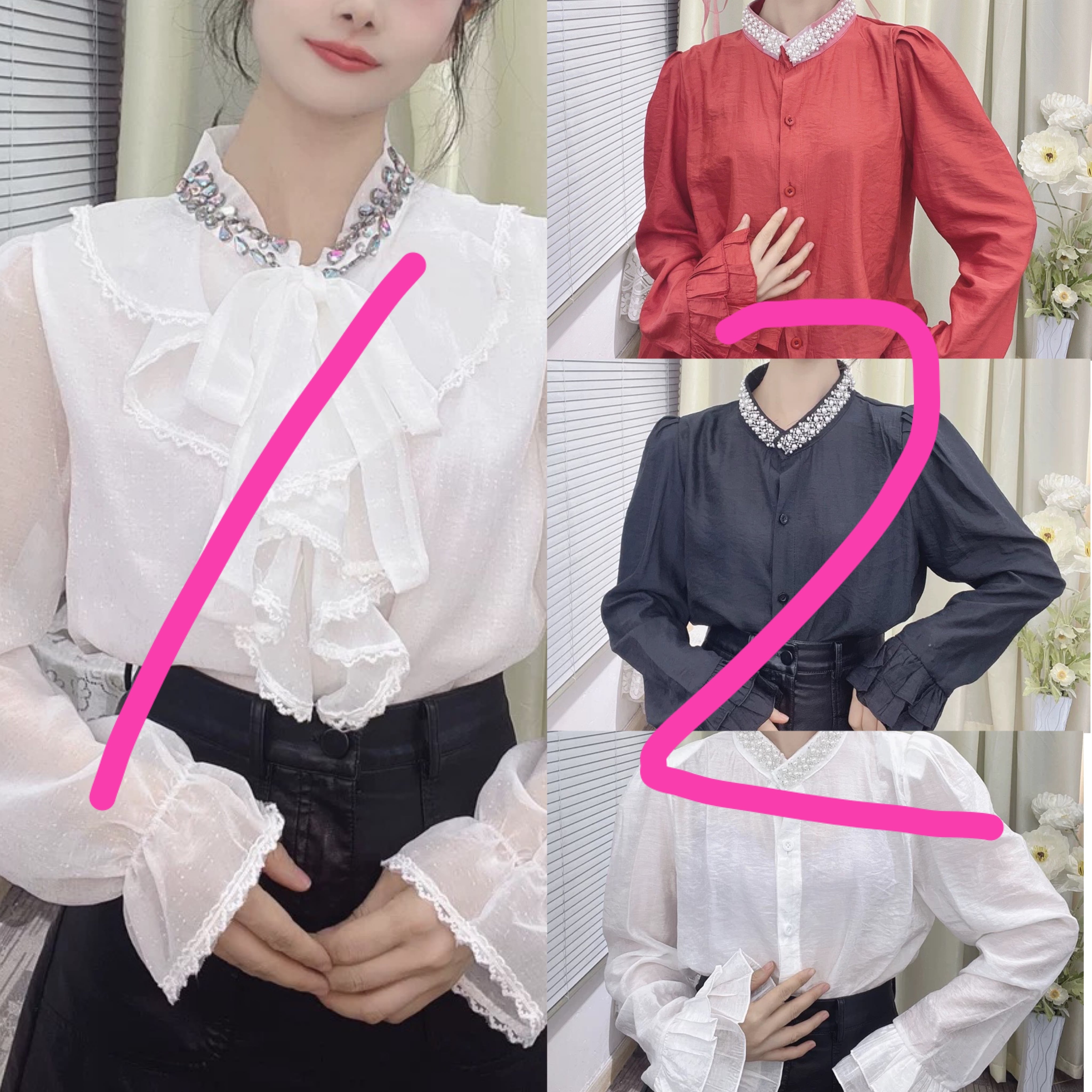 アイボリー 白 黒 パール ハイネック 白 刺繍 花柄 黒 レース ブラウス ガーリー シャツ トップス エレガント お嬢様 カジュアル 花柄 ピンク 白 リボン フリル 可愛い シンプル トップス レース 紫 赤 オレンジ