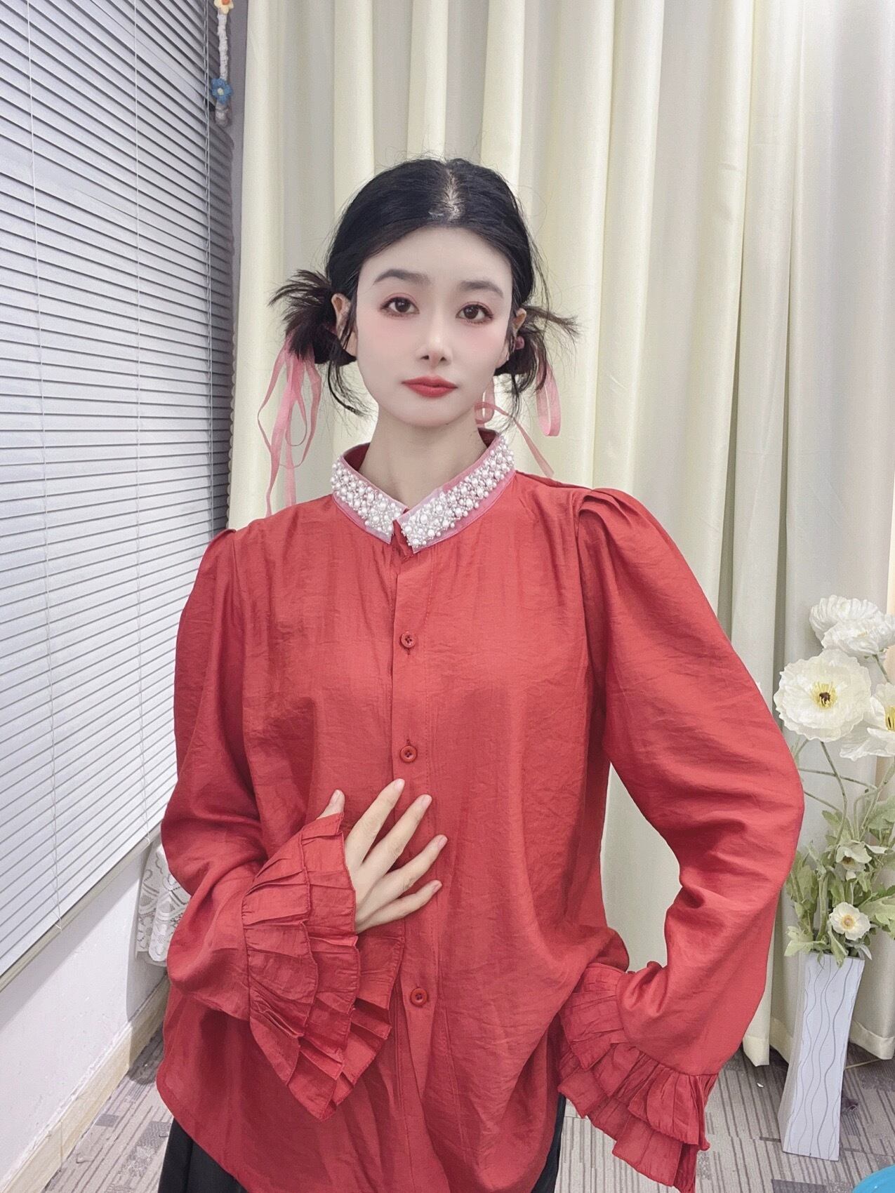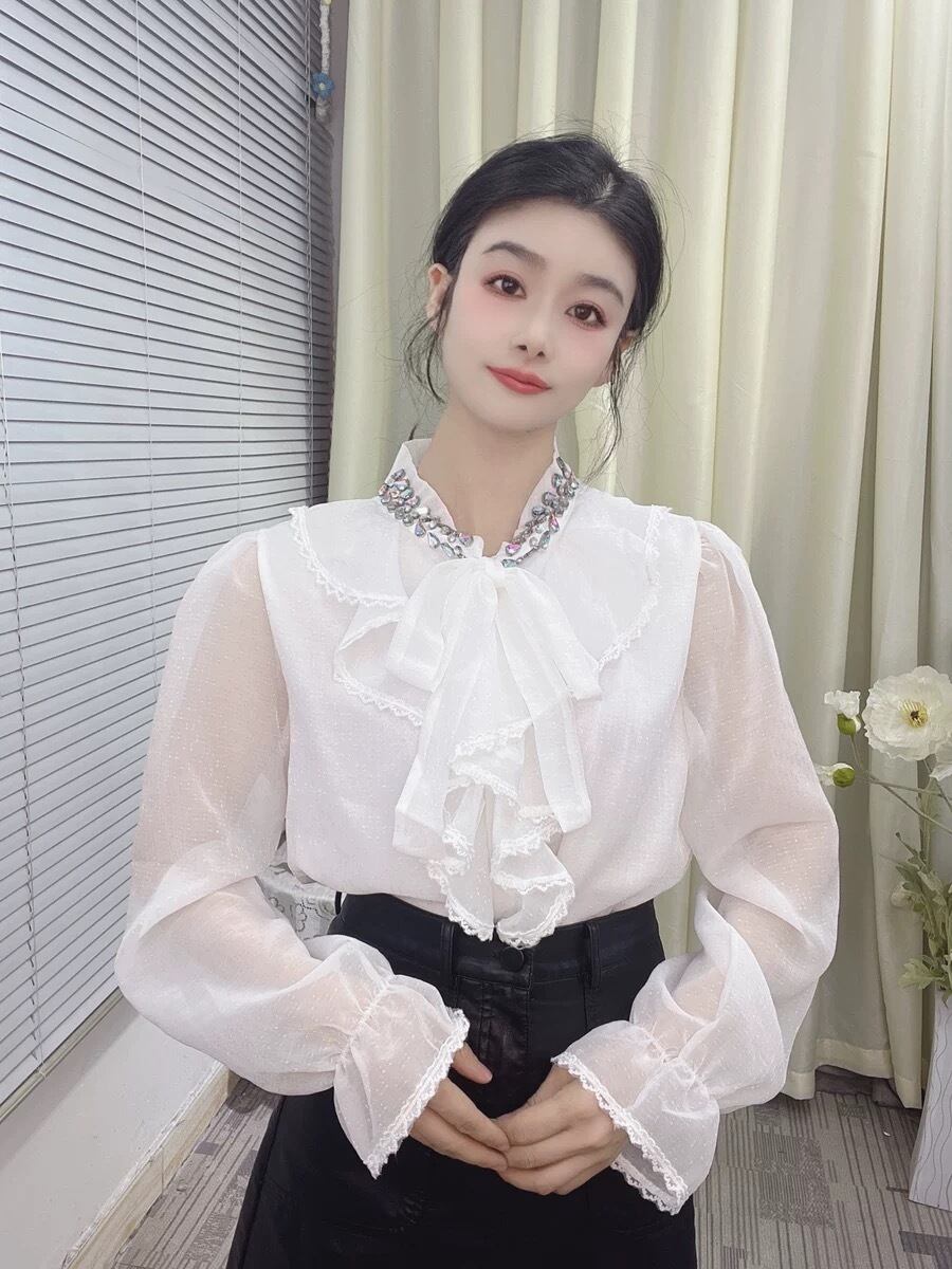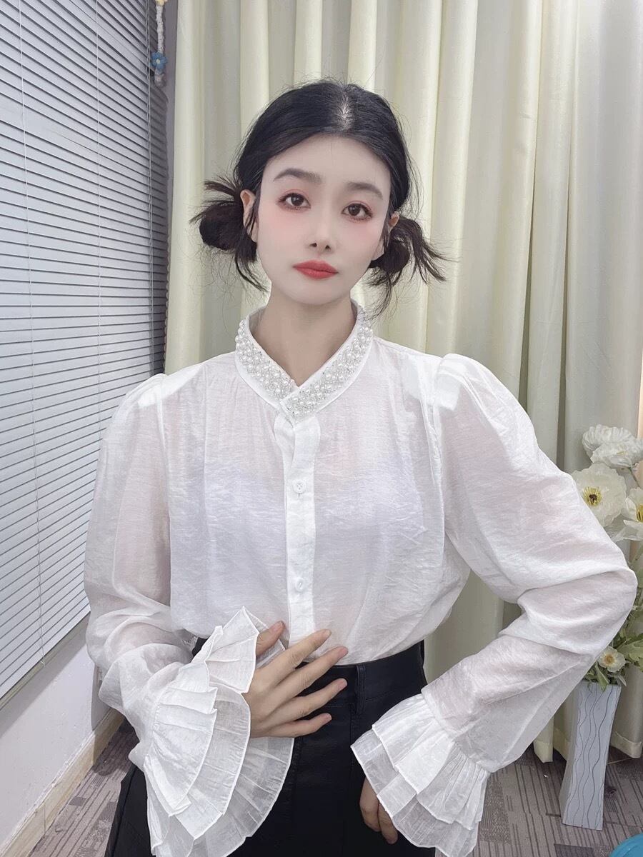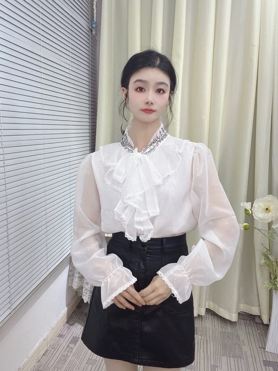 アイボリー 白 黒 パール ハイネック 白 刺繍 花柄 黒 レース ブラウス ガーリー シャツ トップス エレガント お嬢様 カジュアル 花柄 ピンク 白 リボン フリル 可愛い シンプル トップス レース 紫 赤 オレンジ