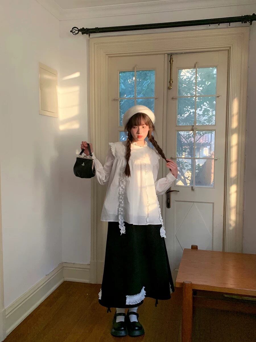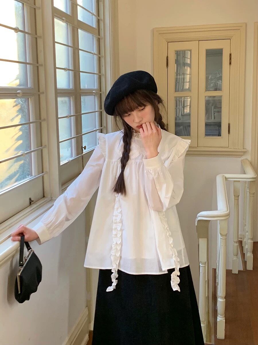 ブラウス 白 ホワイト リボン ガーリー トップス 可愛い 原宿 シンプル