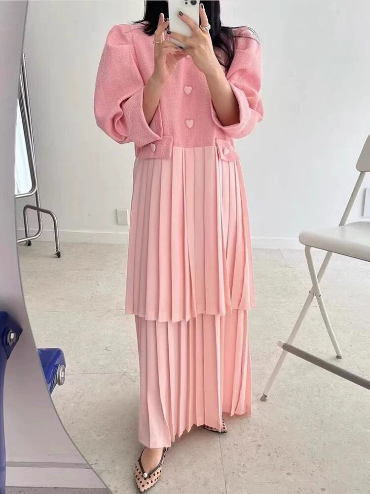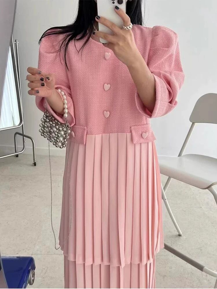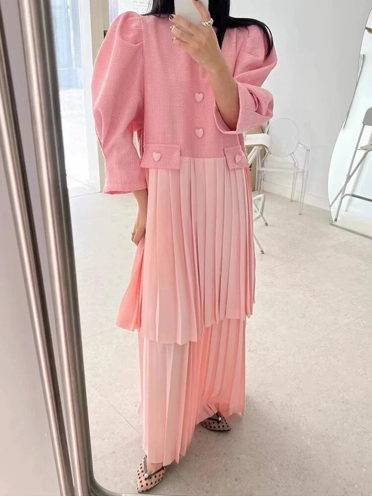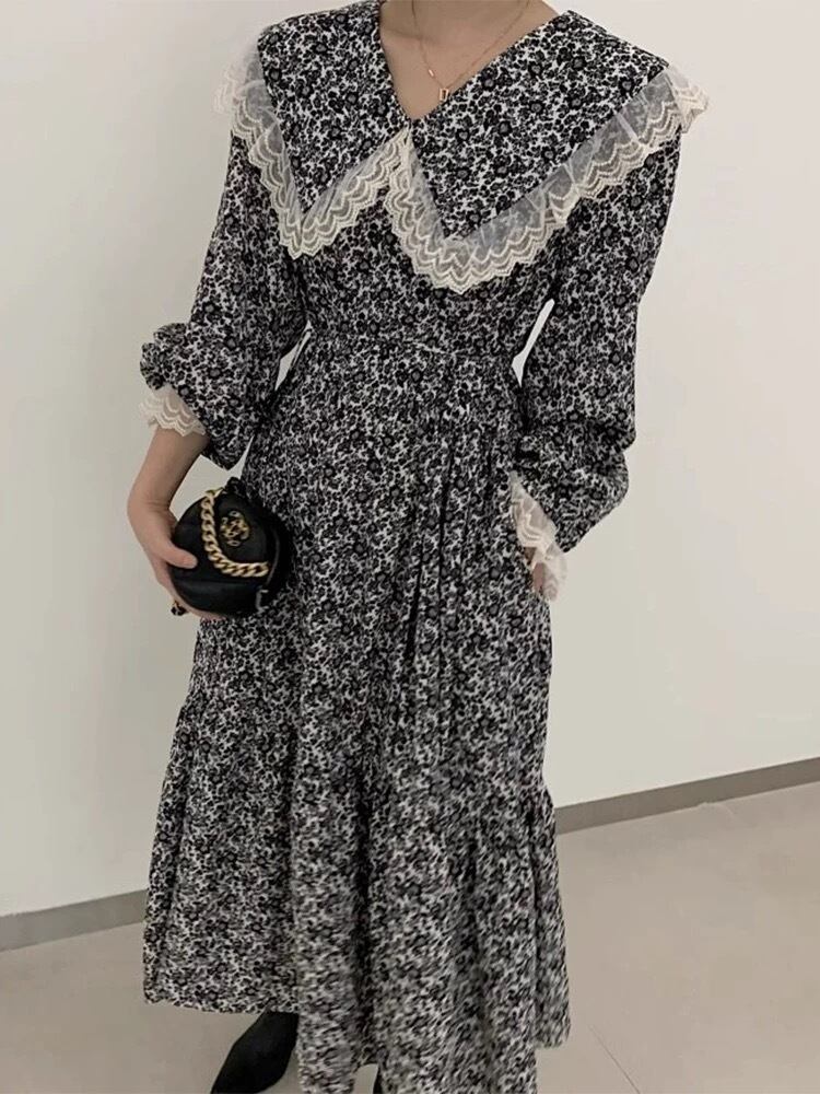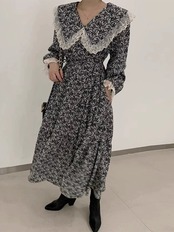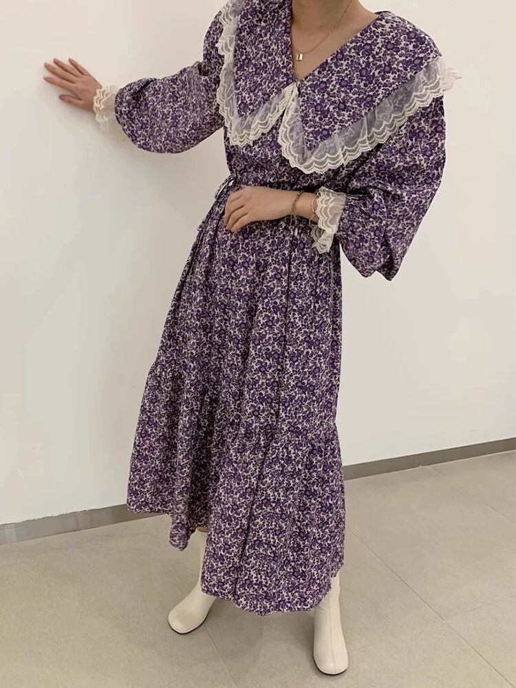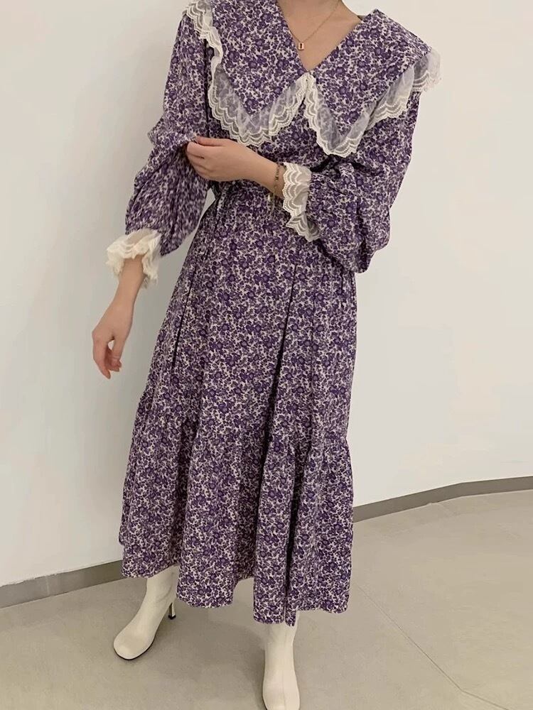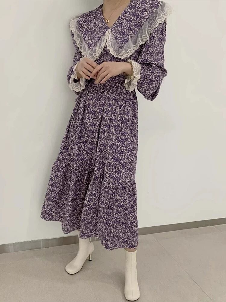ワンピース ピンク ハート 襟 紫 花柄 フラワー ゆったり