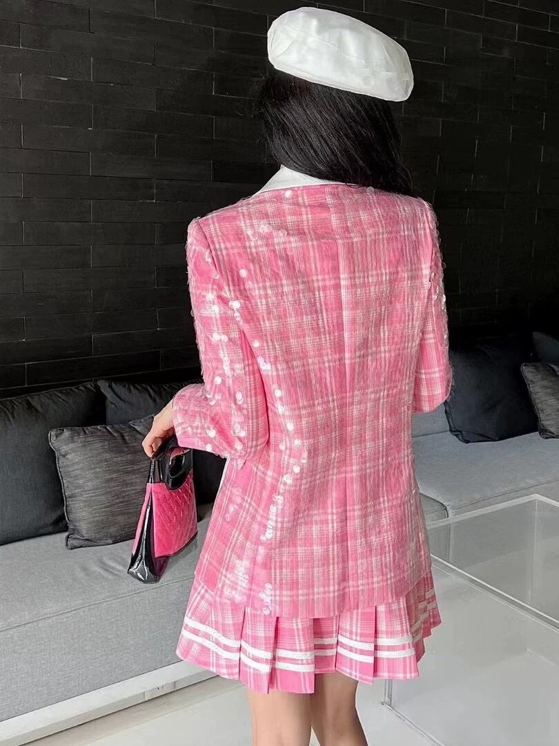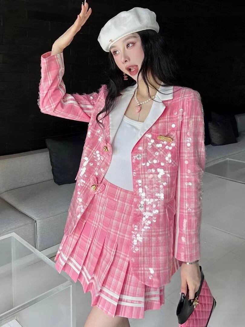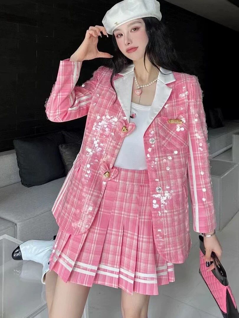 【XLまで】【セットアップ】黒 ガーリー お嬢様 スーツ ツーピース セットアップ リボン ガーリー 原宿 渋谷 ミニスカート ジャケット カーディガン アウター ジャケット ブルゾン 水玉 ドット ピンク スパンコール ハート チェック プリーツスカート ガーリー 可愛い 原宿 ジャケット ミニスカート